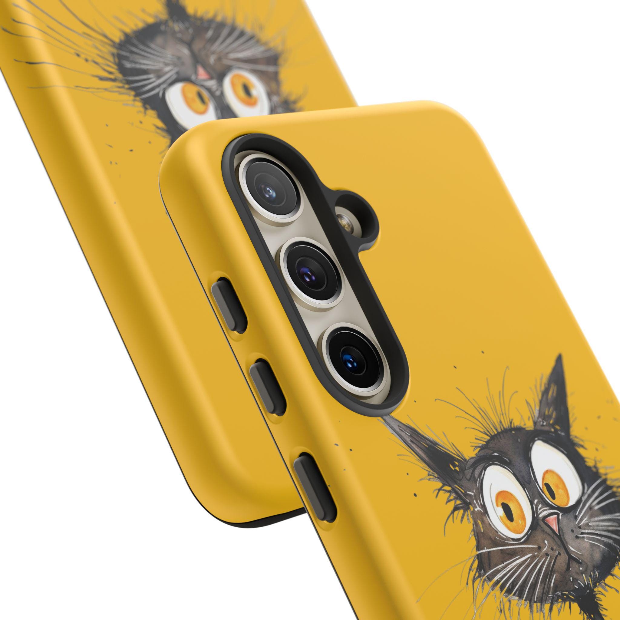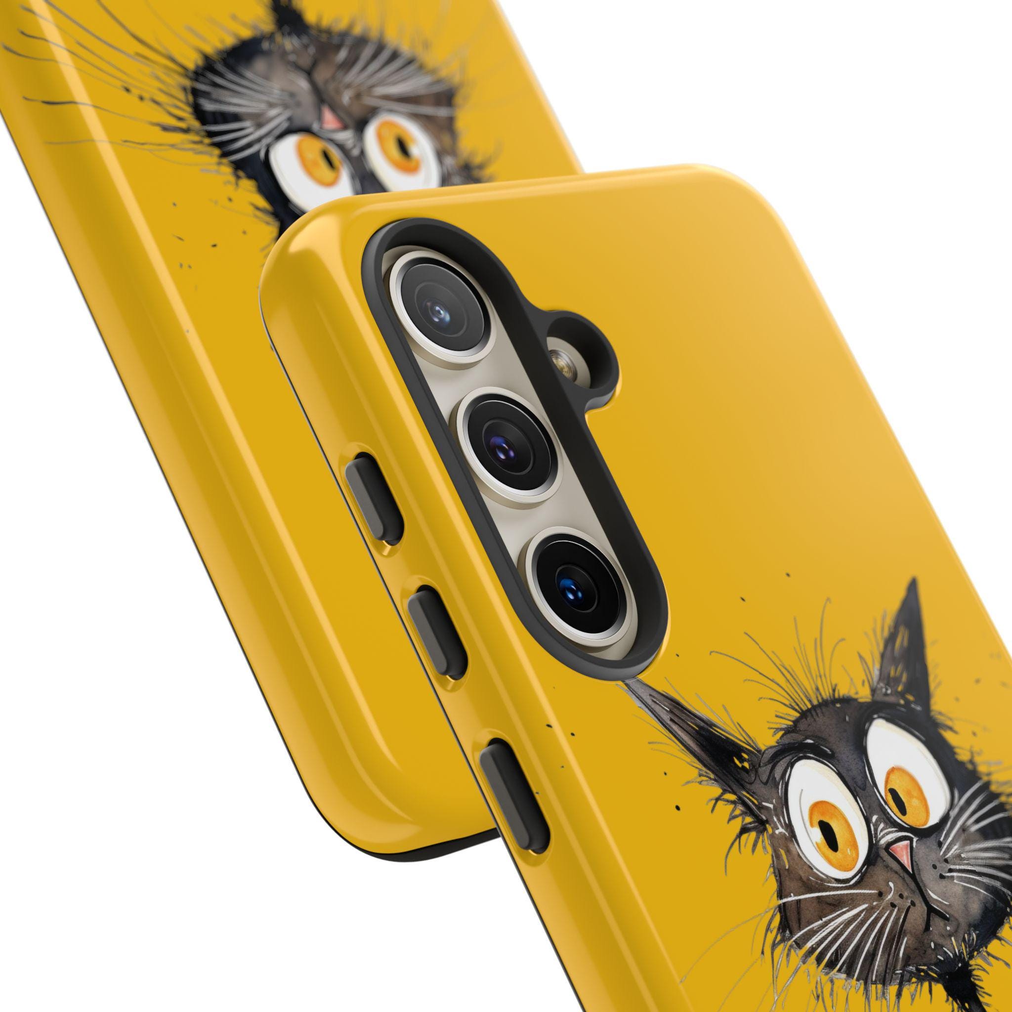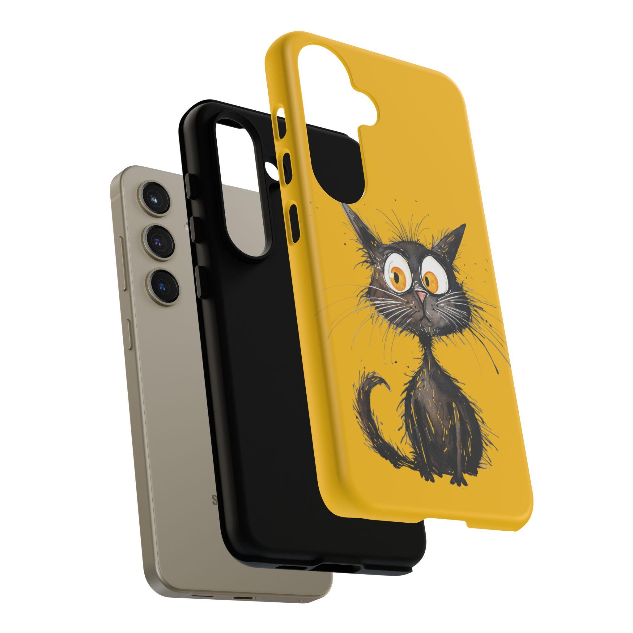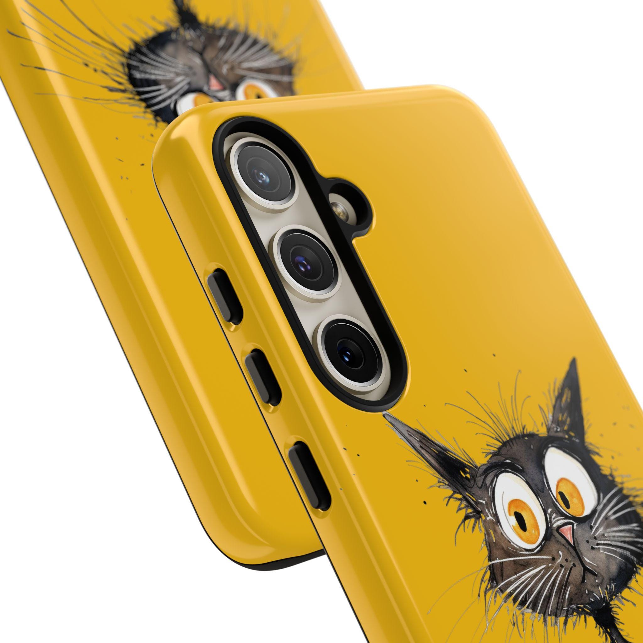 Protect your iPhone, Samsung, Apple, Galaxy, or Google phone with these durable and impact-resistant Tough Cases featuring a funny cat design. The cases provide excellent shock absorption, wrap-around image transfer, and UV protection, making them perfect for those who want a unique and protective phone accessory. Ideal for cat lovers or anyone looking for a sturdy phone case for everyday use or as a gift for birthdays, holidays, or special occasions. Available in glossy or matte finish.