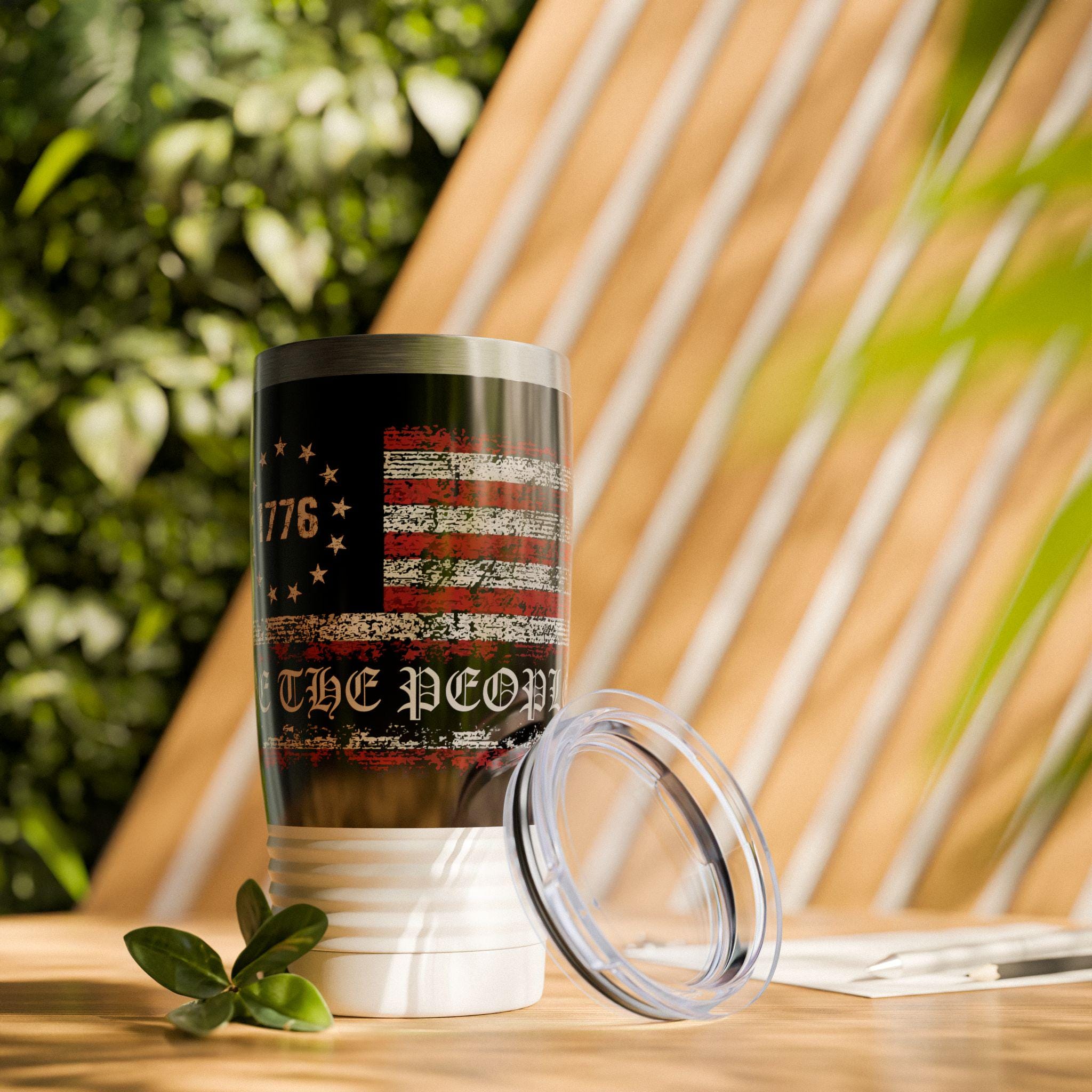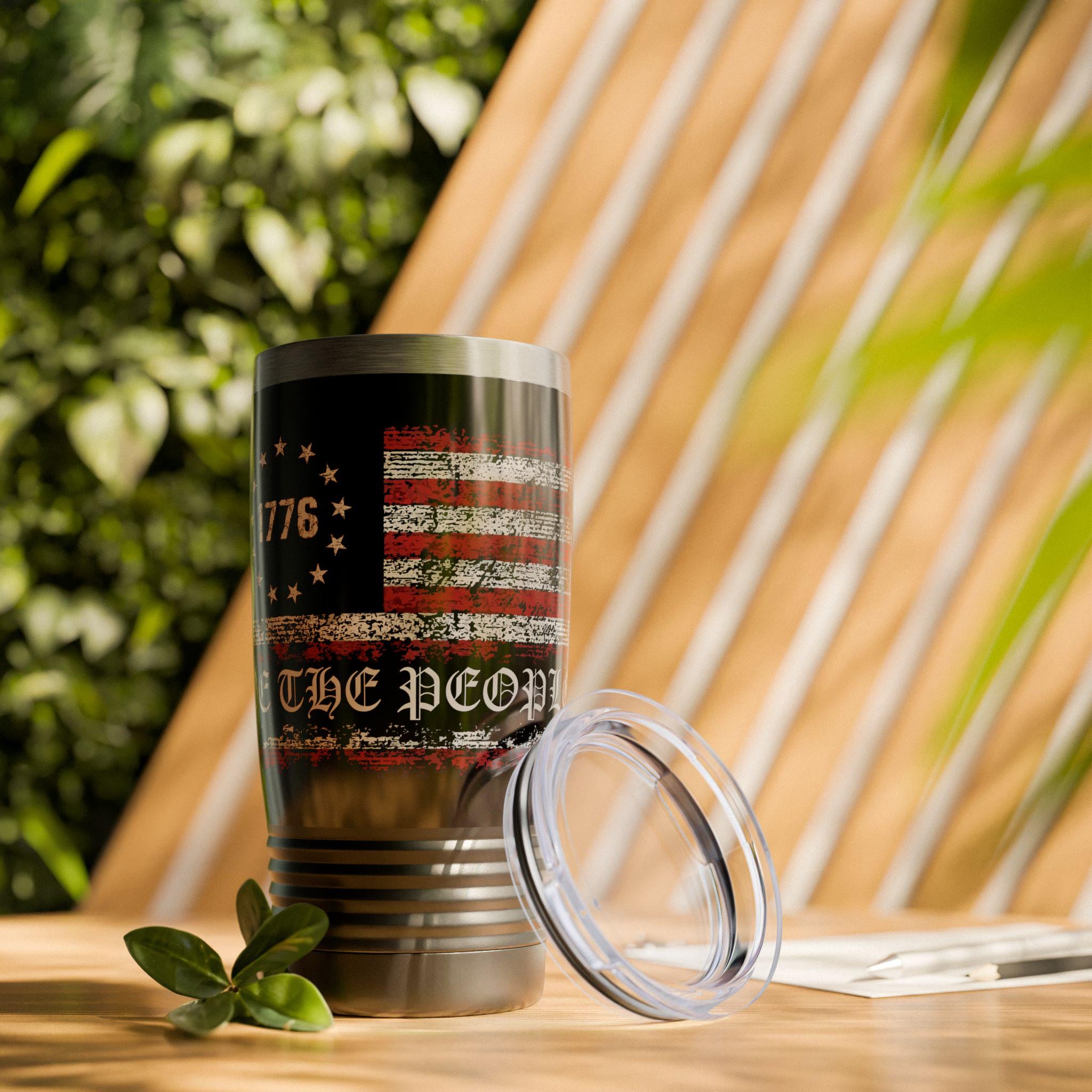 The perfect drinking tumbler when celebrating or everyday use. We The People 1776 patriotic drinking glass