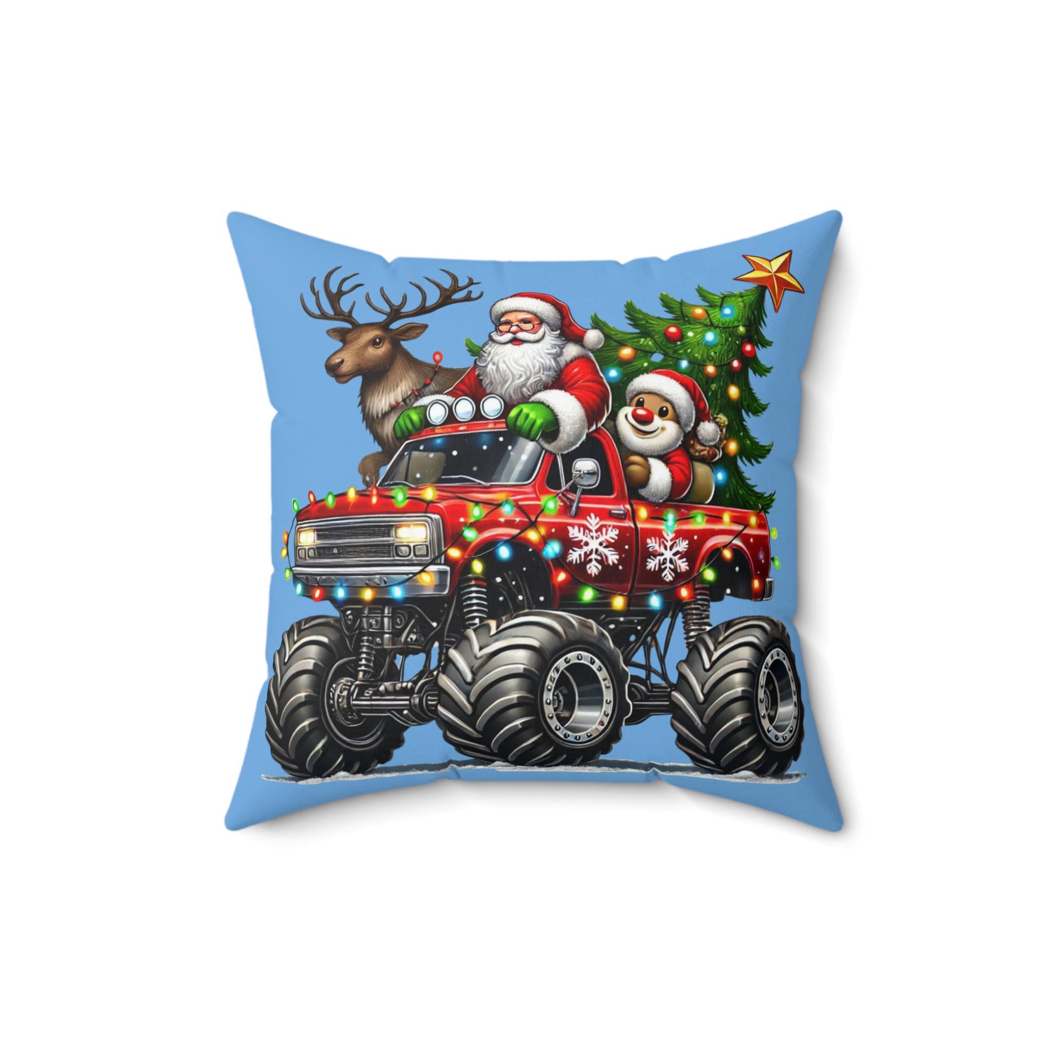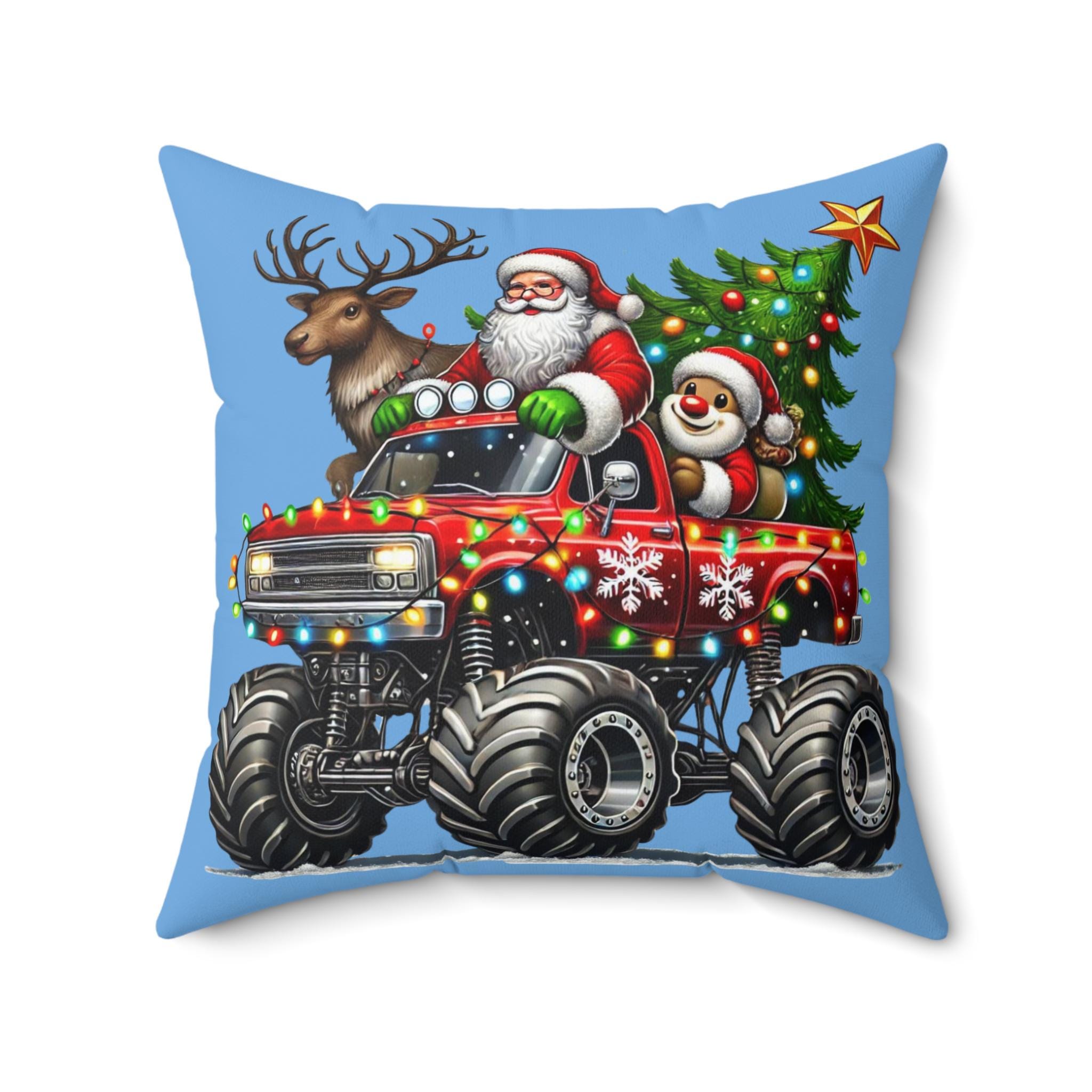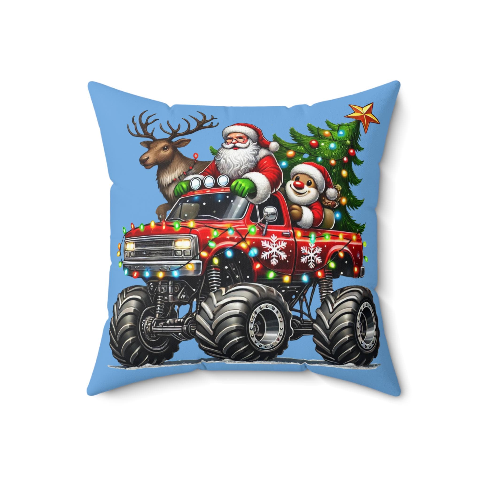 Holiday Christmas Truck Decor Pillow, Holiday Throw Pillow, Santa Christmas Pillow, Reindeer Square Pillow, Winter Home Accent