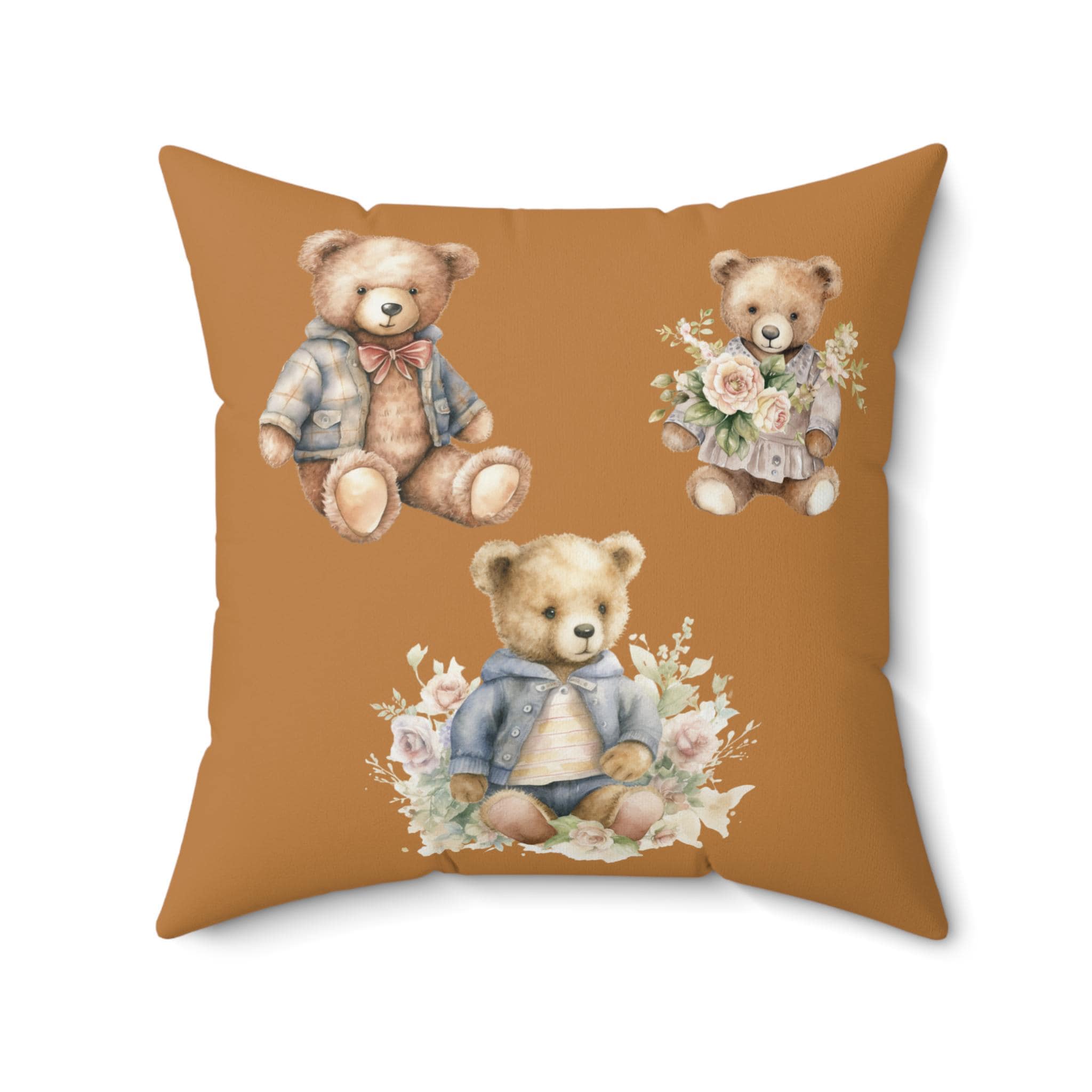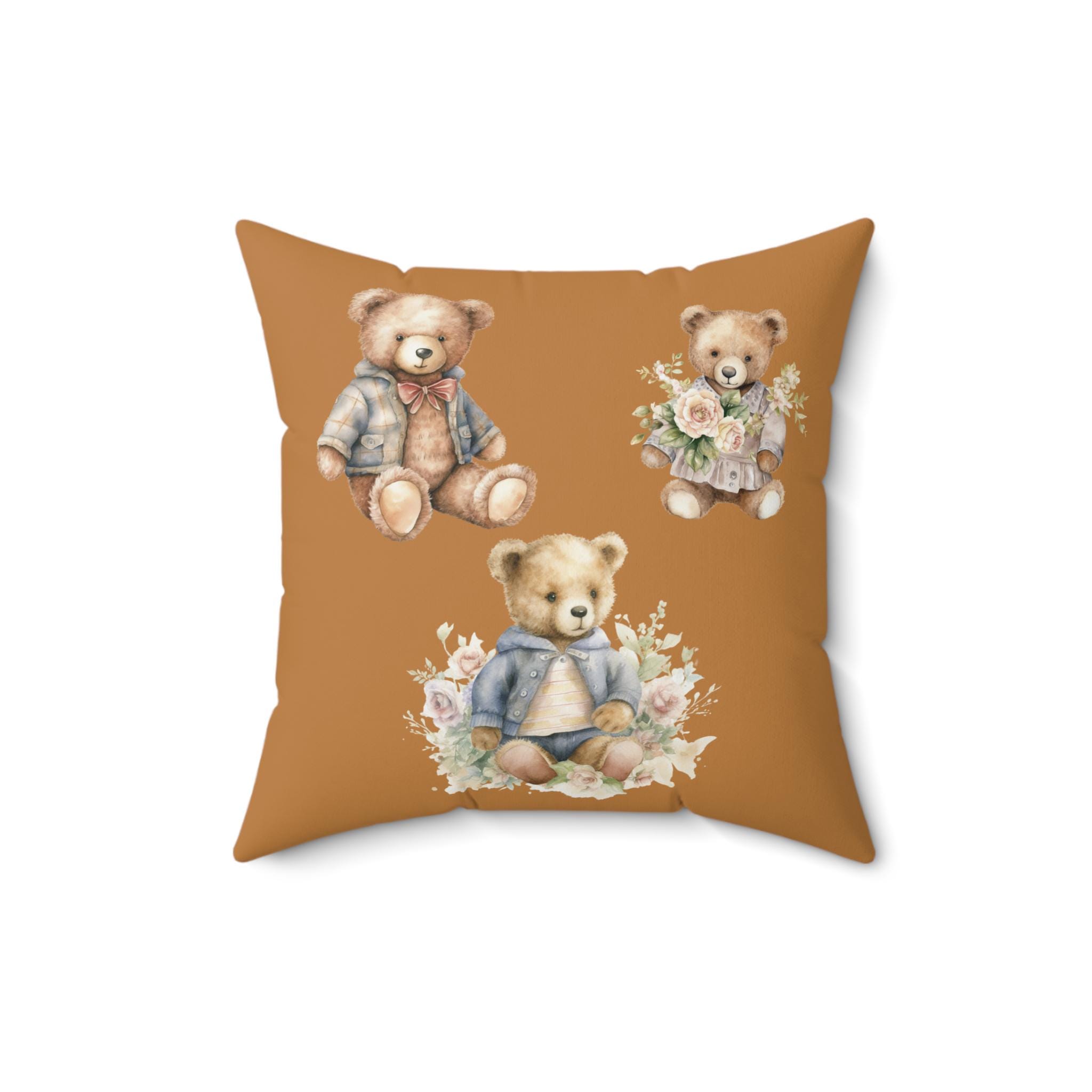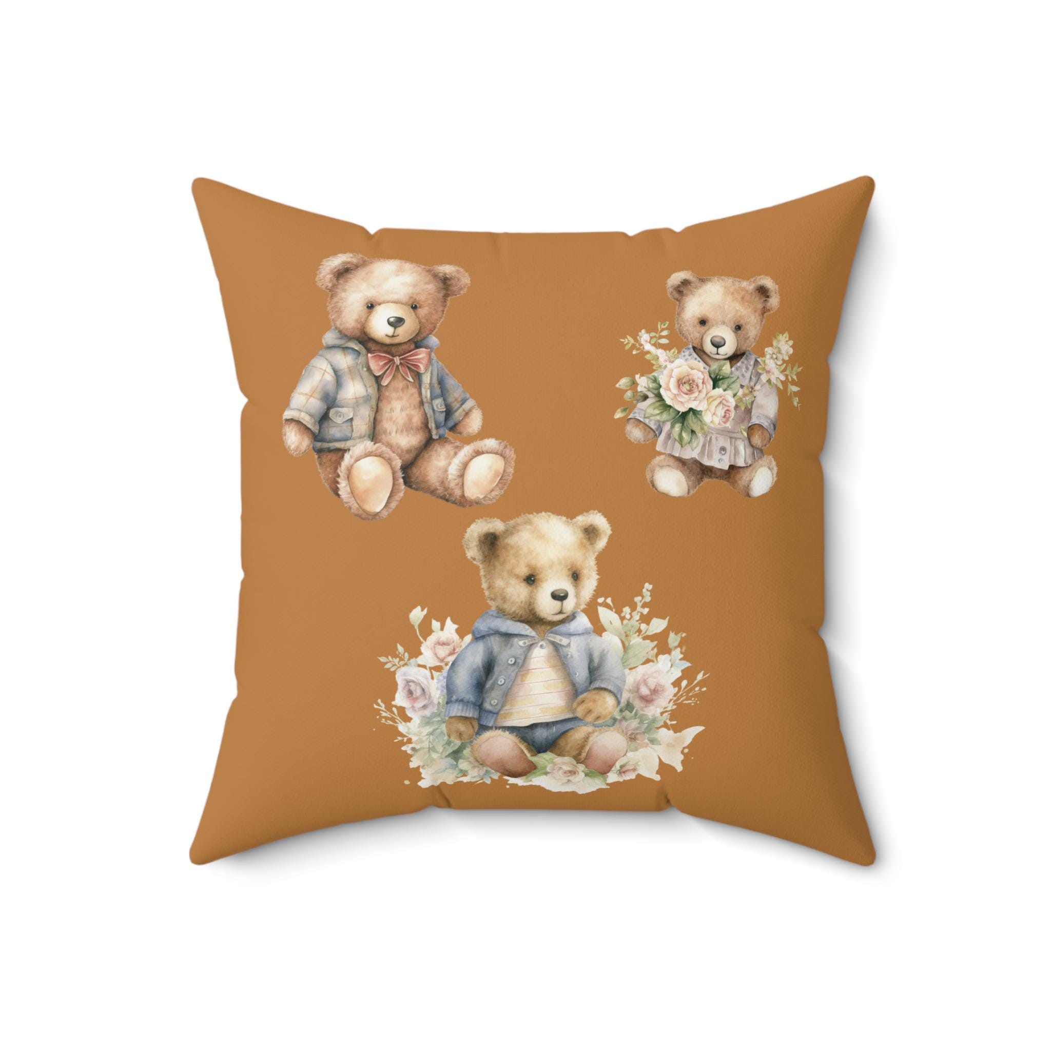 Elevate your home decor with this charming Spun Polyester Square Pillow. Featuring adorable bear illustrations, this pillow adds a cozy and playful vibe to any room. It's perfect for nurseries, kids' rooms, or as a whimsical touch in living spaces. The double-sided print ensures that no matter the angle, this pillow adds a pop of personality. Ideal for gifting during baby showers, birthdays, or just to brighten someone's day, this pillow is a delightful addition to any child's space or a warm accent for grown-up rooms alike. Bring comfort and joy into your home with this sweet design!