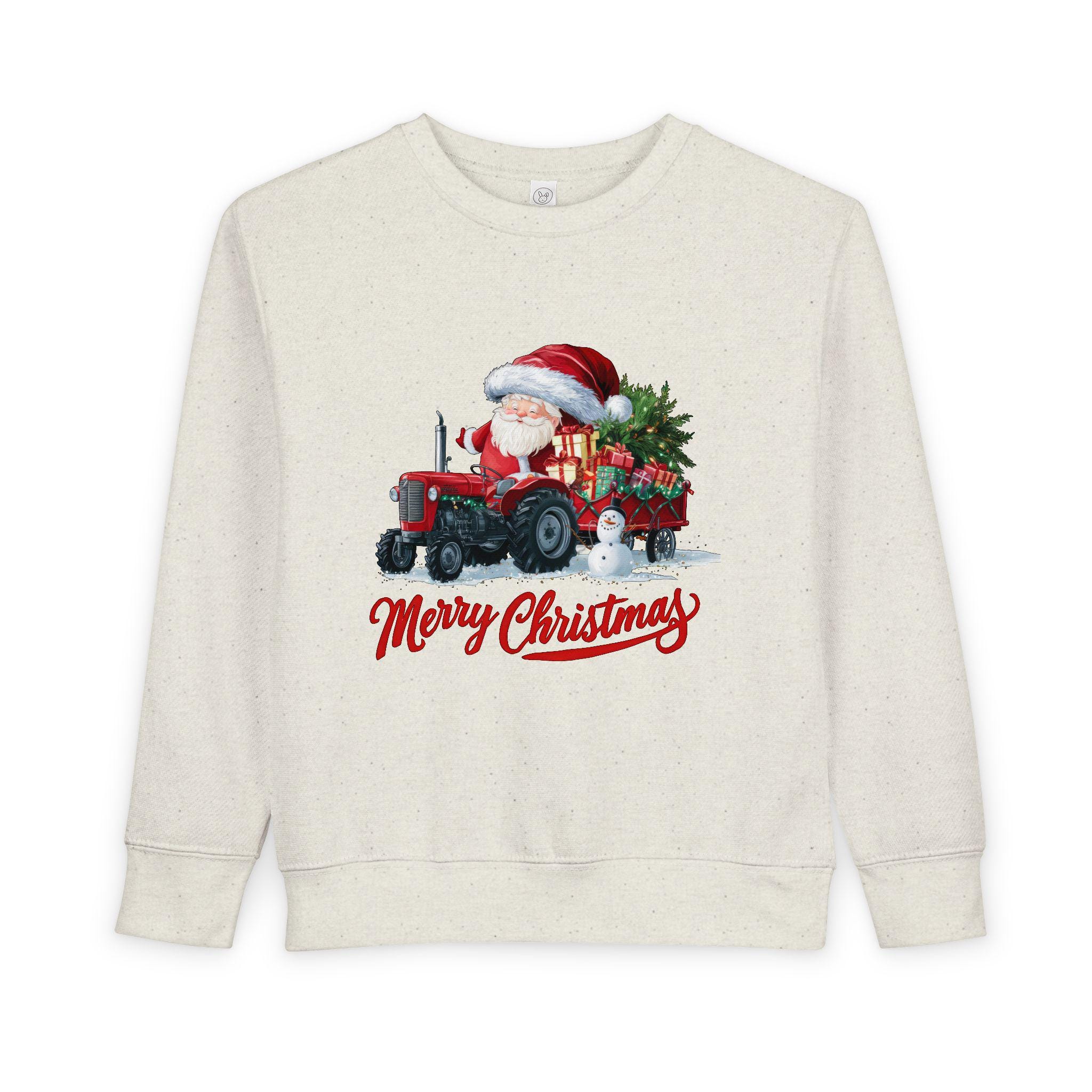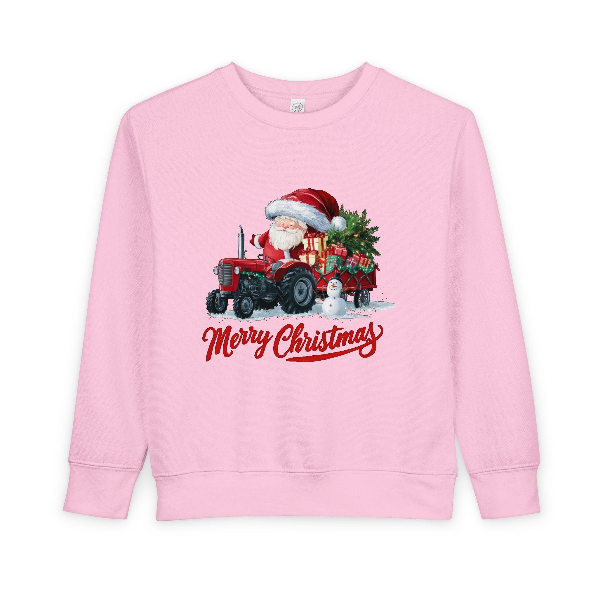Add a dash of holiday cheer to your toddler's wardrobe with this adorable sweatshirt. Featuring a joyful Santa on a vintage tractor, this piece brings the magic of Christmas to life. Crafted with a cozy blend of cotton and polyester, it keeps little ones comfortable while they play or relax. Perfect for family gatherings, festive celebrations, or cozy nights at home. This sweatshirt is ideal for toddlers who love fun and whimsical designs, making it a great gift for Christmas, birthdays, or any special occasion. Embrace the spirit of the season!