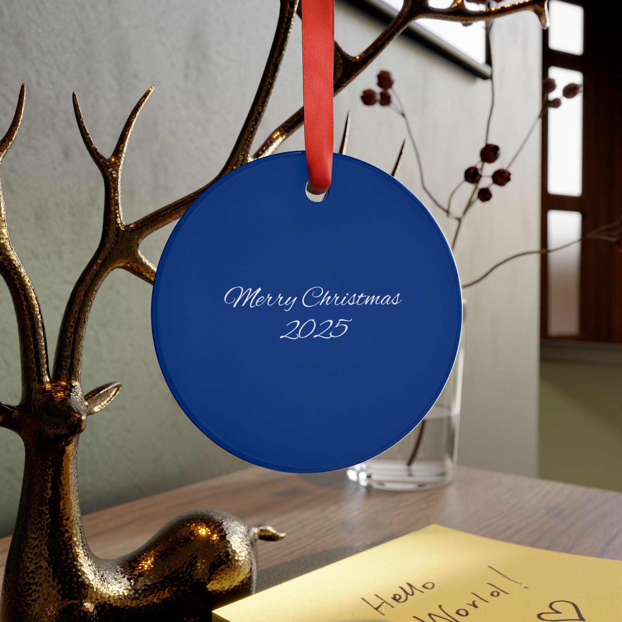 - Includes red satin ribbon for easy hanging