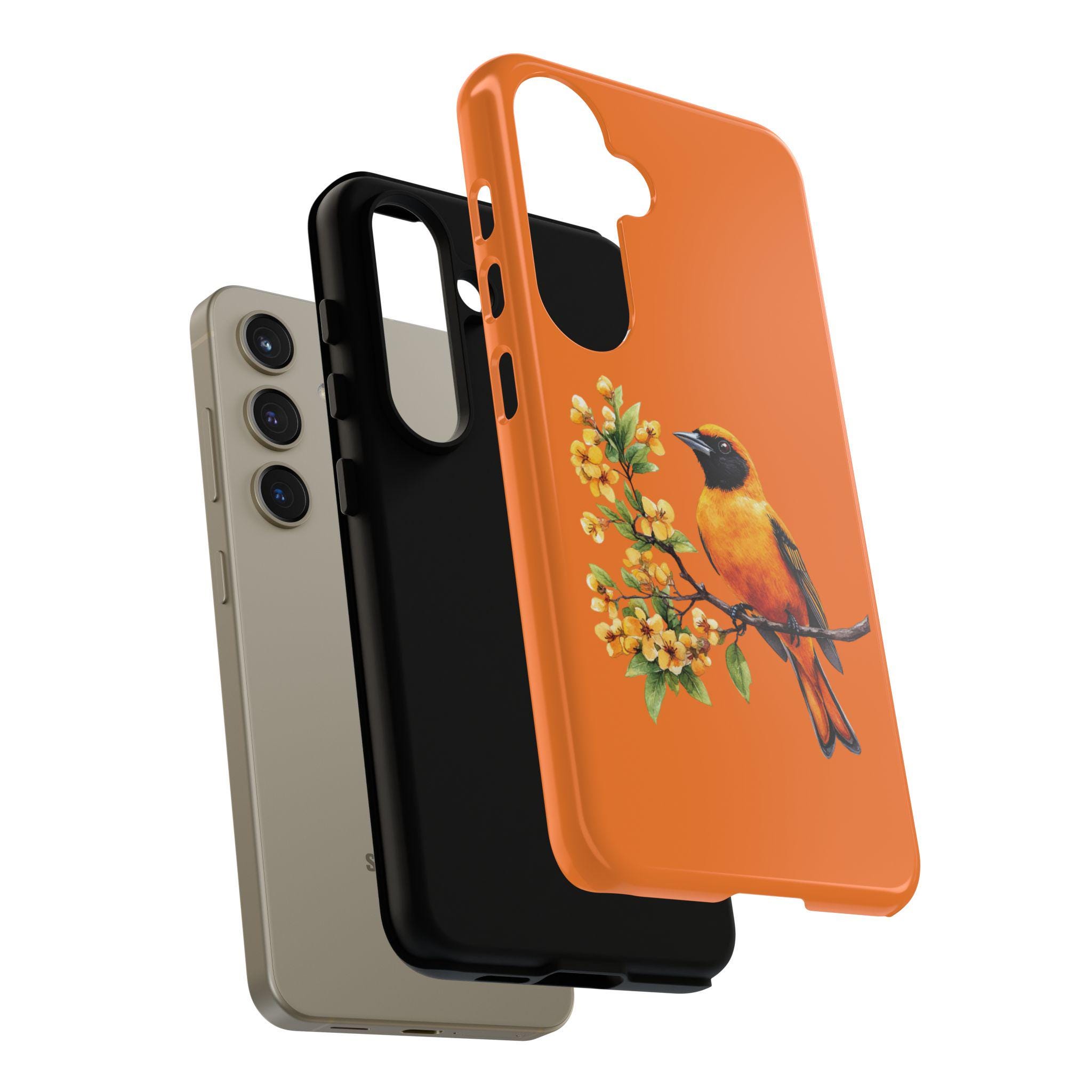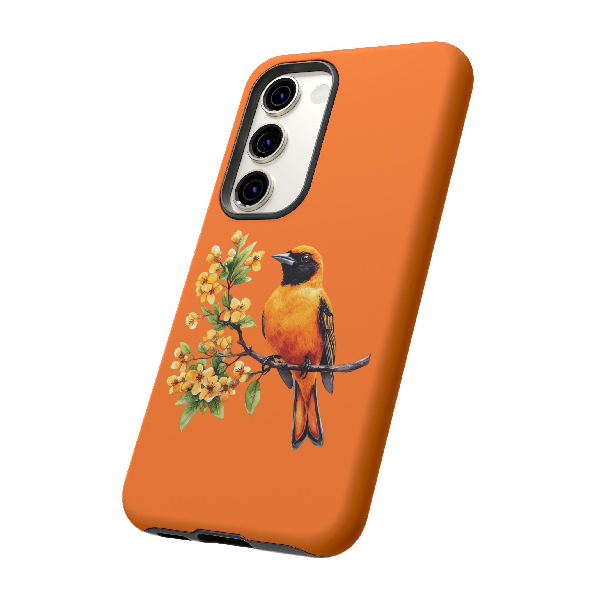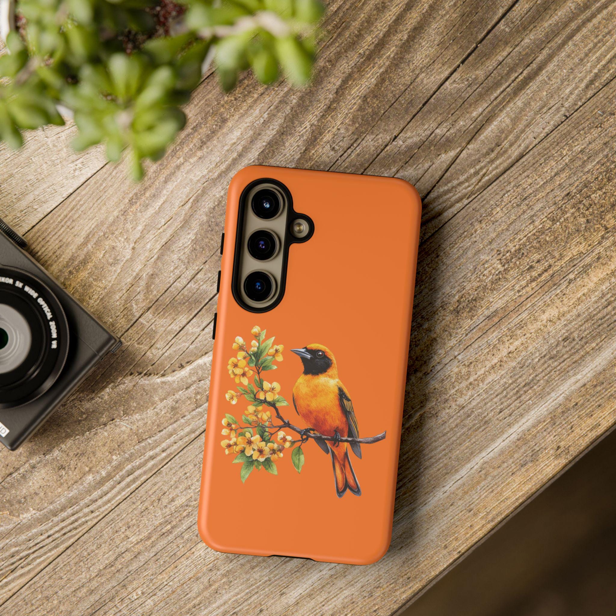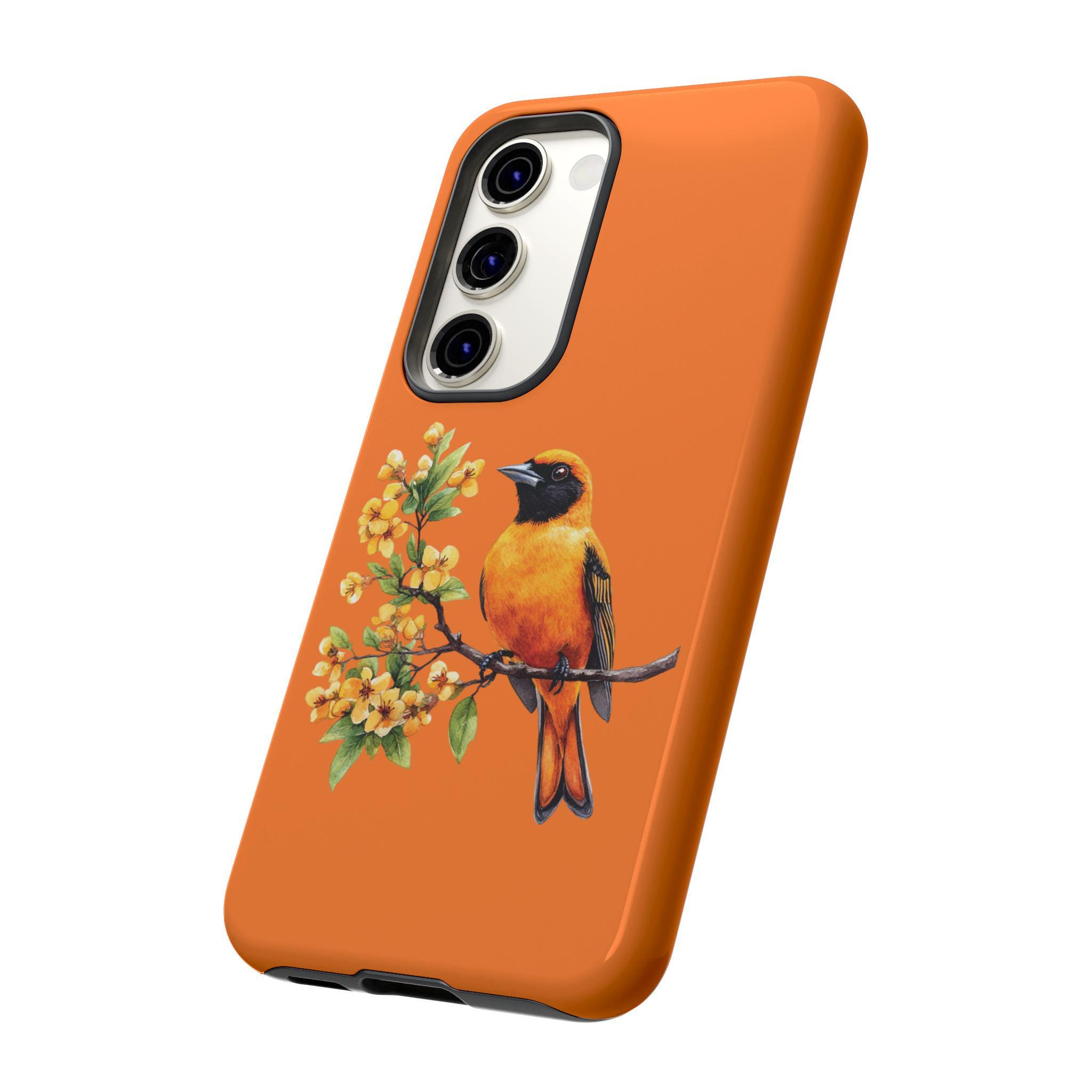 A slim, protective phone case that brings a warm, natural mood to your daily carry. The rich camel background frames a hand-painted style oriole perched on a flowering branch, giving a quiet nod to early-morning gardens and slow coffee rituals. The dual-layer construction cushions shocks while a glossy or matte surface keeps the artwork vivid; clear port openings and wireless charging compatibility let you use your phone without removing the case. Small care steps—avoid high-alcohol liquids, heavy sun exposure, and lotions—help the print stay true over time.