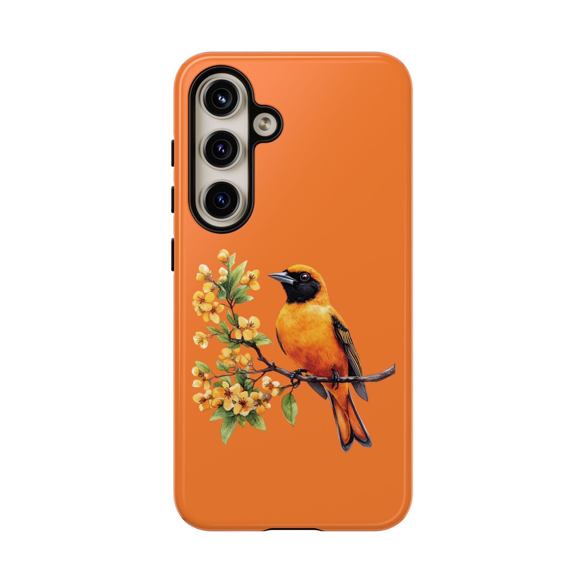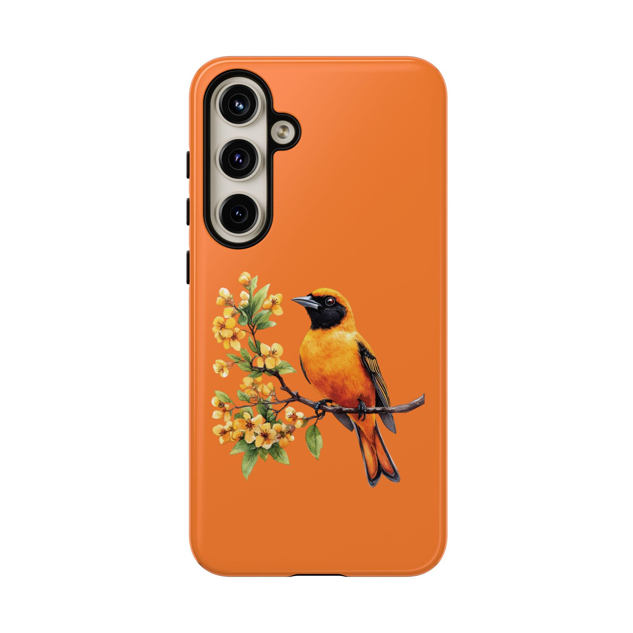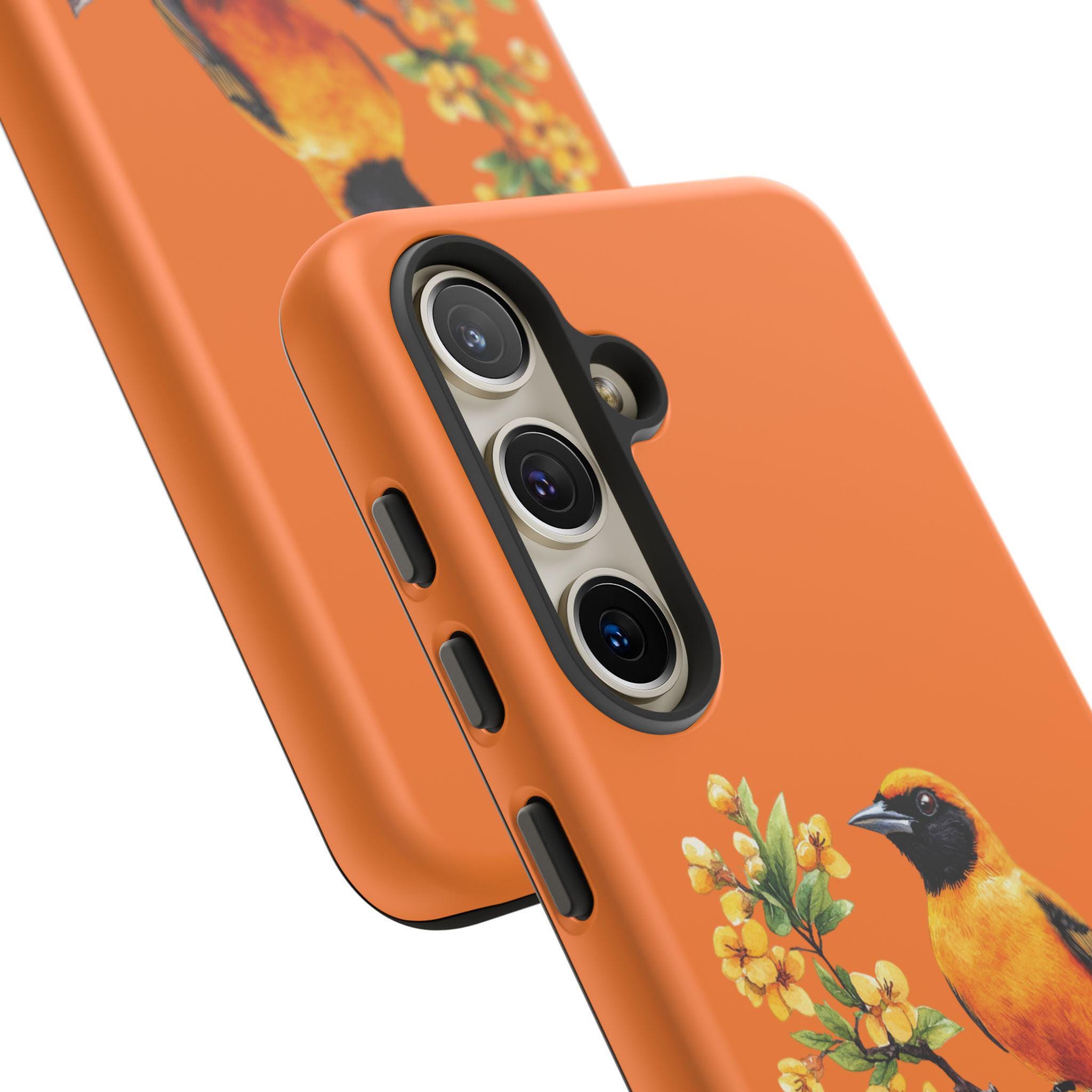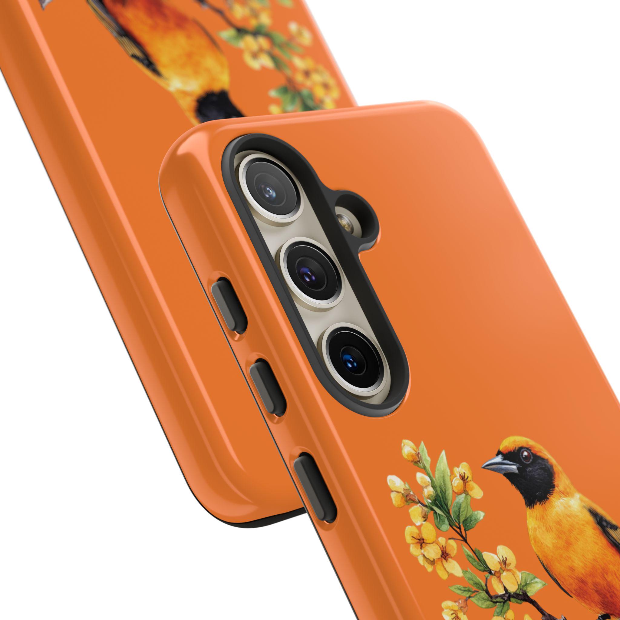 A slim, protective phone case that brings a warm, natural mood to your daily carry. The rich camel background frames a hand-painted style oriole perched on a flowering branch, giving a quiet nod to early-morning gardens and slow coffee rituals. The dual-layer construction cushions shocks while a glossy or matte surface keeps the artwork vivid; clear port openings and wireless charging compatibility let you use your phone without removing the case. Small care steps—avoid high-alcohol liquids, heavy sun exposure, and lotions—help the print stay true over time.