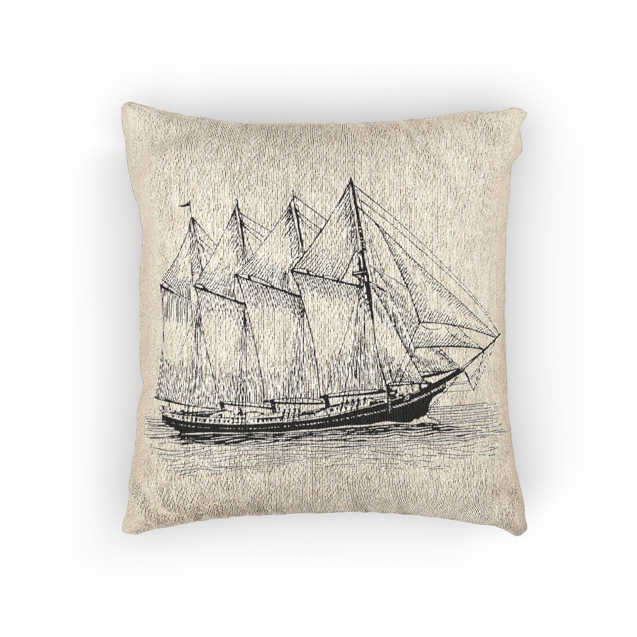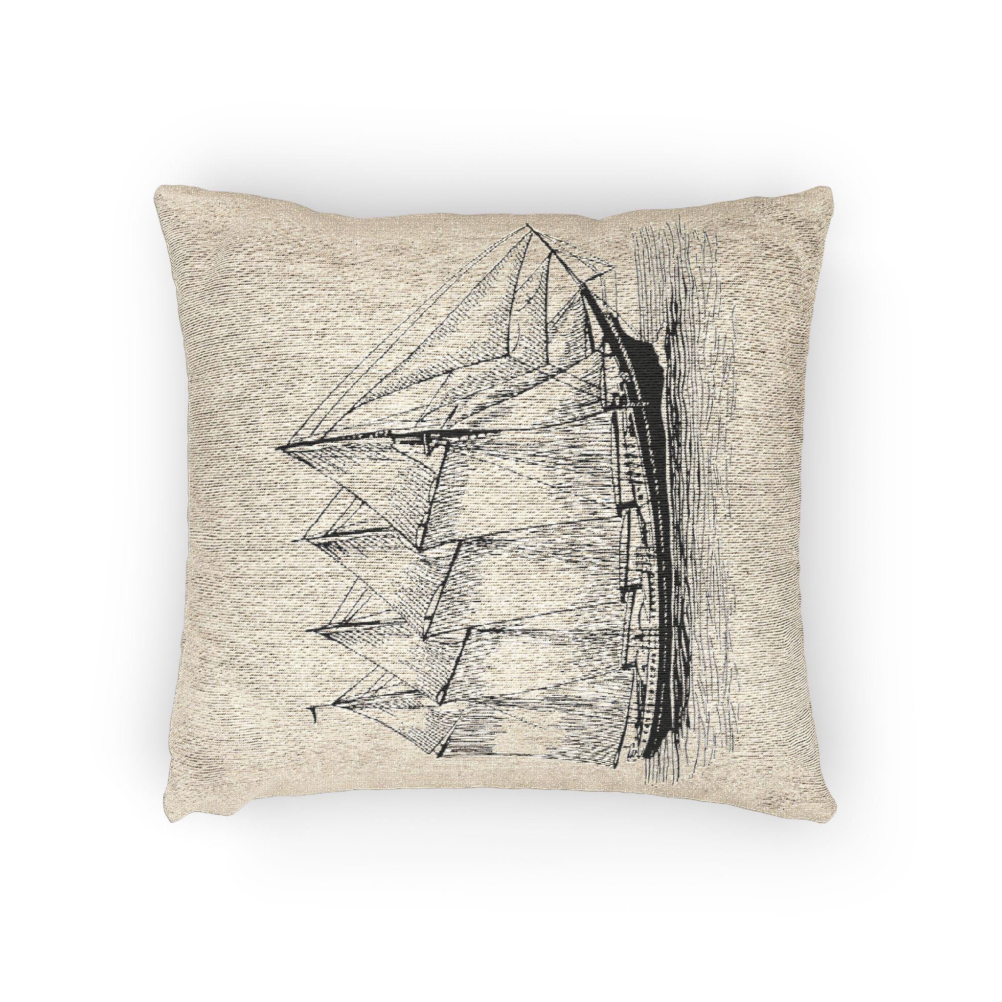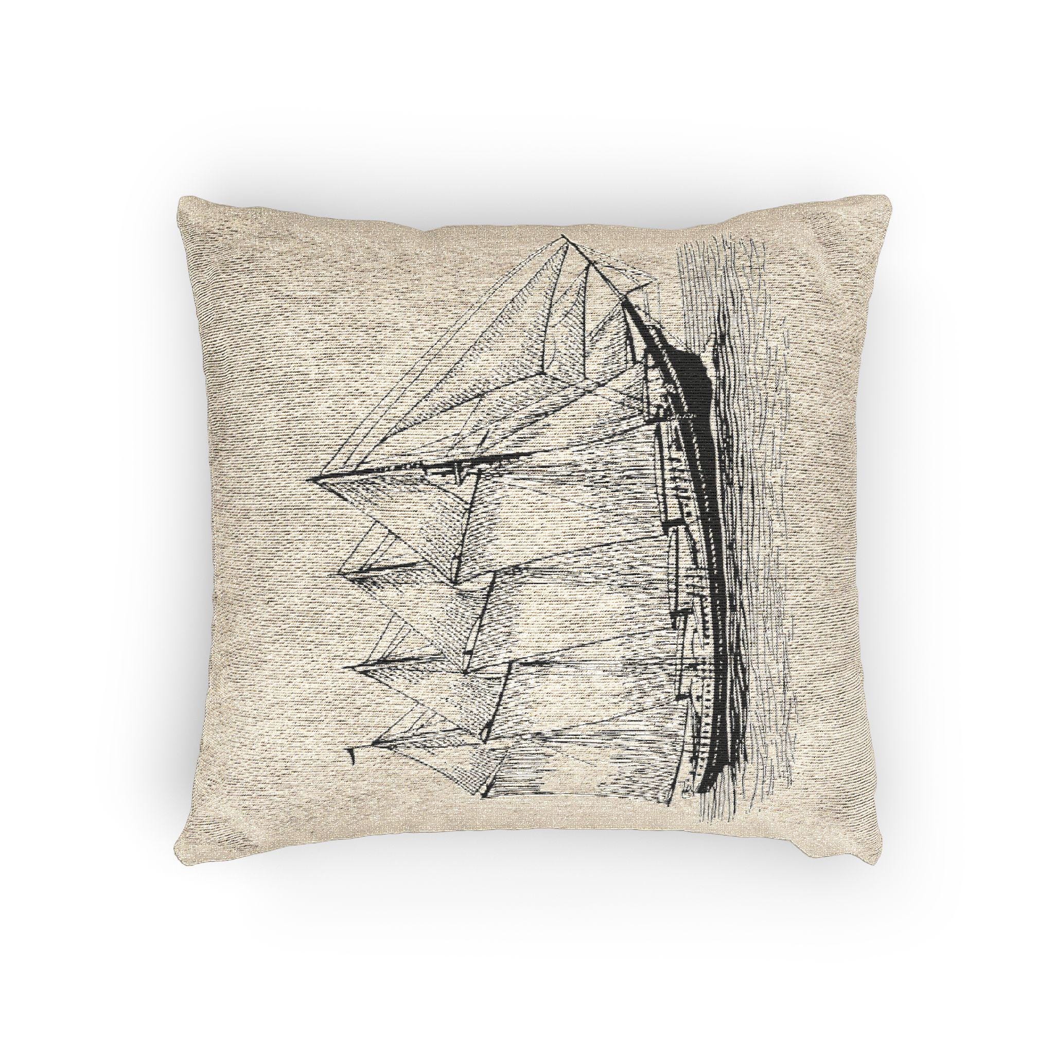 A woven decorative pillow that brings a quiet coastal elegance to living rooms, reading nooks, and seaside cottages. The woven threads create a textured, vintage-inspired illustration of a classic sailing ship in muted black-on-ivory tones. The design is woven on both sides, giving the pillow a finished, artisanal look that feels lived-in and timeless. It settles into sofas and armchairs, adding tactile depth and a touch of maritime history without shouting for attention. Choose the Artwork variant to preserve the crisp, graphic lines of the ship drawing, or the Photo variant when you want richer tonal transitions. The pillow’s sturdy woven fabric and quick-drying polyester filling mean it keeps its shape through everyday use while maintaining that hand-crafted, coastal charm.