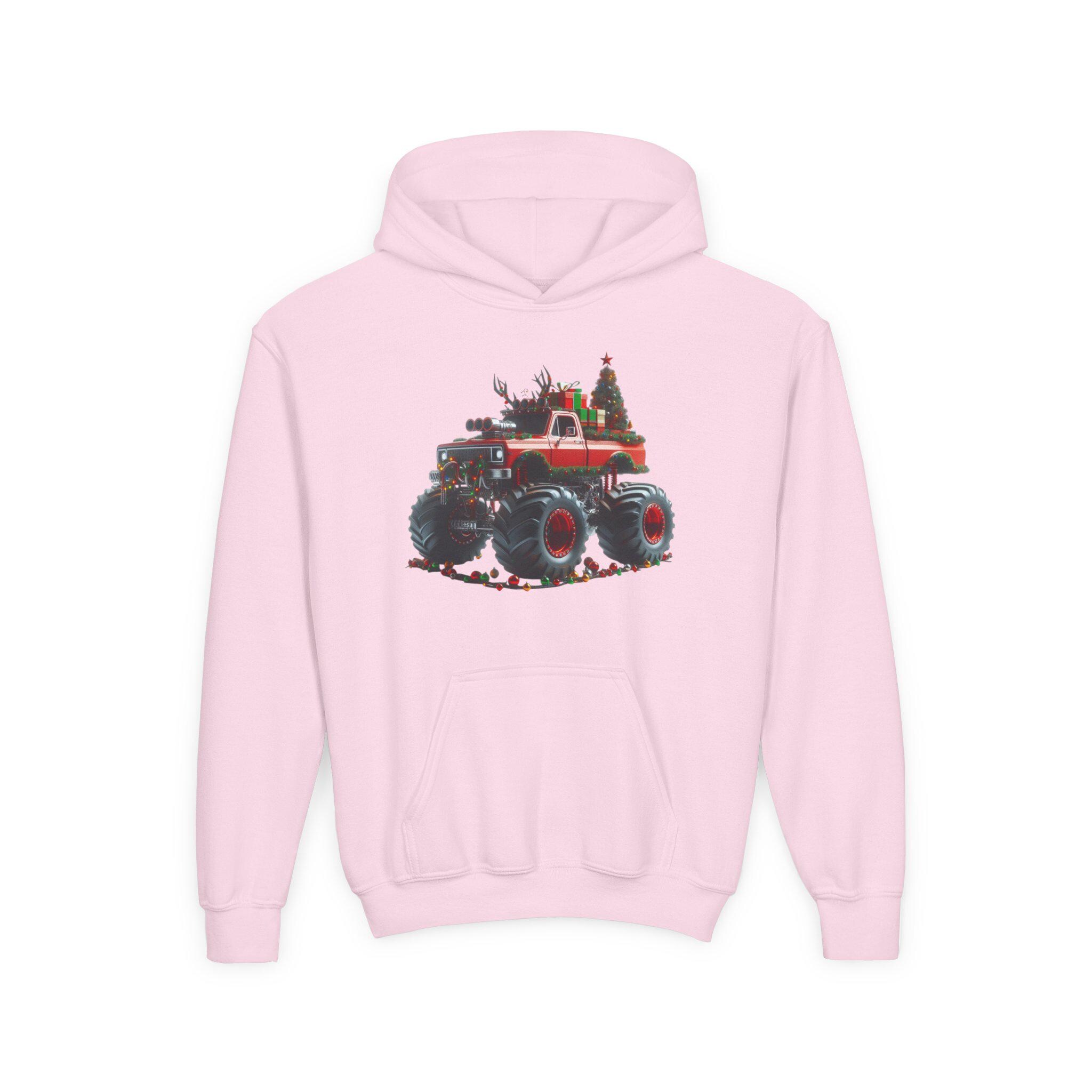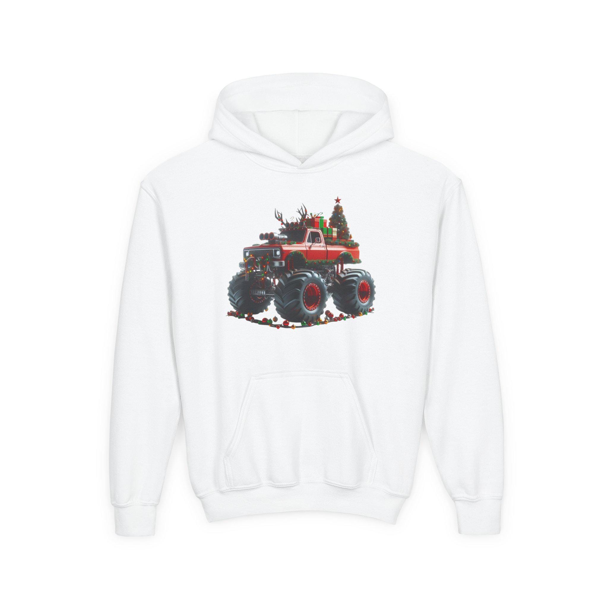 This Monster Truck with Christmas Tree Hoodie is perfect for kids during the holiday season. The festive design brings a cheerful and playful vibe, making it ideal for Christmas celebrations. The spacious pouch pocket ensures warmth and convenience for little ones, while the cozy 50% cotton, 50% polyester fabric provides comfort and durability. Ideal for children and a great gift for Christmas.