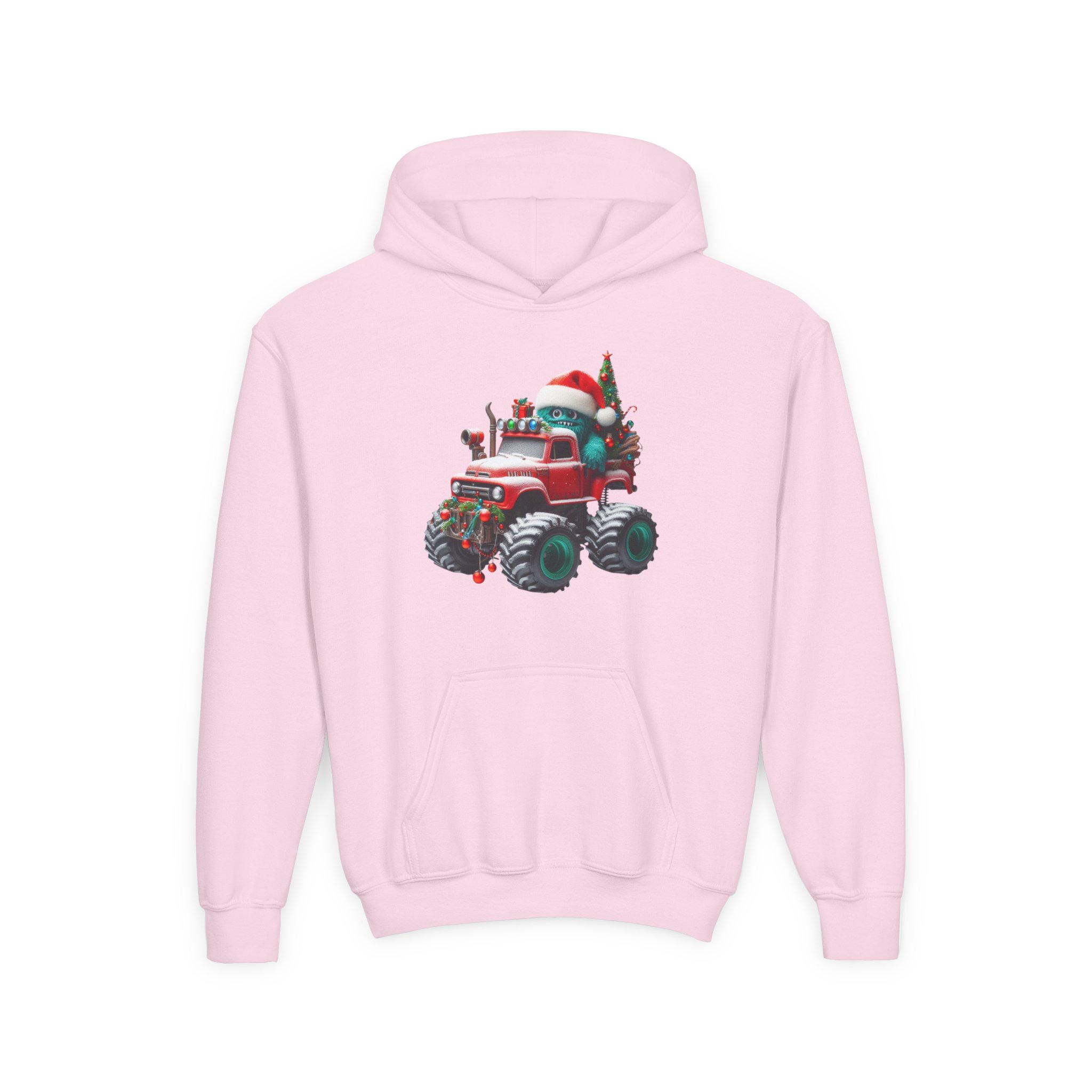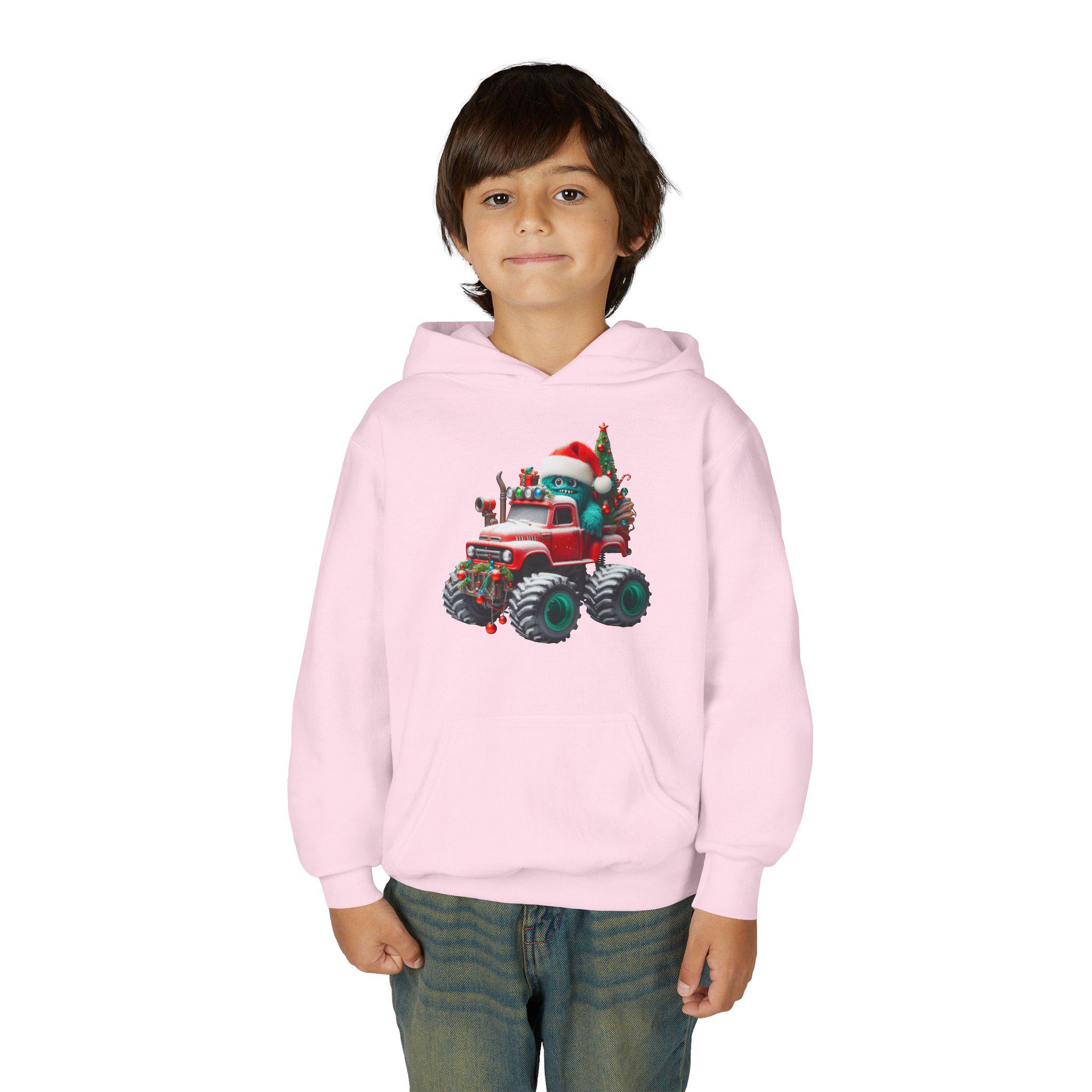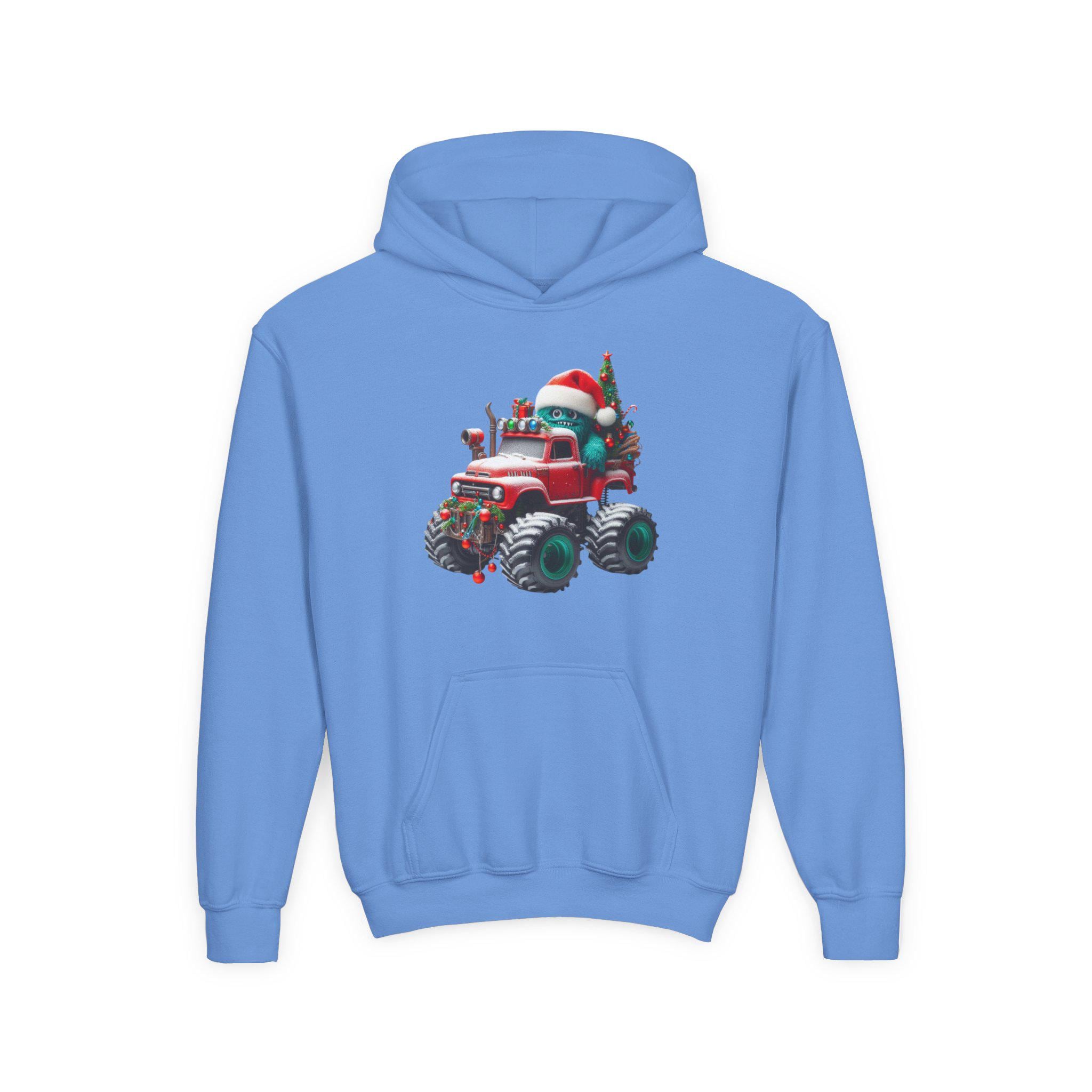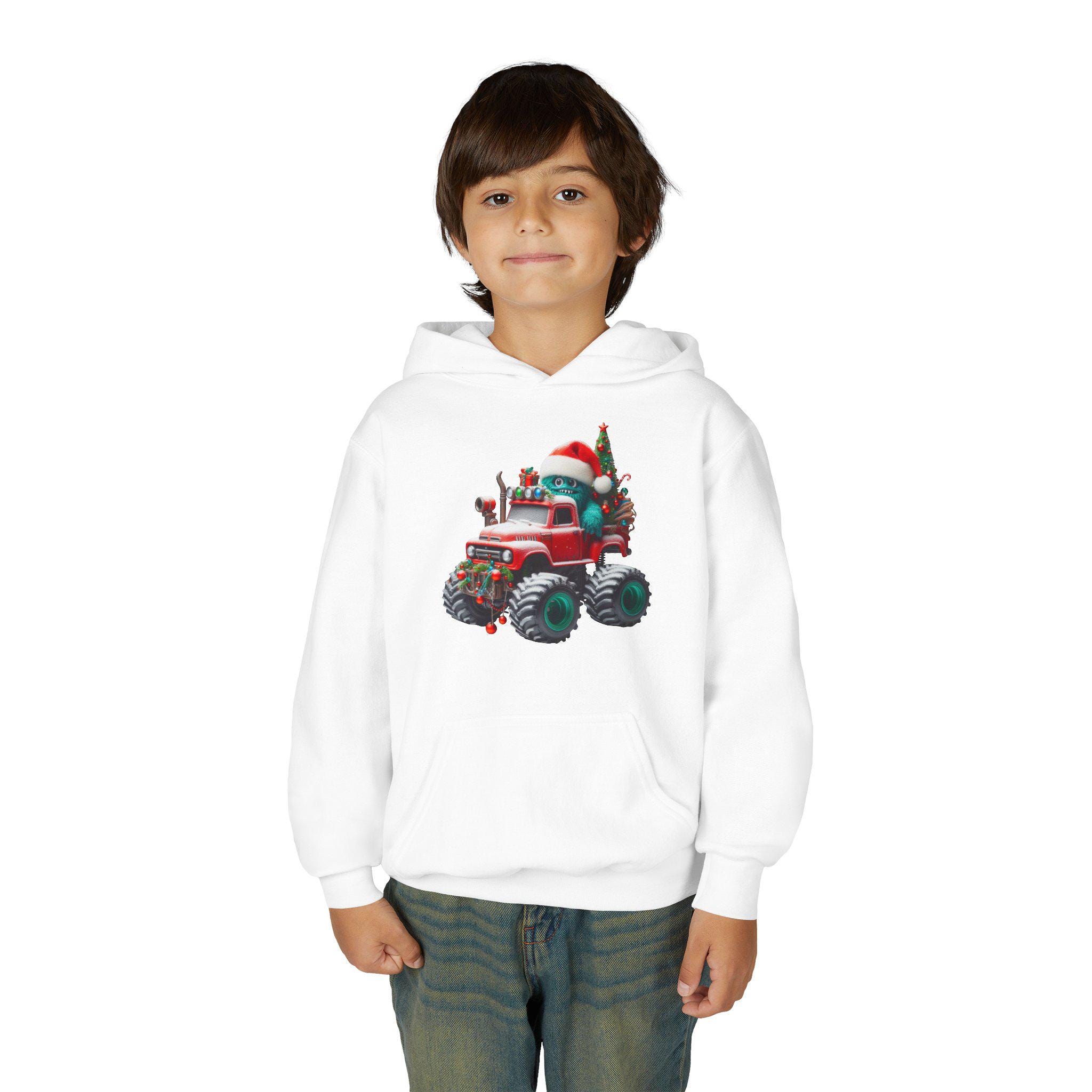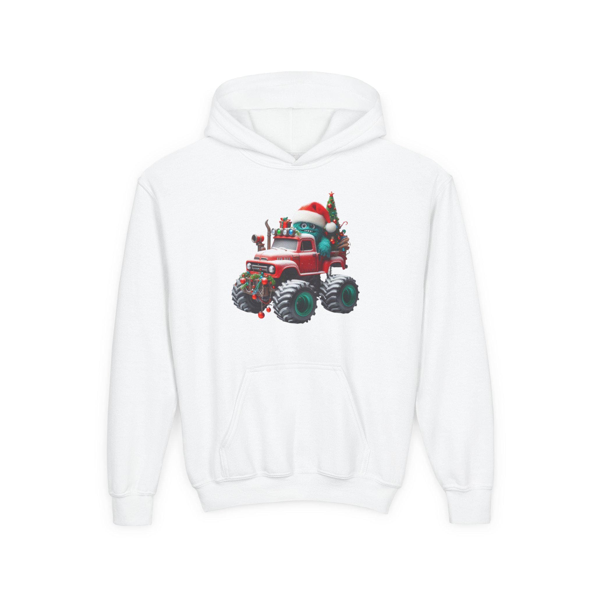 Get your little one in the holiday spirit with this Santa Monster Truck Hoodie featuring a festive Christmas Kids Holiday Truck with Tree design. Perfect for keeping them warm and cozy during the holiday season, this hoodie is ideal for children and is sure to bring joy to any Christmas celebration.