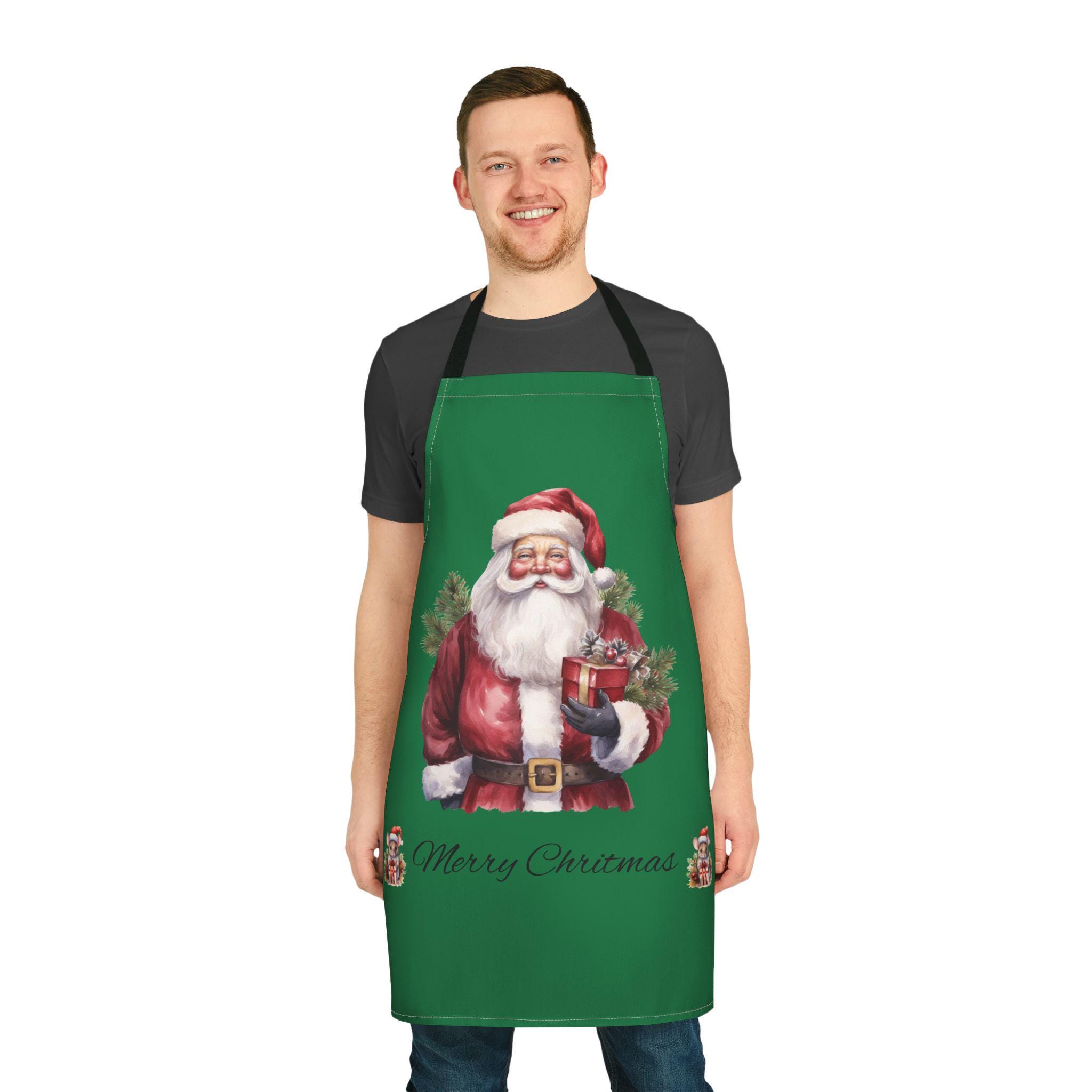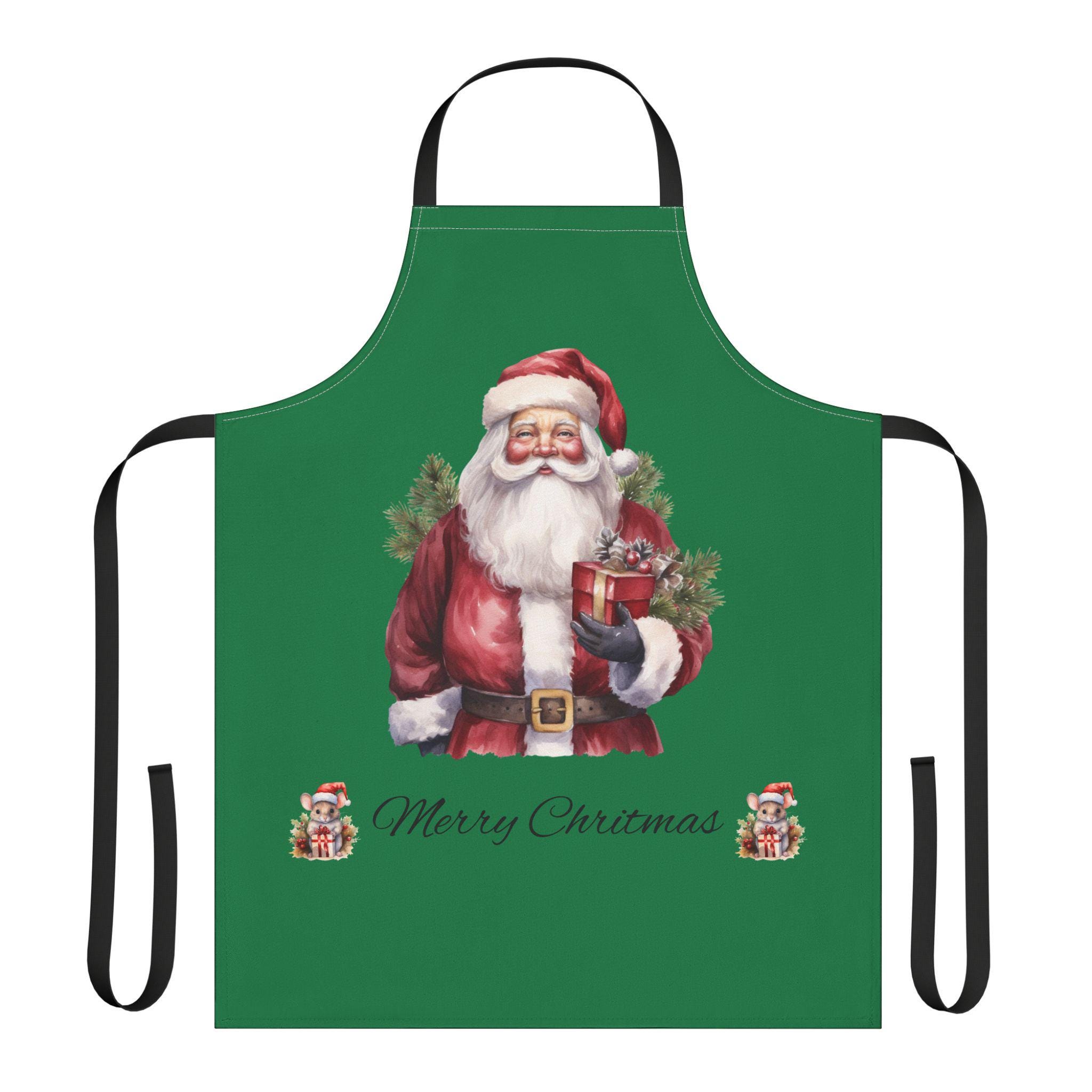 Wrap yourself in the warm, nostalgic spirit of the season with this festive apron. The deep green canvas sets off a classic, vintage-style Santa at the center, surrounded by small gift motifs and a subtle "Merry Christmas" script. It feels like a cozy kitchen on a quiet winter morning—flour on the counter, cinnamon in the air, and hands busy around a rolling pin. This apron slips on easily, ties at the back for a secure, adjustable fit, and resists stains so you can focus on baking, decorating, or wrapping without worrying about spills. Choose from five strap colors to match your holiday vibe or family photos. Assembled in the USA with bright, durable printing, it holds its color through holiday seasons and brings a touch of old-fashioned charm to every gathering.