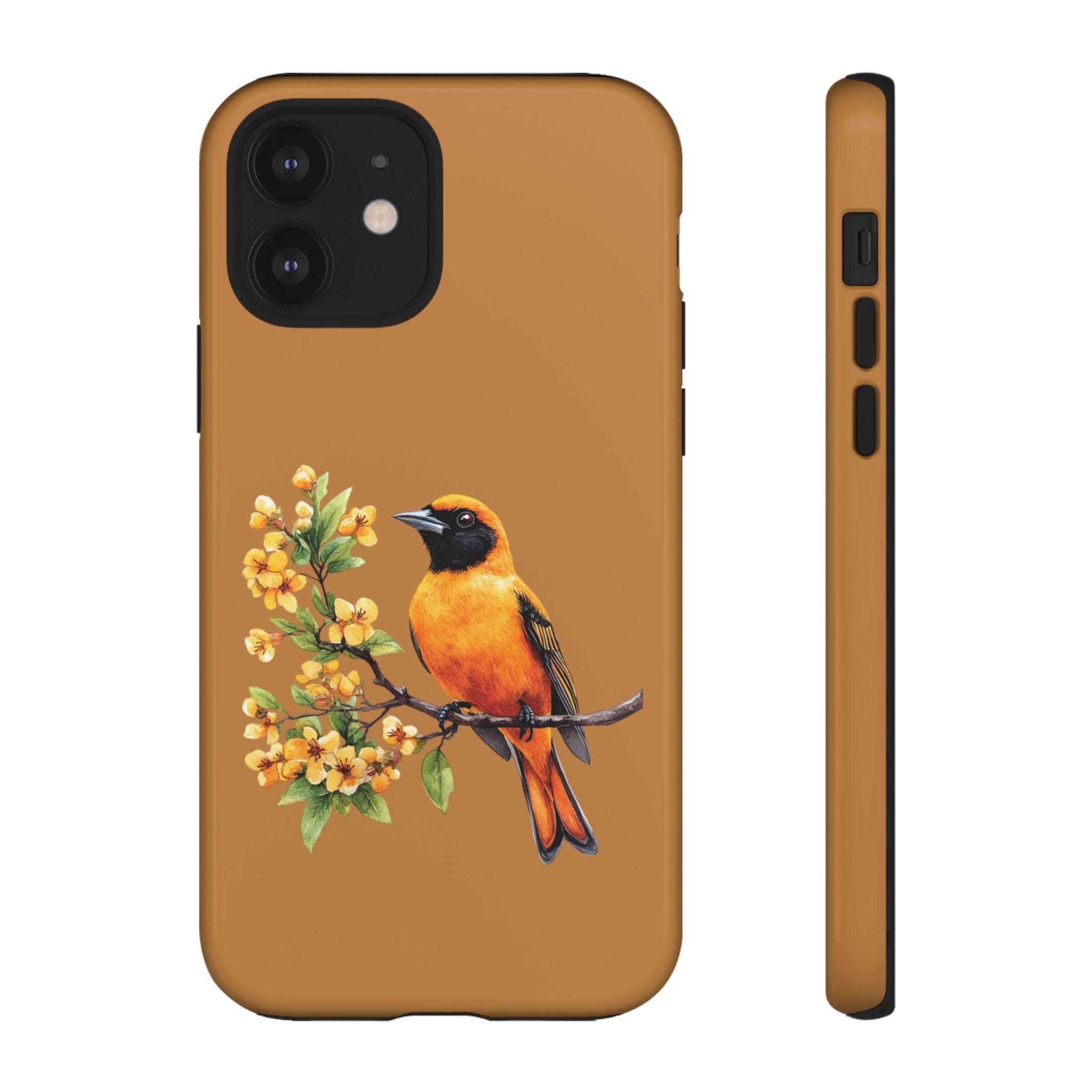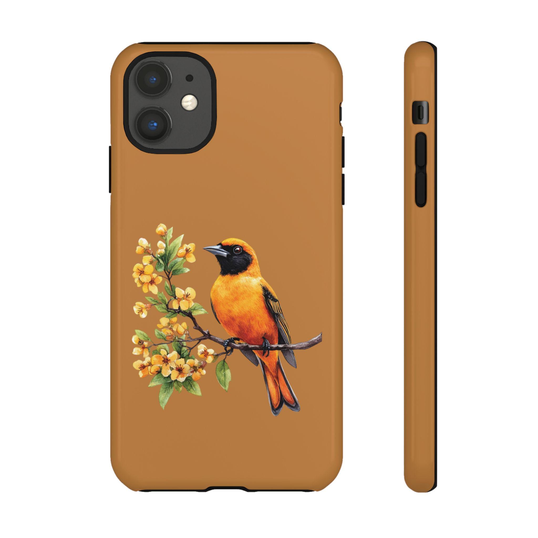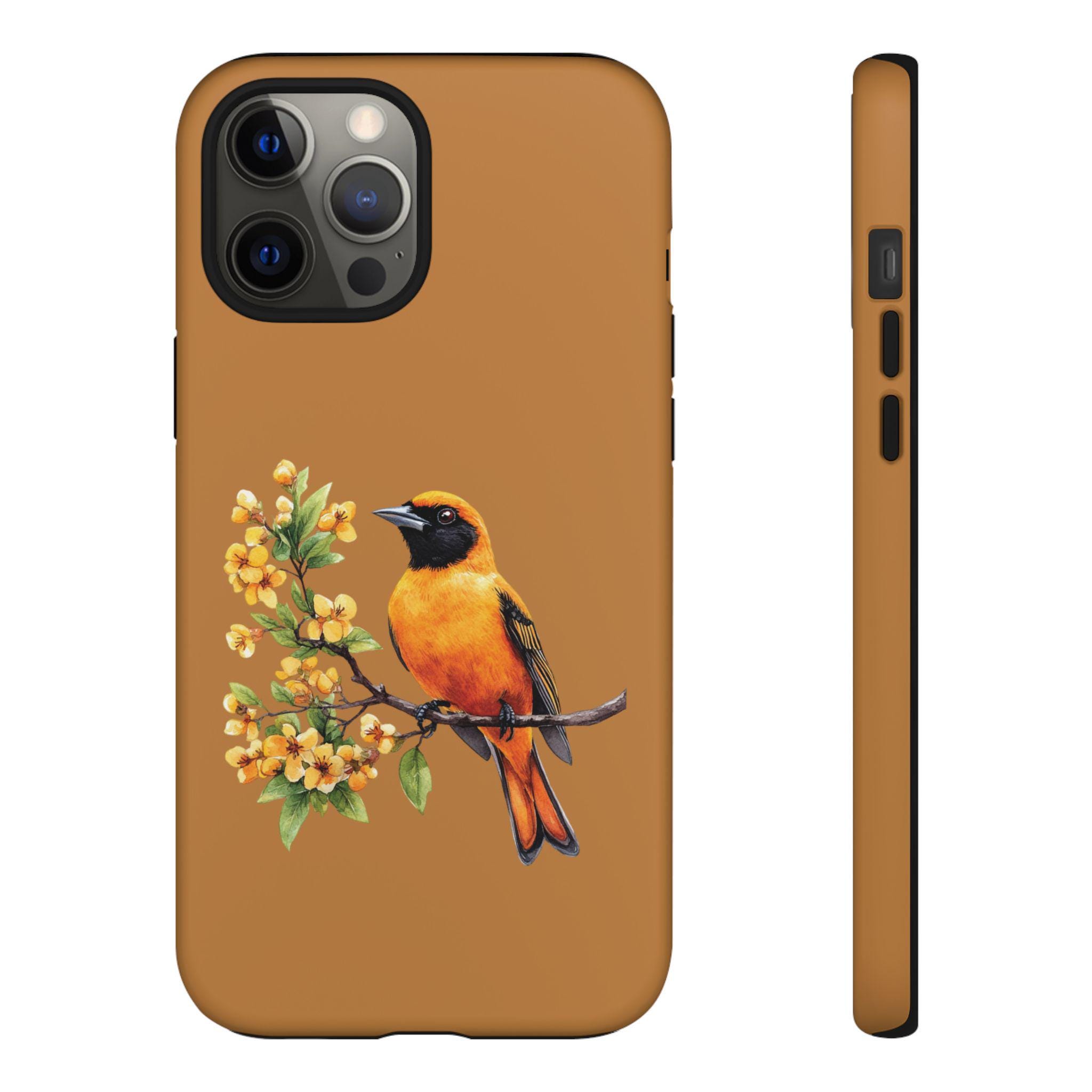 A slim, protective phone case that brings a warm, natural mood to your daily carry. The rich camel background frames a hand-painted style oriole perched on a flowering branch, giving a quiet nod to early-morning gardens and slow coffee rituals. The dual-layer construction cushions shocks while a glossy or matte surface keeps the artwork vivid; clear port openings and wireless charging compatibility let you use your phone without removing the case. Small care steps—avoid high-alcohol liquids, heavy sun exposure, and lotions—help the print stay true over time.