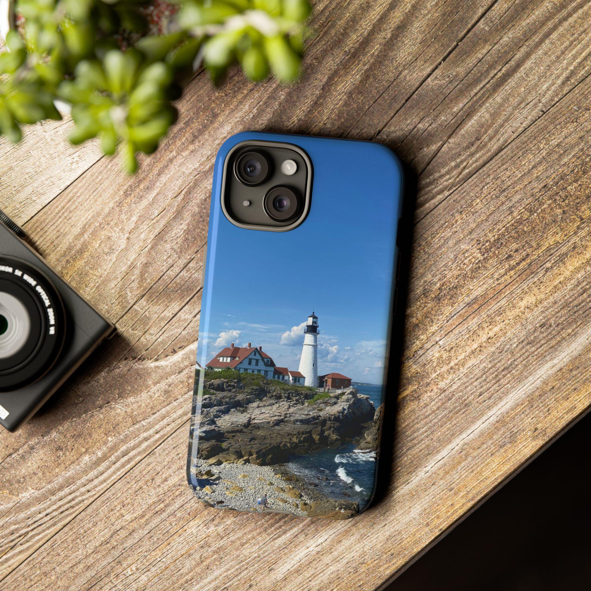 A slim, rugged phone case that carries the quiet breath of the coast. The full-wrap print places a sunlit lighthouse and rocky shore around your device, turning daily scrolling into a moment of shoreline calm. The dual-layer shell and soft TPU liner work together to take shocks and scrapes without adding bulk, while UV protection keeps the colors vivid through seasons of sun and salt air. This case slips into the rhythm of someone who values small, steady reminders of the places they return to — a companion for commutes, weekend drives, and tide-watching stops.