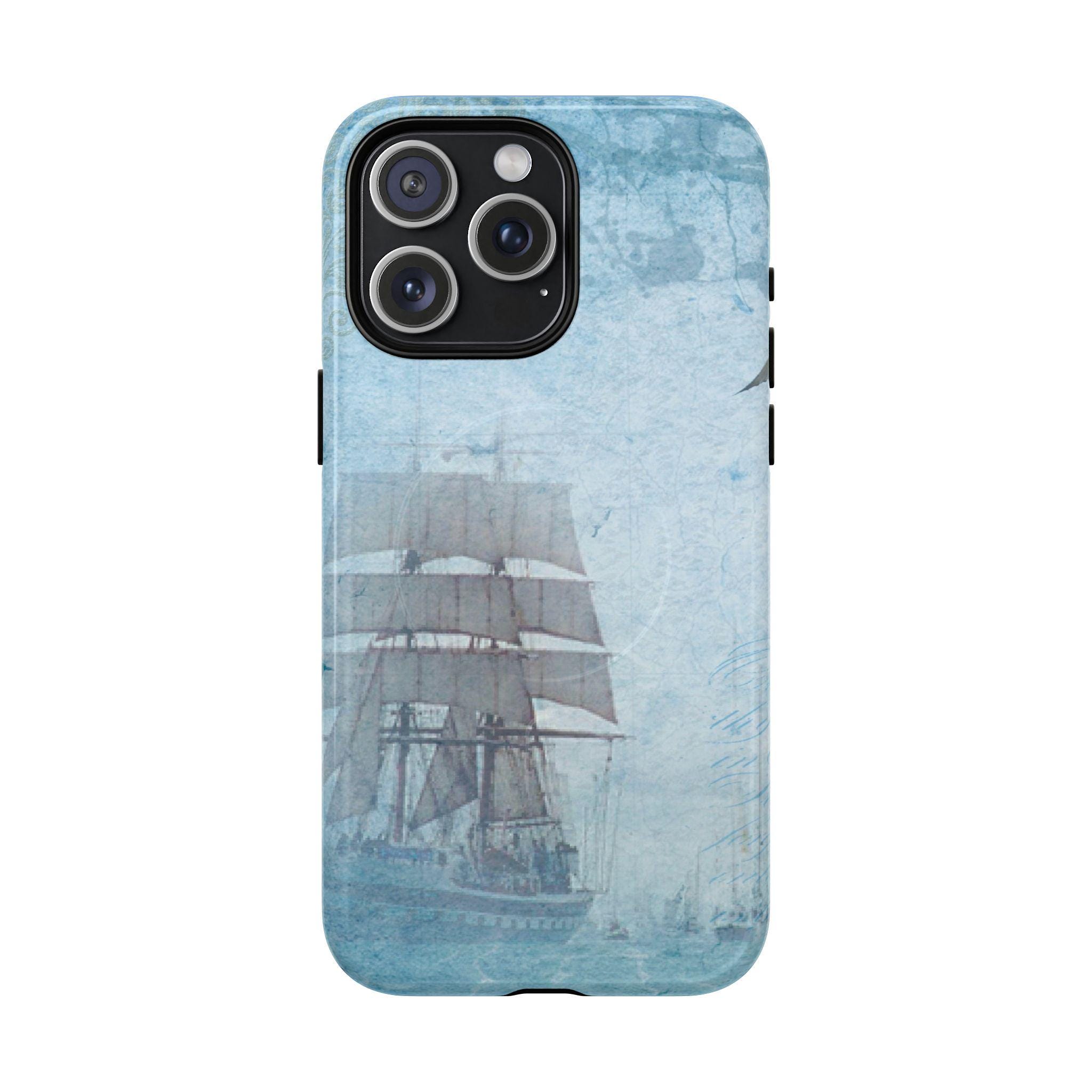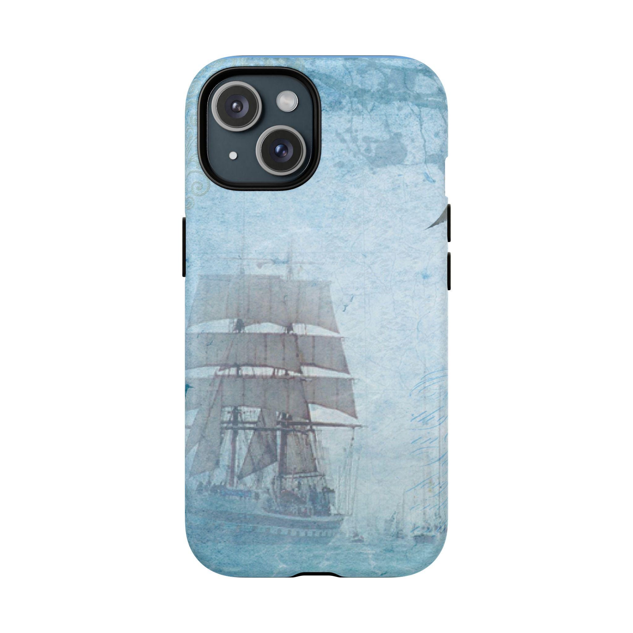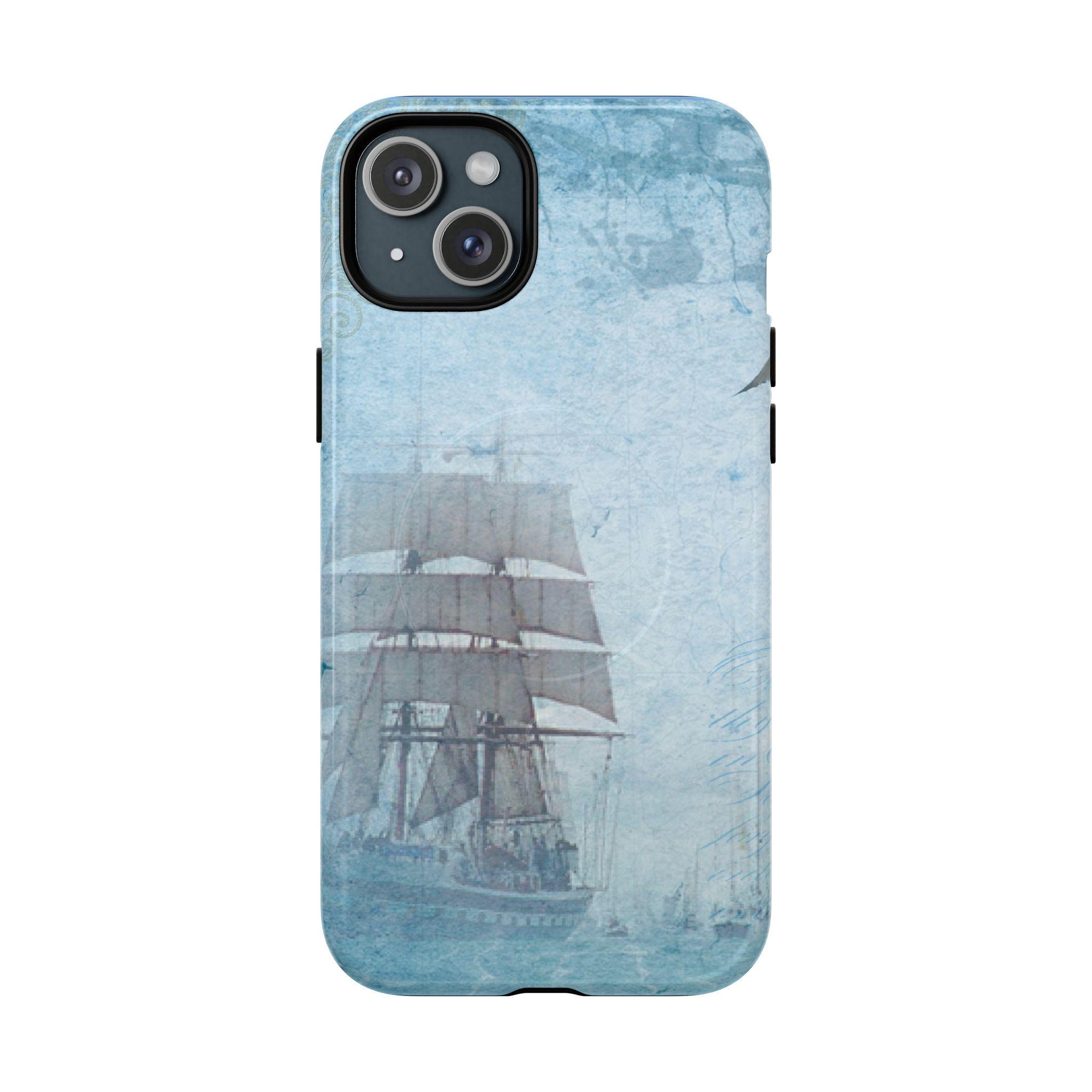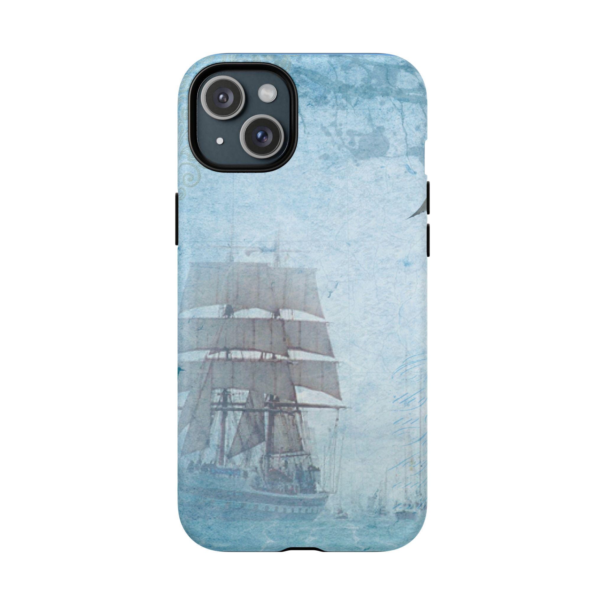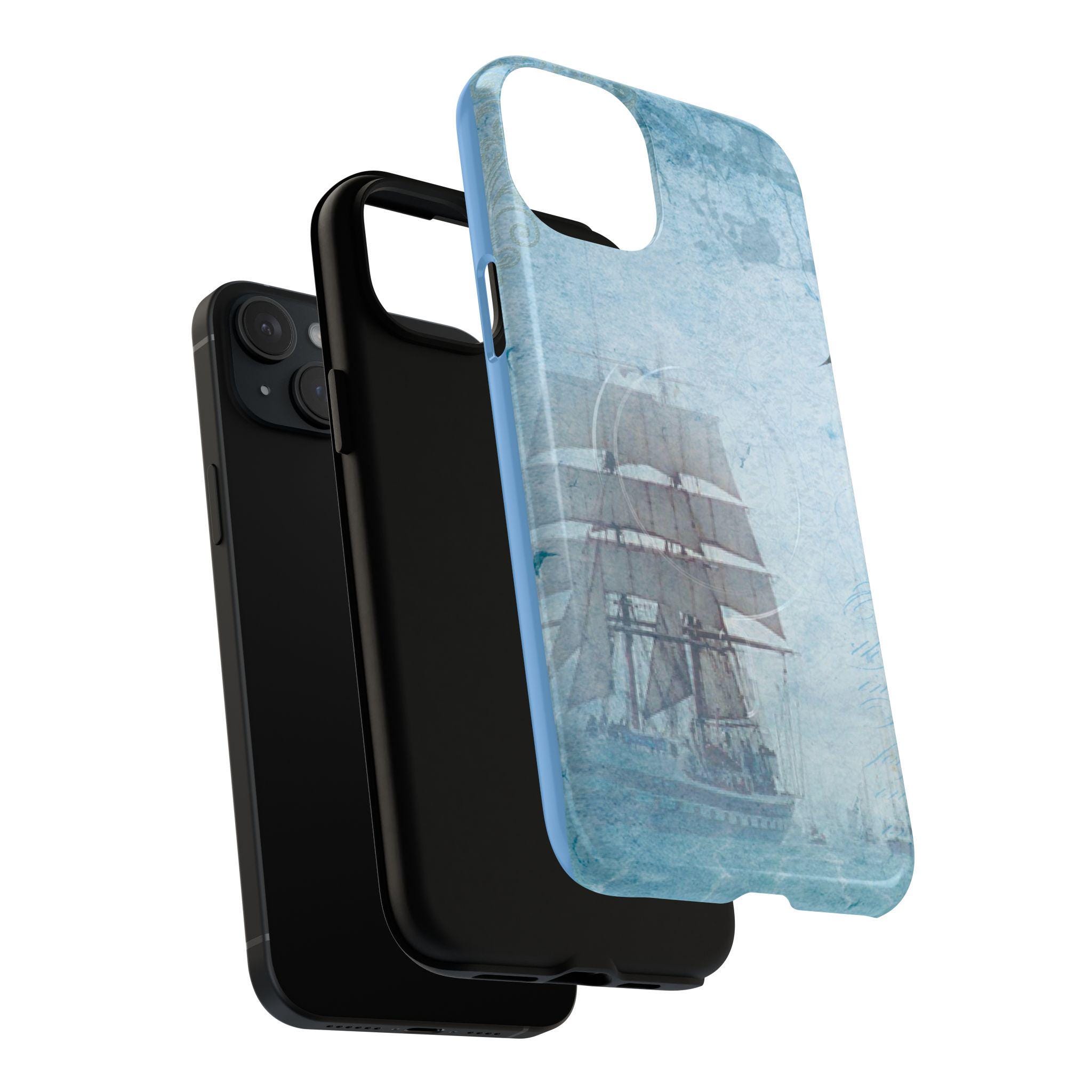 A slim, protective phone case that carries a soft, seafaring mood. The full-wrap printed artwork blends sea-blue textures with a ghosted tall ship, giving your phone a vintage-mariner look without adding bulk. Inside, a premium TPU silicone liner cushions drops while the tough polycarbonate shell resists impacts and daily wear. MagSafe-compatible magnets sit neatly inside the dual-layer build for secure accessory pairing. Choose glossy for a luminous sheen or matte for a muted, worn-paper feel — both keep ports open and camera cutouts precise. This case slips into a commuter’s routine and into moments when you want your device to feel like a small piece of travel-worn nostalgia.