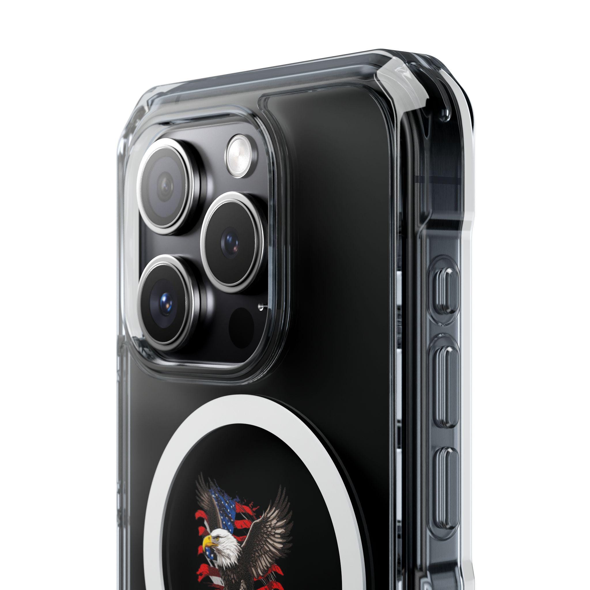 A slim, crystal-clear phone case that protects without hiding your style. The transparent polycarbonate back and TPU sides keep your phone looking fresh while the embedded MagSafe®-compatible magnet module snaps effortlessly to chargers and accessories. Air-cushioned bumper corners absorb shocks from everyday drops, and precise cutouts let you attach straps or charms. Vibrant printing keeps center artwork bright and detailed, framed by the subtle MagSafe ring for a modern, minimalist look.