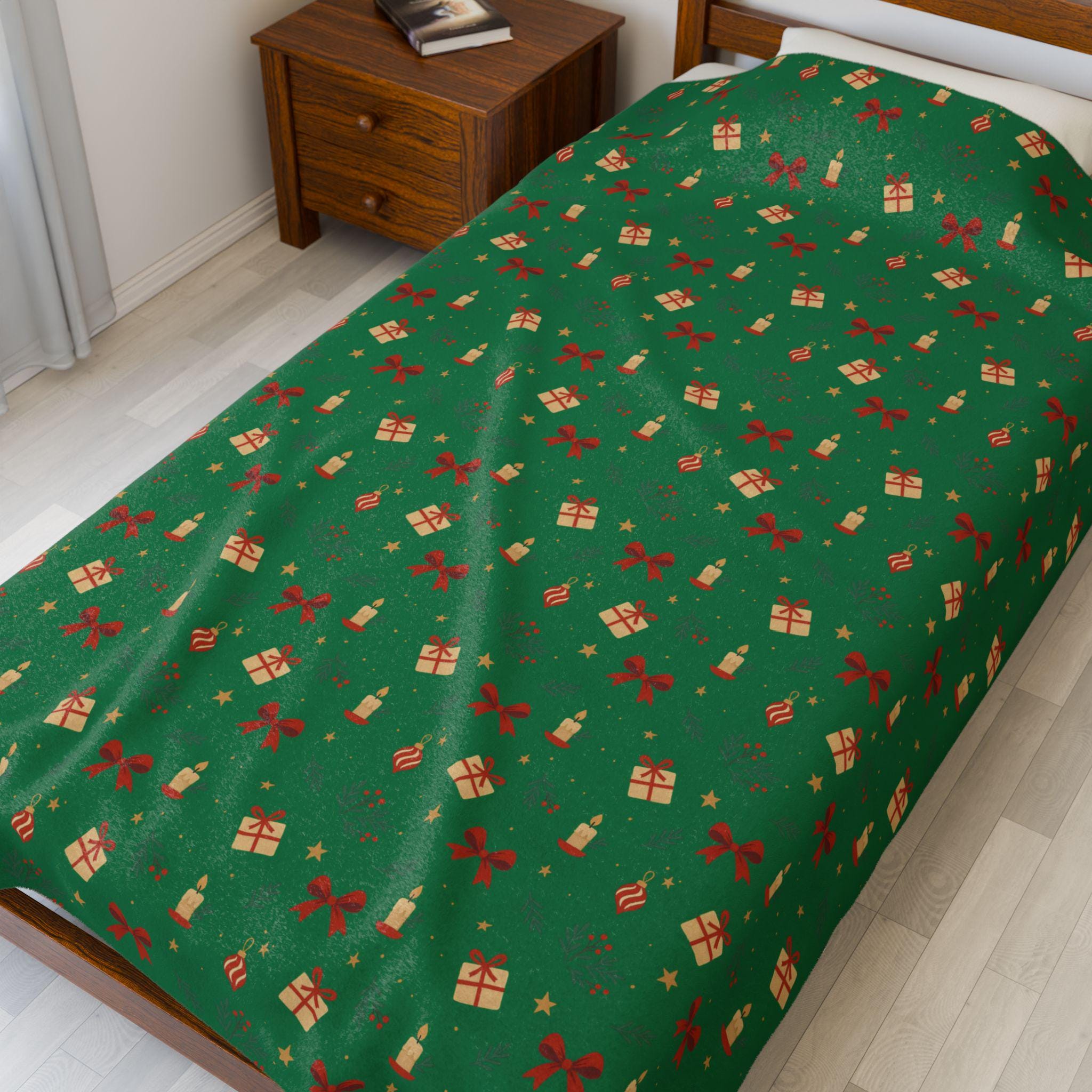 Soft, velvety warmth wrapped in a playful holiday pattern. This plush blanket lays like a quiet snowfall across your couch, offering gentle weight and a smooth touch that invites you to sink in. Tiny stockings, bows, and ornaments scatter across a deep green field — cheerful without shouting — perfect for slow evenings with hot cocoa, movie marathons, or curling up with a book by twinkling lights. It holds its color and finish through frequent use, and the single-sided high-detail print keeps the pattern vivid while the reverse stays luxuriously neutral. Reach for it when you want comfort that feels familiar, handcrafted in spirit and built to last.