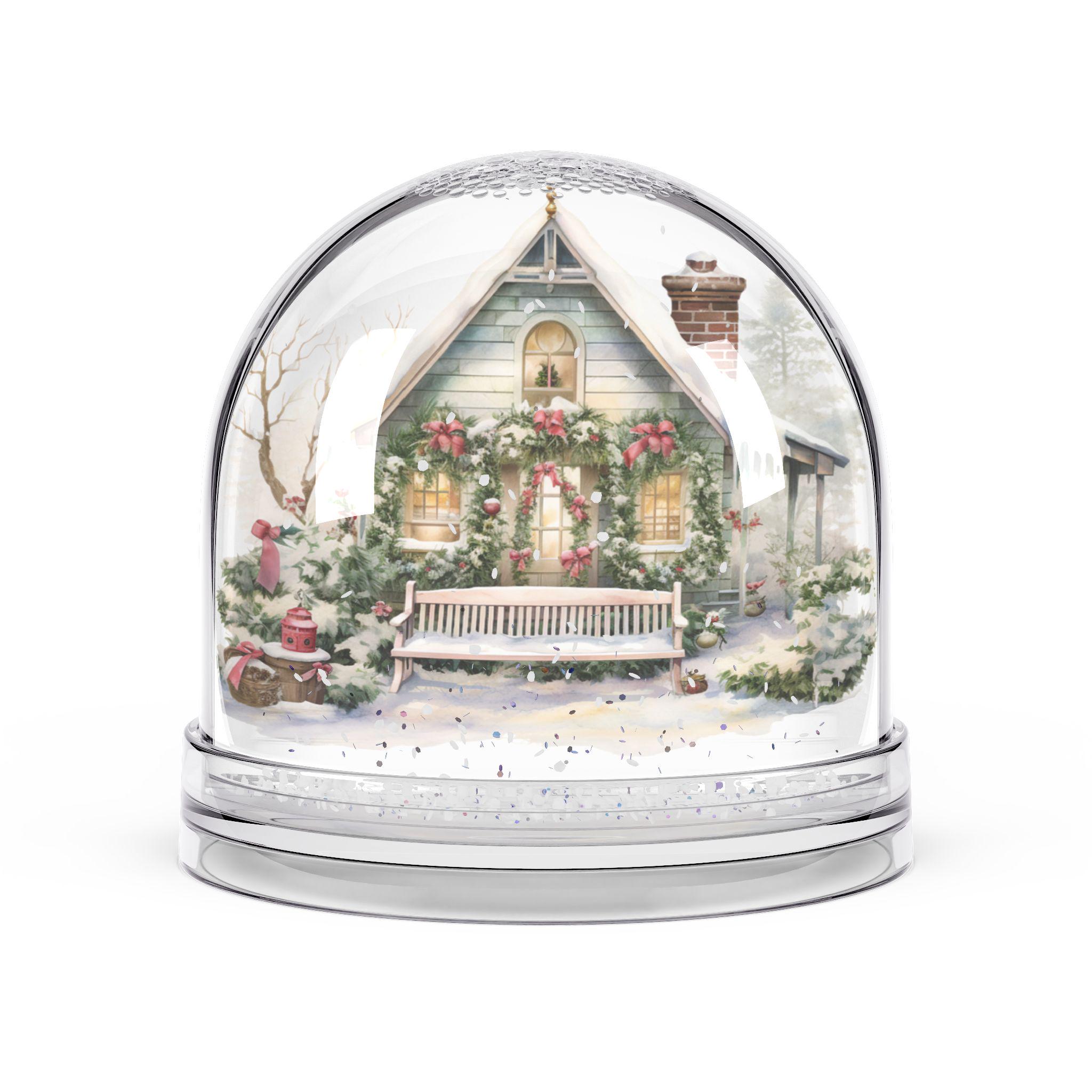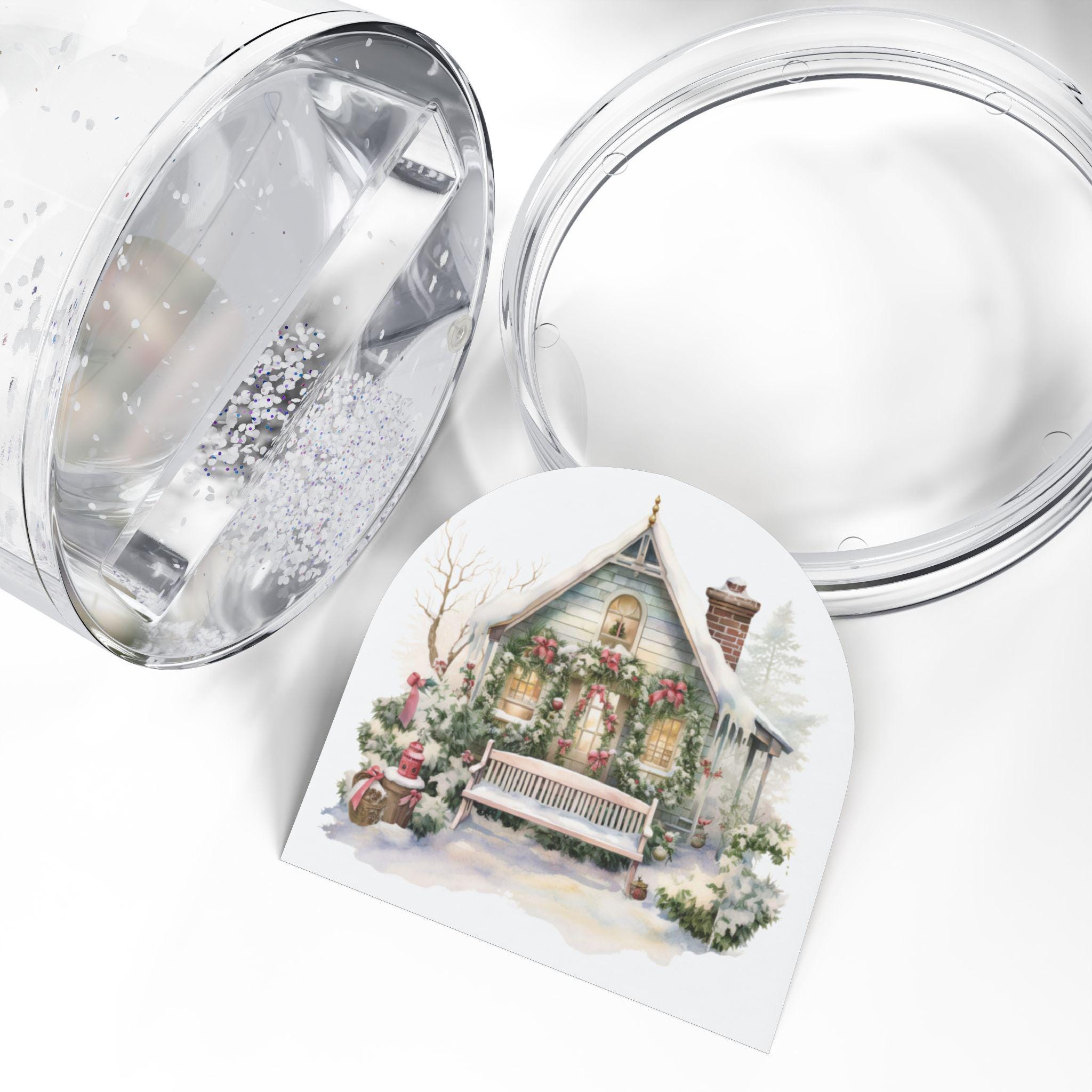 A cozy tabletop snow globe that brings a small winter scene to life. Inside a clear, durable plastic dome sits a two-sided acrylic frame printed with the same charming cottage illustration on both faces. Shake to watch fine acrylic glitter and PET snow drift around the scene, suspended in purified water for a gentle, lasting snowfall. The lightweight polystyrene base and globe make it easy to display on a shelf, mantel, or bedside table without the worry of fragile glass. It’s a quiet, tactile reminder of candlelit evenings, frosted porches, and slow winter mornings.