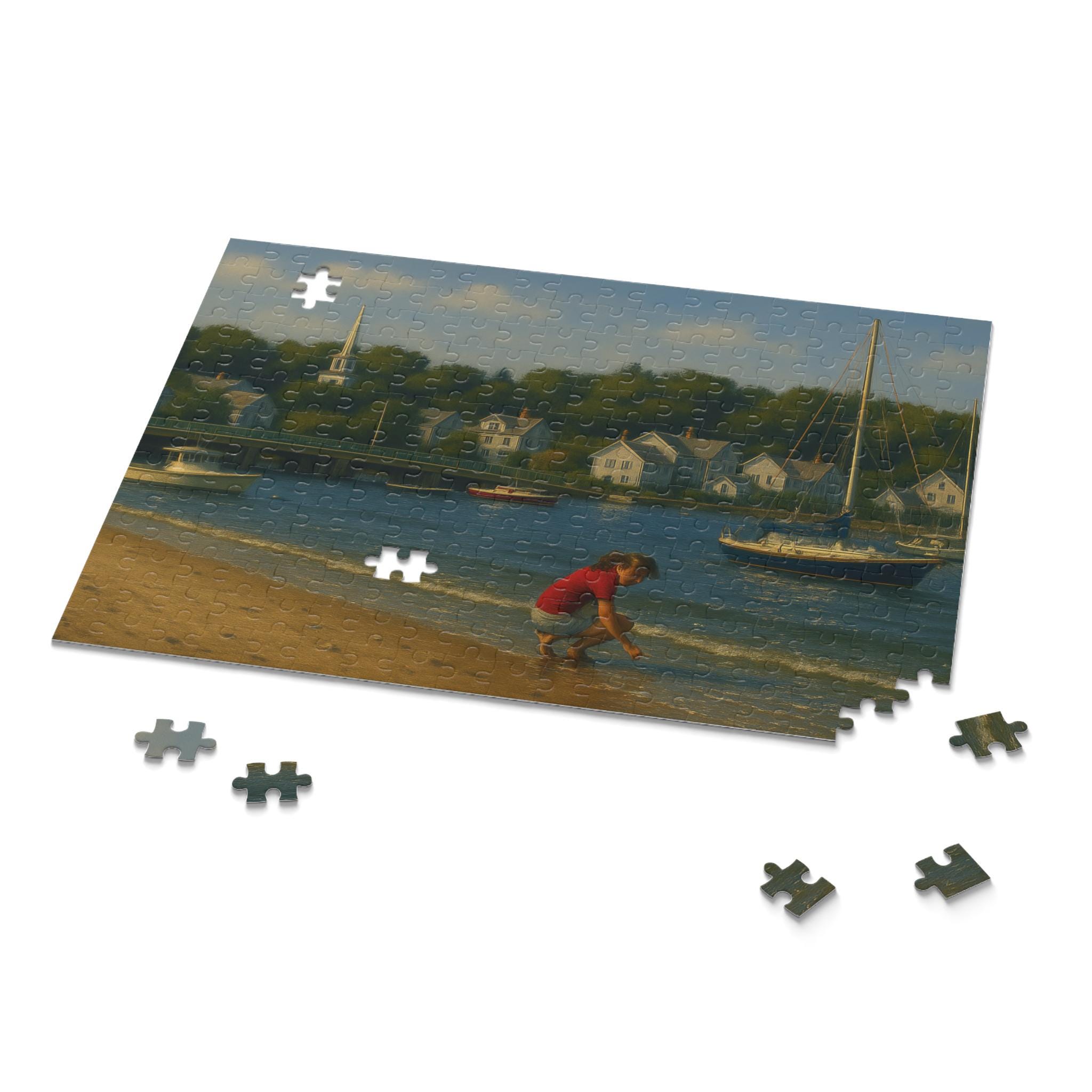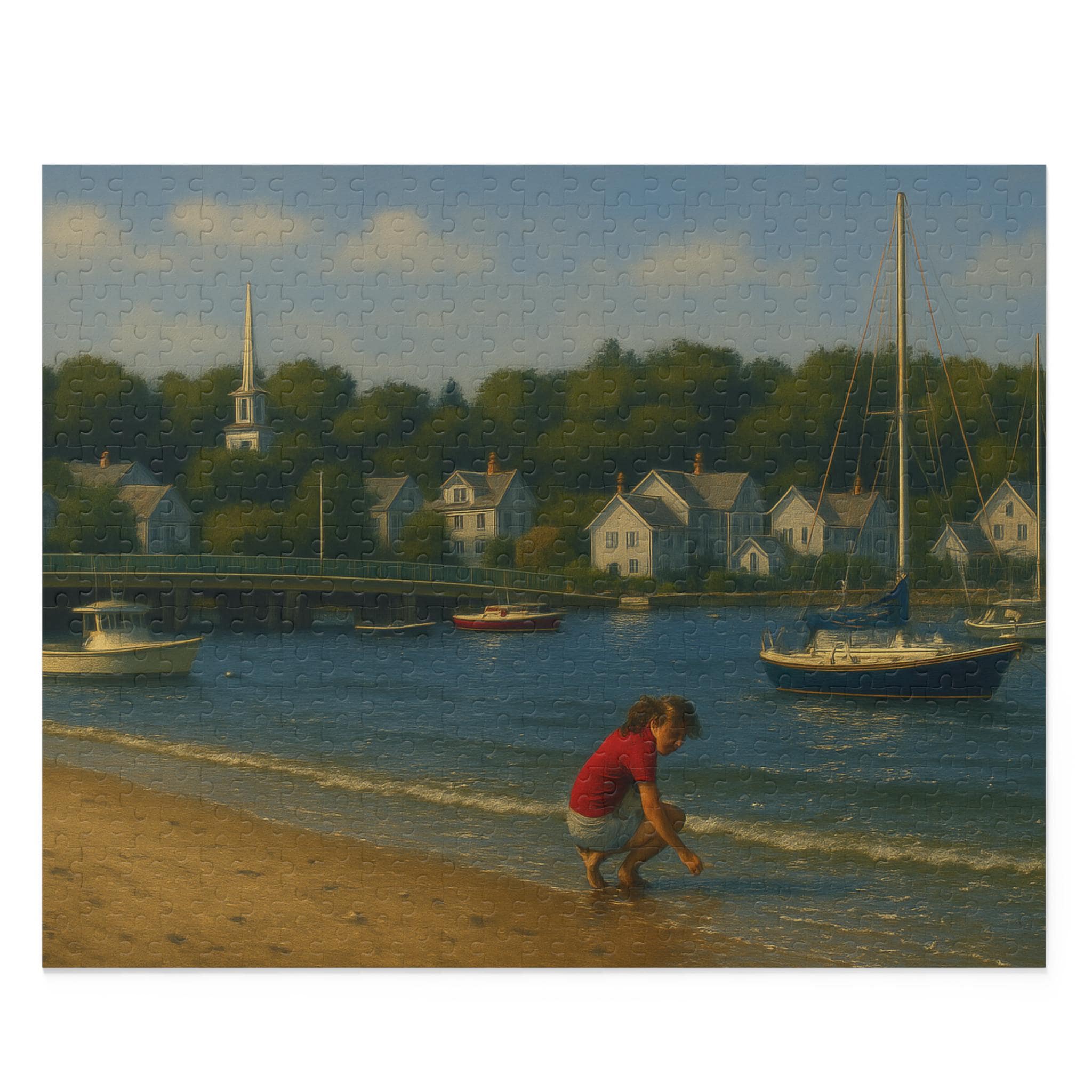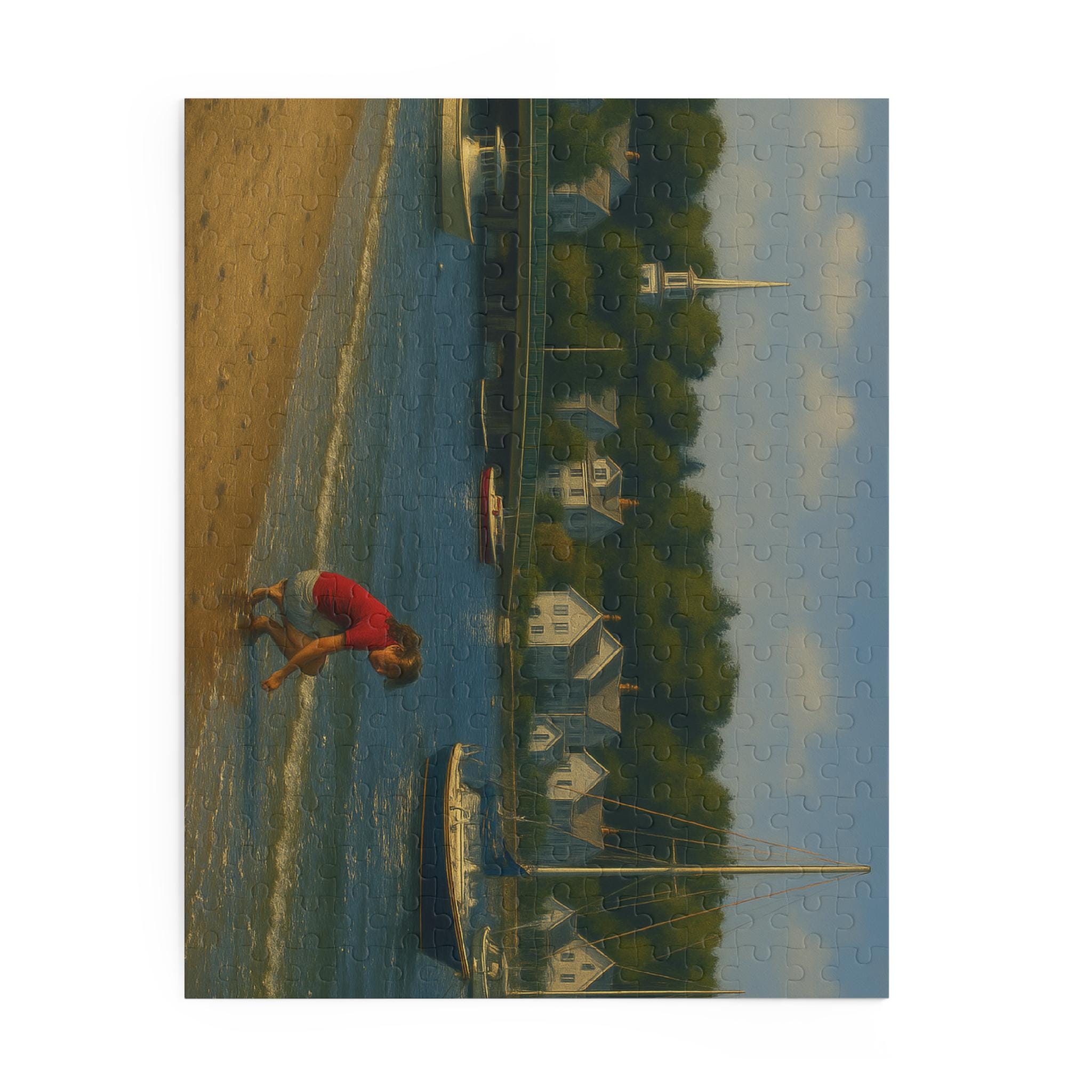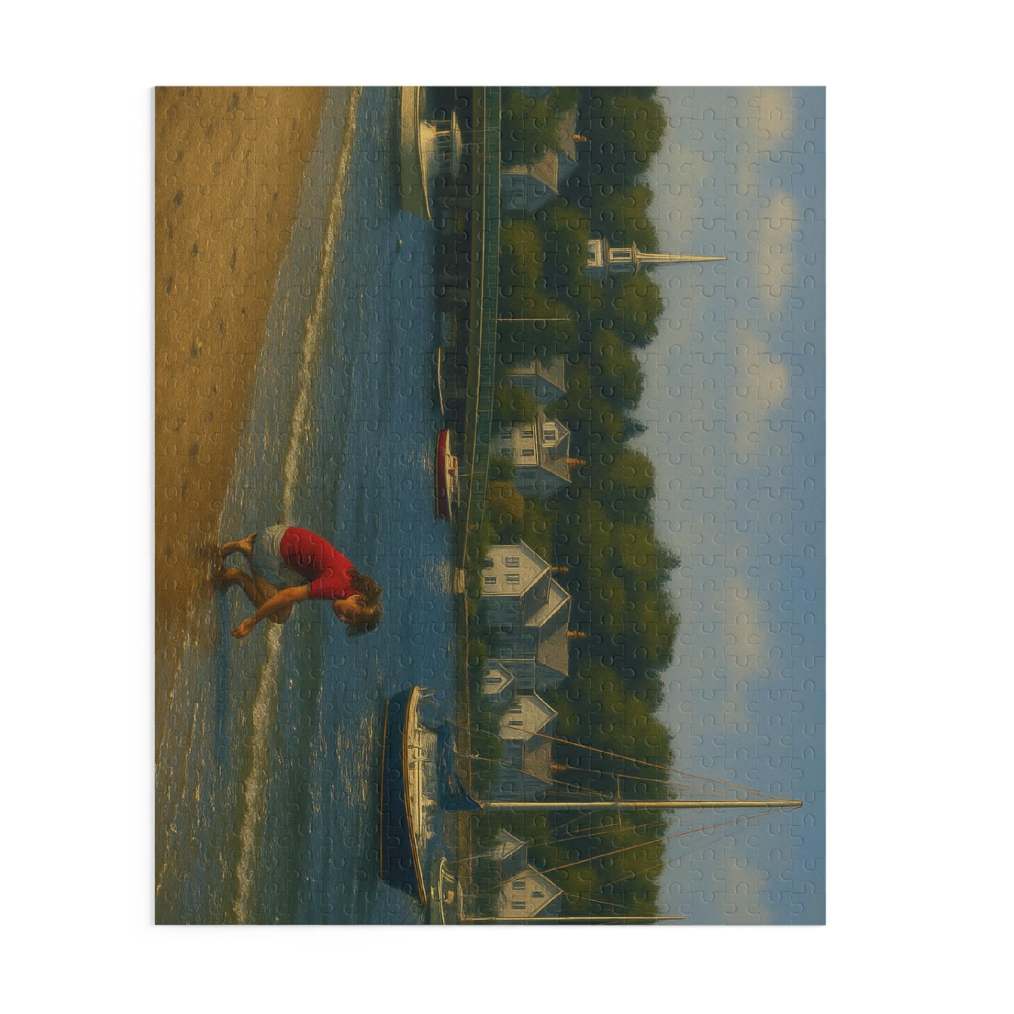 Find a quiet afternoon on the harbor with this coastal village puzzle. Gentle sails drift across sunlit water while clapboard cottages and weathered docks invite focused, slow play. Piece by piece you’ll bring the Shell Seeker and its harbor to life — the bright colors and glossy finish make every boat and bloom pop. It’s the kind of scene that settles restless hands and rewards steady attention: spread the pieces on a table, cue a seaside playlist, and lose yourself in the rhythm of assembly. For anyone who loves boats, shoreline details, or calm creative time, this puzzle becomes the centerpiece of a cozy afternoon or a low-key celebration of summer by the water.