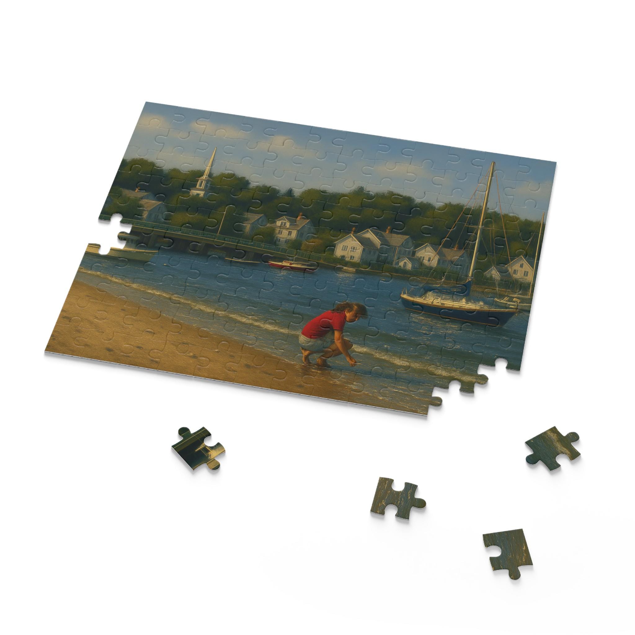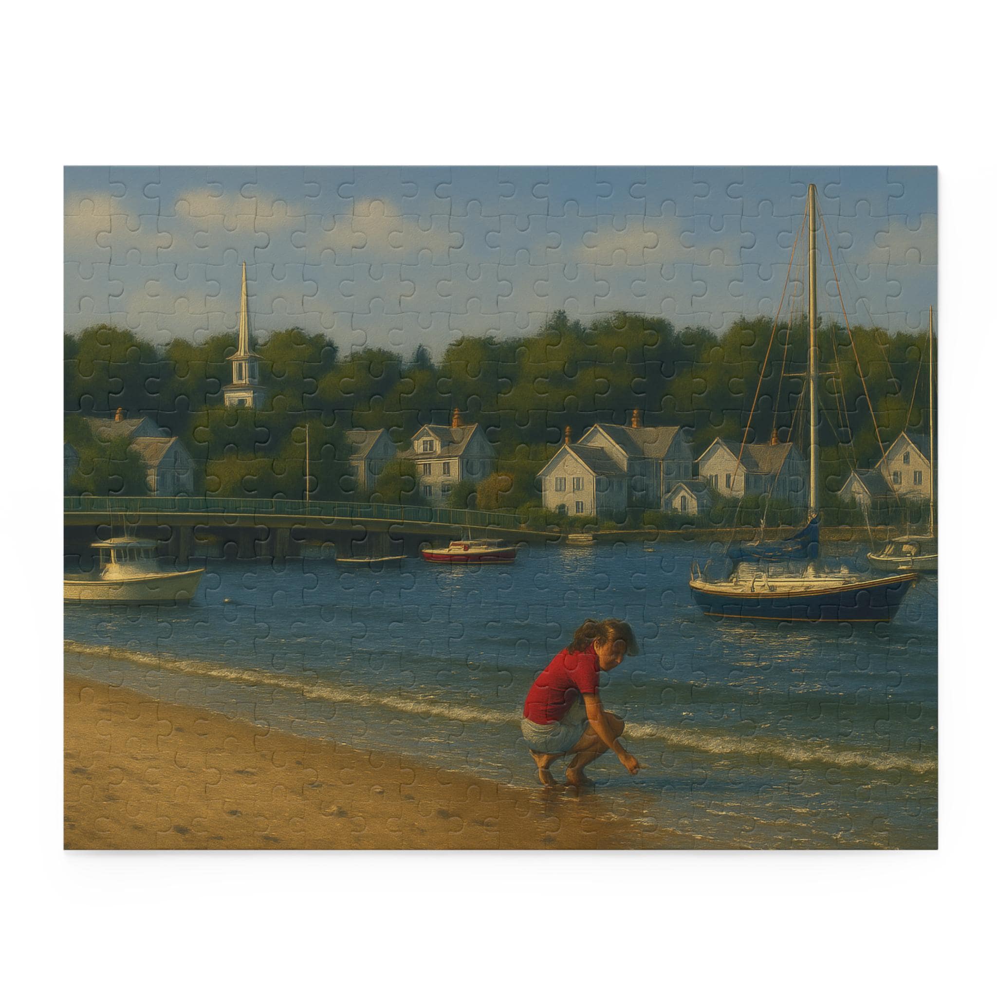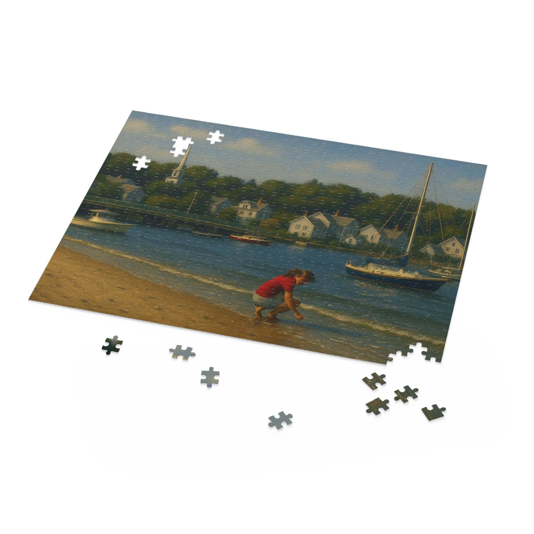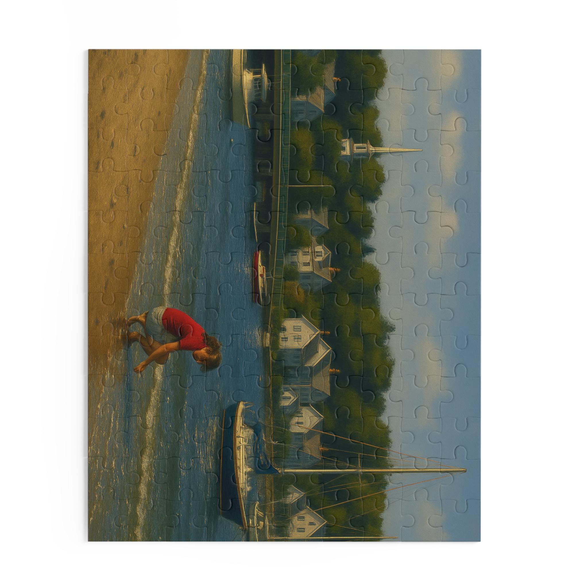 Find a quiet afternoon on the harbor with this coastal village puzzle. Gentle sails drift across sunlit water while clapboard cottages and weathered docks invite focused, slow play. Piece by piece you’ll bring the Shell Seeker and its harbor to life — the bright colors and glossy finish make every boat and bloom pop. It’s the kind of scene that settles restless hands and rewards steady attention: spread the pieces on a table, cue a seaside playlist, and lose yourself in the rhythm of assembly. For anyone who loves boats, shoreline details, or calm creative time, this puzzle becomes the centerpiece of a cozy afternoon or a low-key celebration of summer by the water.