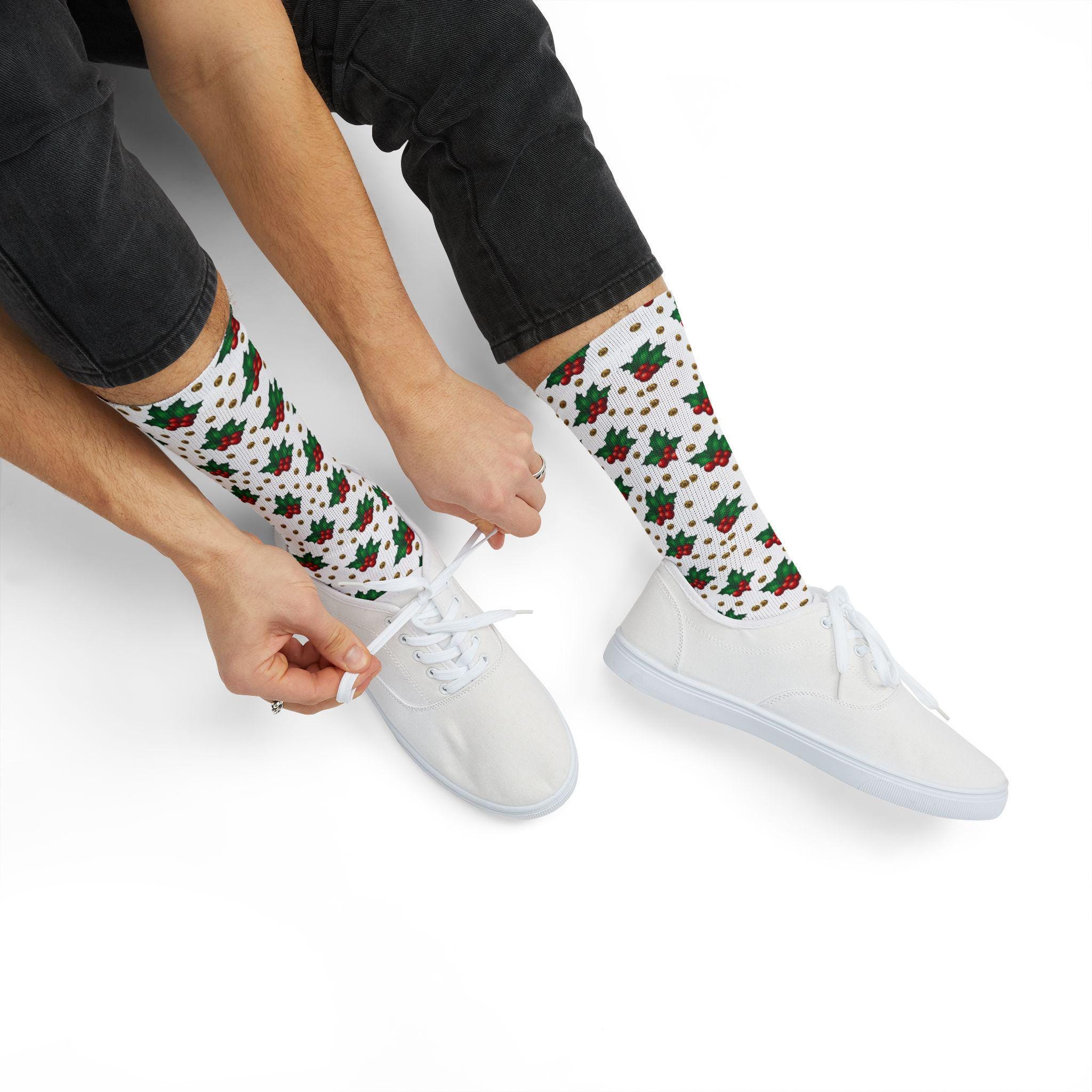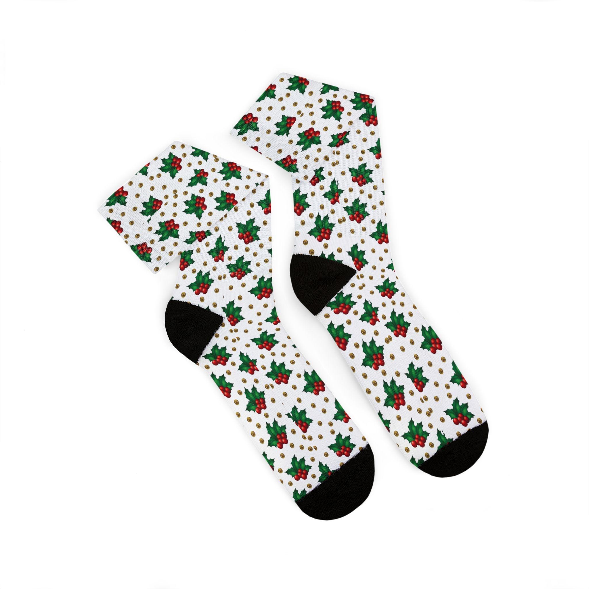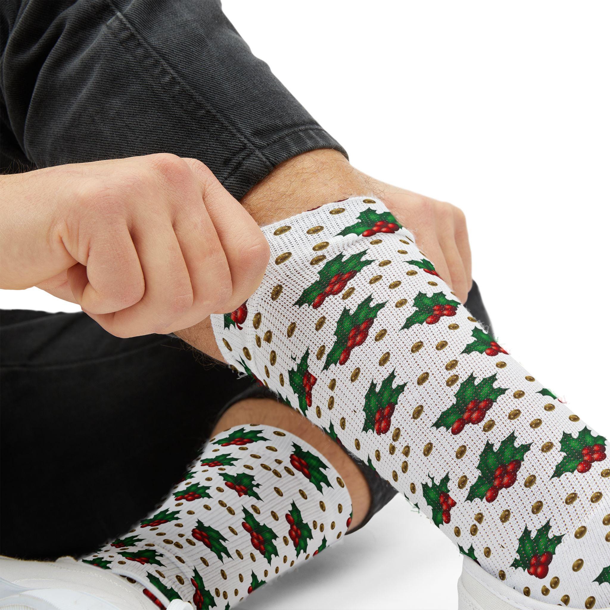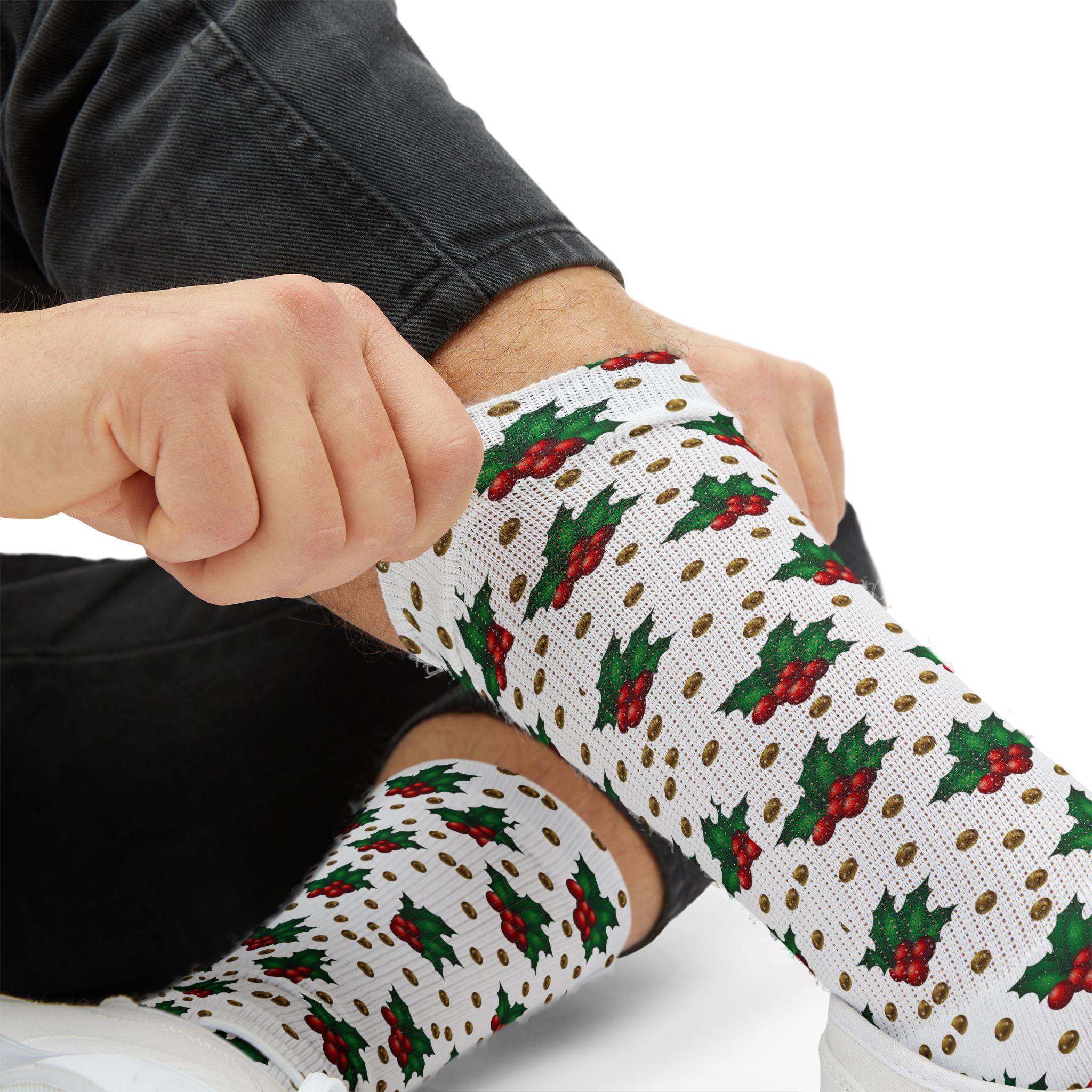 These retro geometric Christmas holly berry socks bring cozy holiday cheer to your rotations. The bold all-over print wraps vintage-inspired shapes and festive berry motifs around a cushioned, fleece-lined interior that warms cold mornings and late-night cookie runs. Crew length keeps ankles and calves covered under boots or pajamas; the ribbed tube and unisex regular fit hold the socks in place without pinching. Wear them while trimming a tree, sipping cocoa by string lights, or lounging through a holiday movie marathon — they add color, comfort, and a playful nostalgic note to seasonal routines.