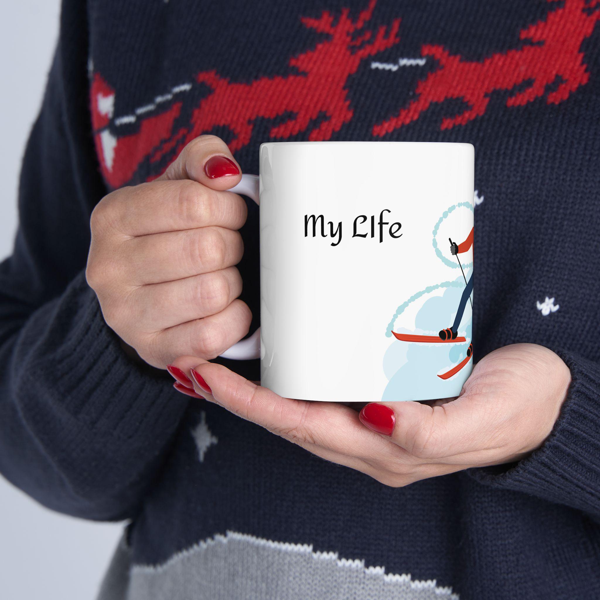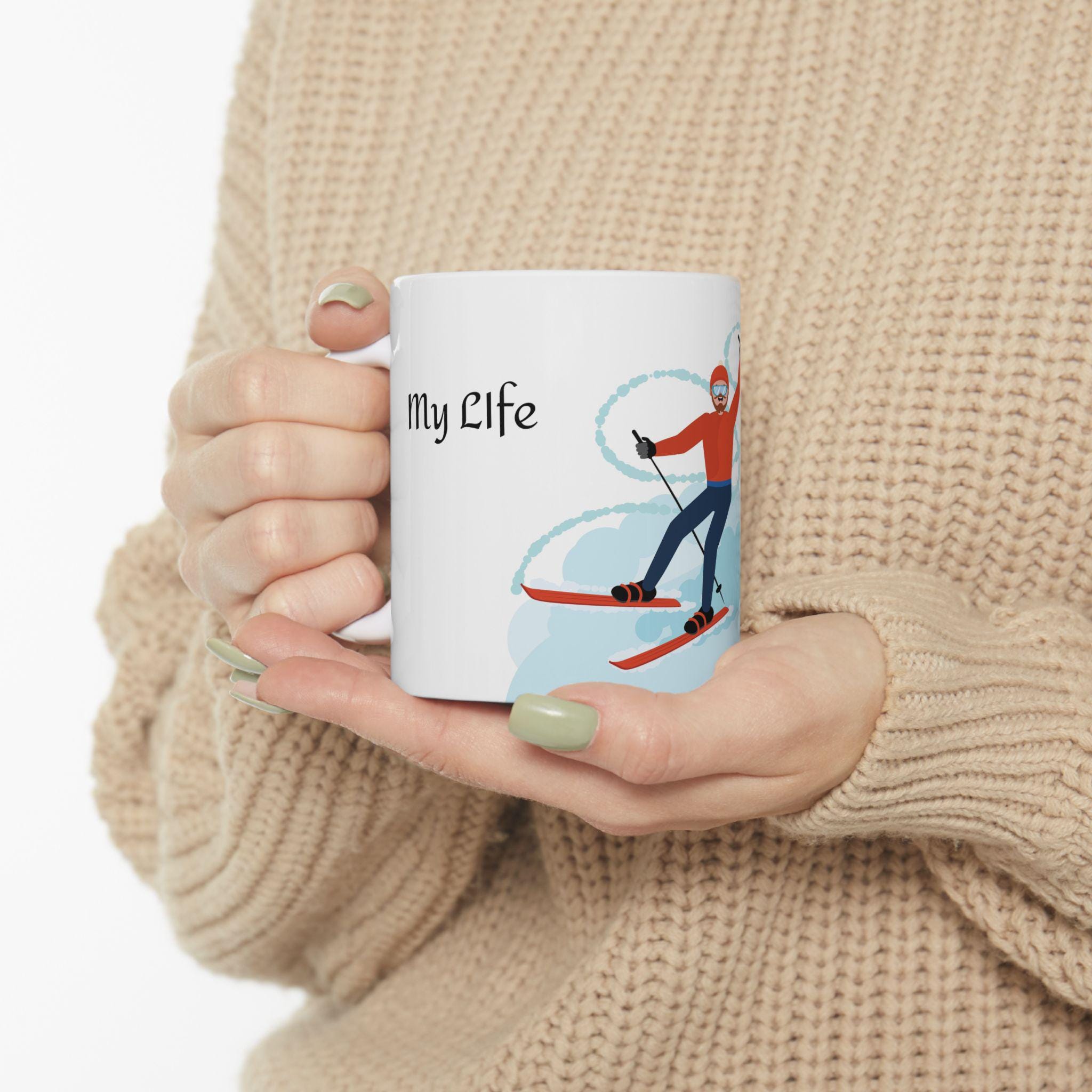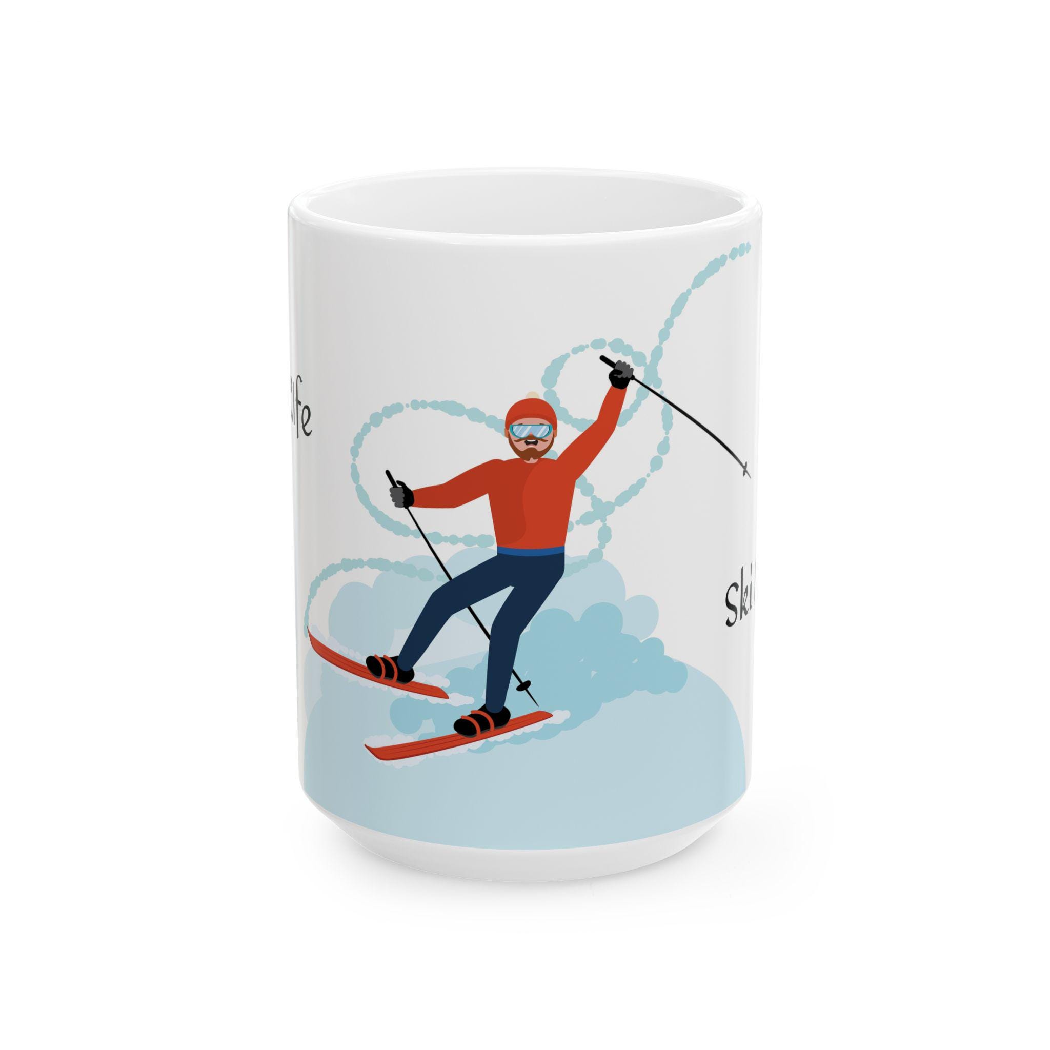 This ceramic mug is for people who live for powder days and long chairlift conversations. The bold ski-themed artwork—bright, crisp, and glossy—catches light like fresh snow. It feels sturdy in your hands thanks to the comfortable C-handle and durable white ceramic body, and the shiny finish makes the design pop whether you’re slurping morning coffee before a first chair or sipping cocoa by the heater after a day on the slopes. Microwave- and dishwasher-safe, it stands up to daily use without dulling, and the lead- and BPA-free construction lets you drink without worry. Choose 11oz for a concentrated morning hit or 15oz when you want an extra pour for cold mornings on the mountain.