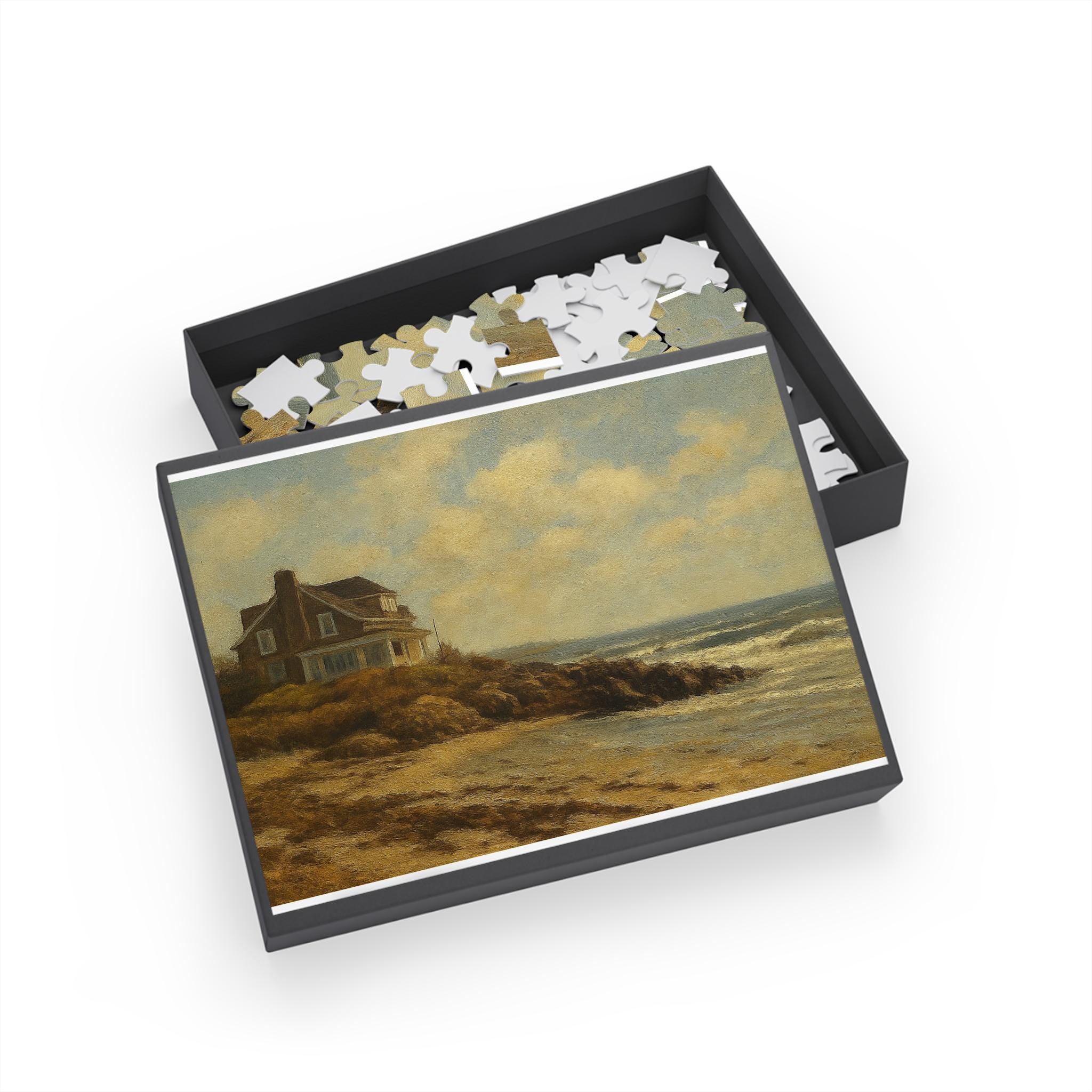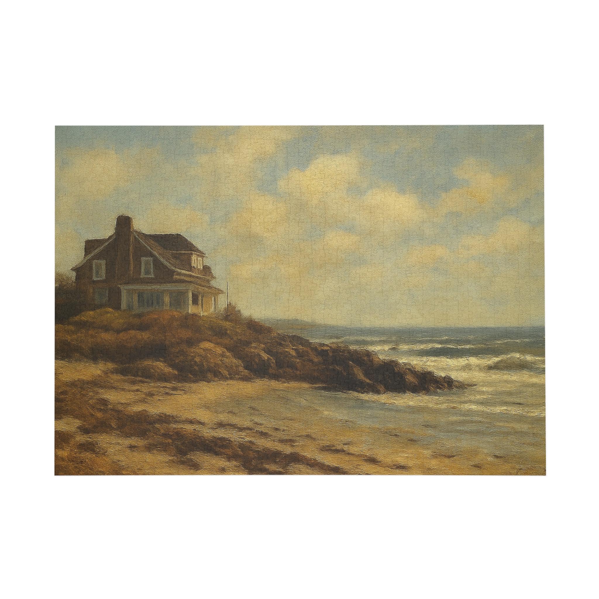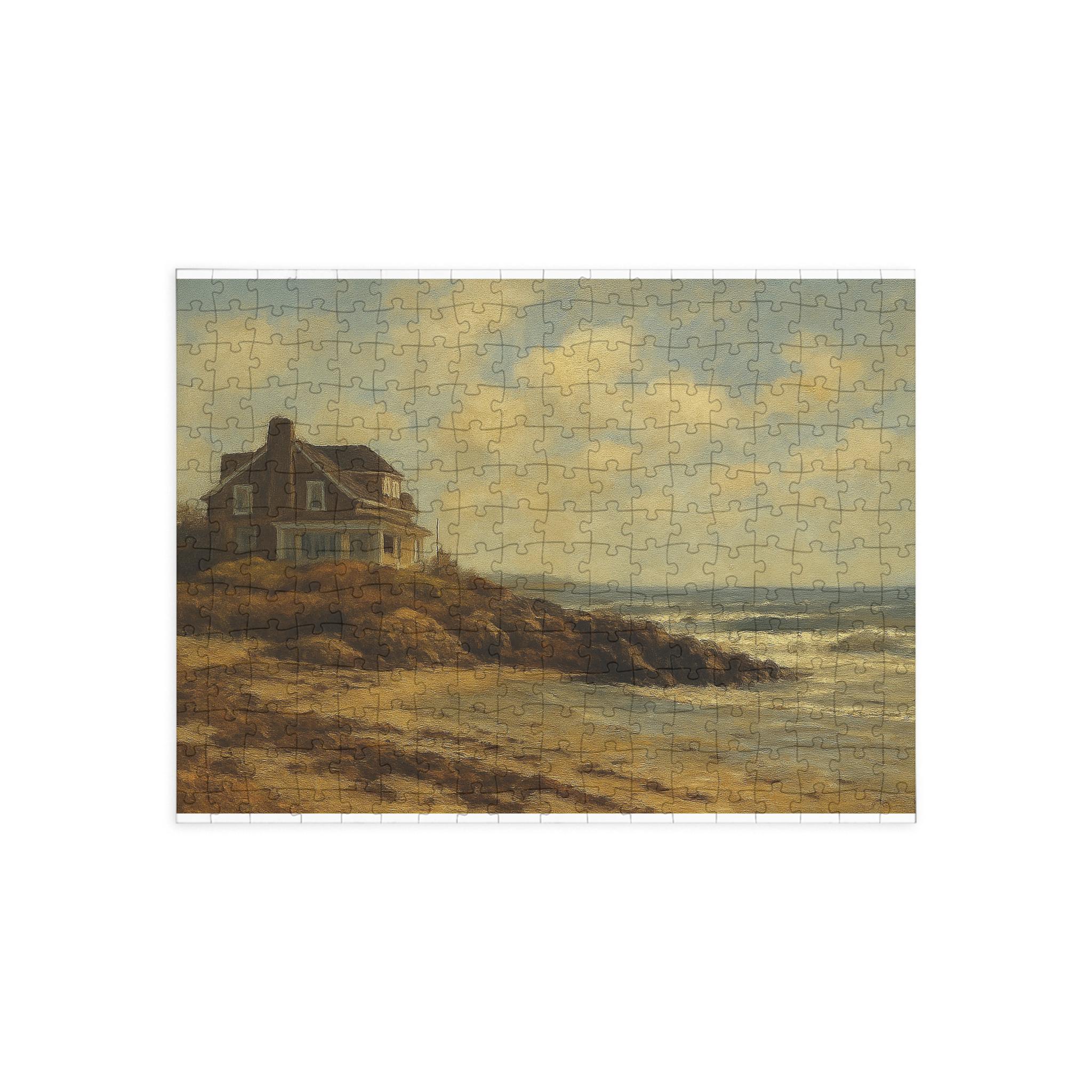 Settle into a quiet afternoon with this coastal cottage scene from Lords Point Mothers Beach, Kennebunk, Maine. Each piece reveals a sun-washed clapboard house, weathered boardwalks, and the subtle shimmer of the Atlantic. The slow, satisfying rhythm of fitting the shoreline together brings back salt air, gull calls, and the gentle sway of summer light. Lay it out on a table, pour a mug of something warm, and let the view grow until the whole seascape is there — calm, familiar, and true to place. This puzzle belongs with people who love shoreline memories, summer cottages, and the small, specific comforts of coastal life. It resonates during long weekends, rainy afternoons at the beach house, or when you want to revisit a beloved Maine stretch from anywhere in the world.
