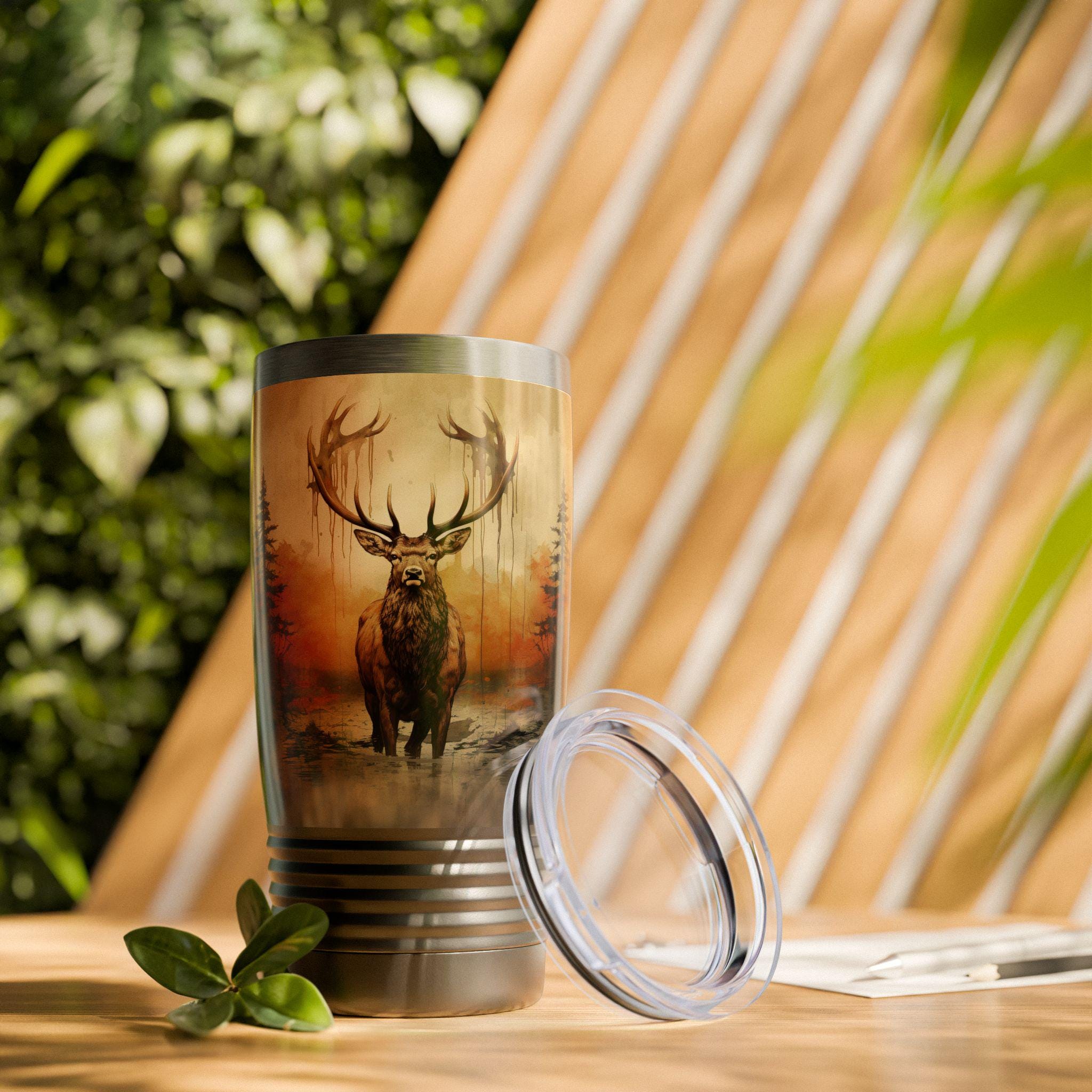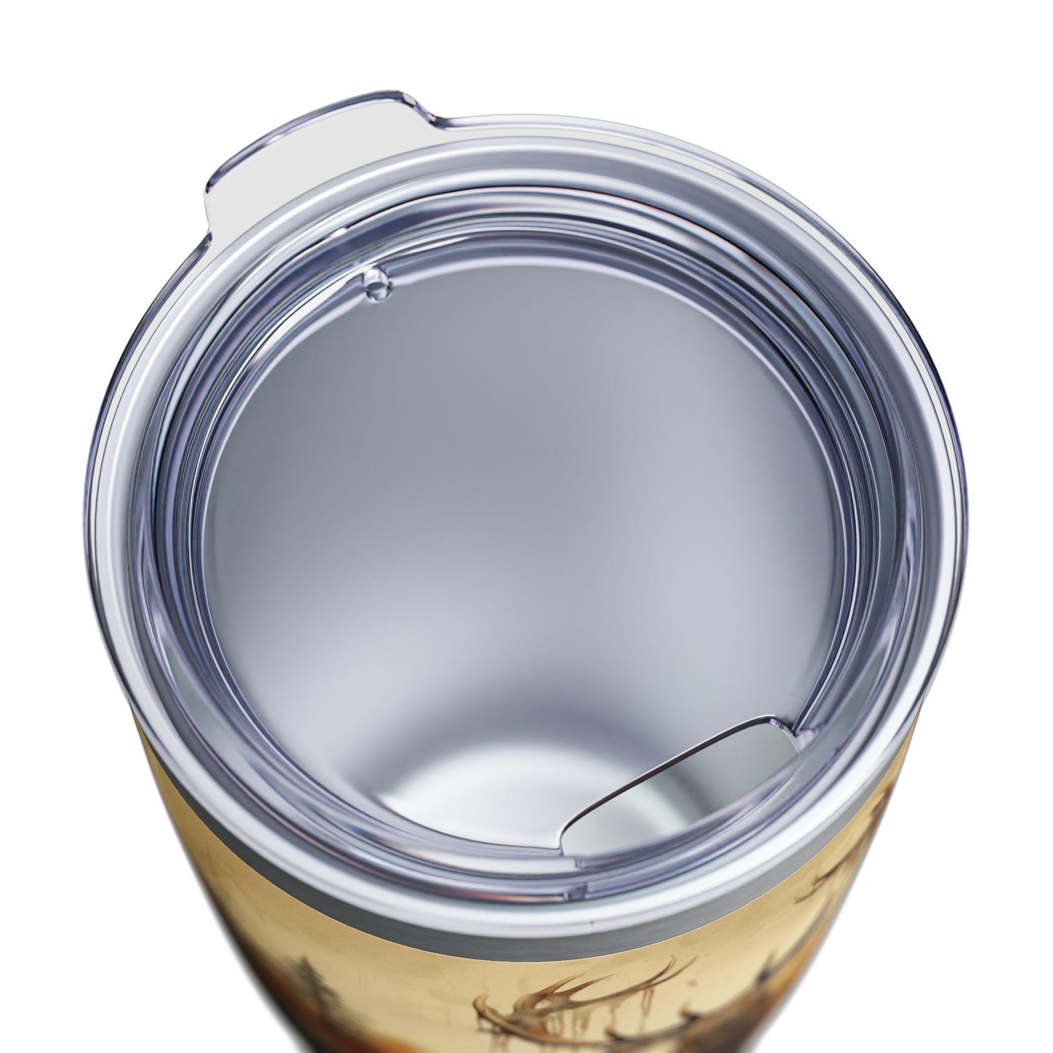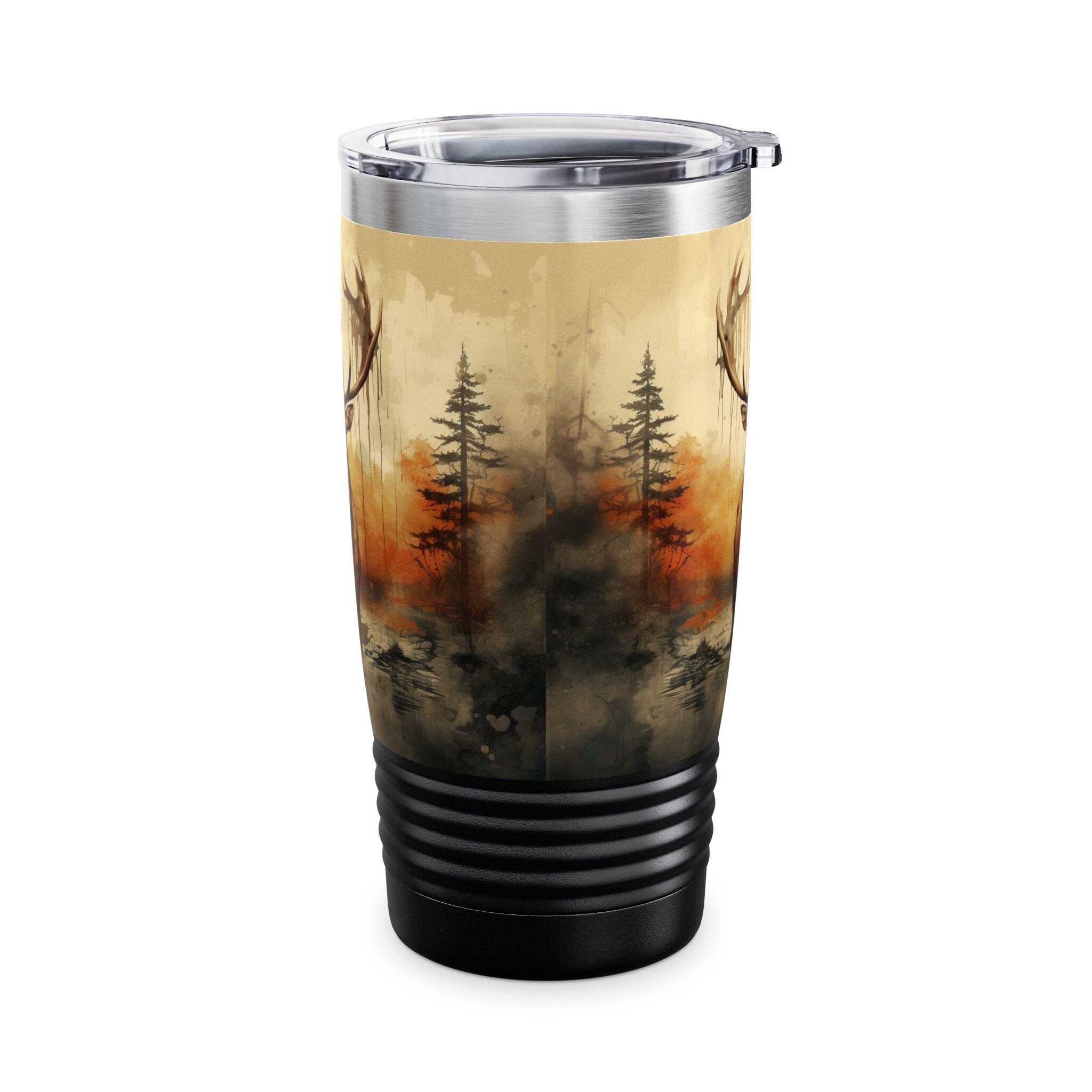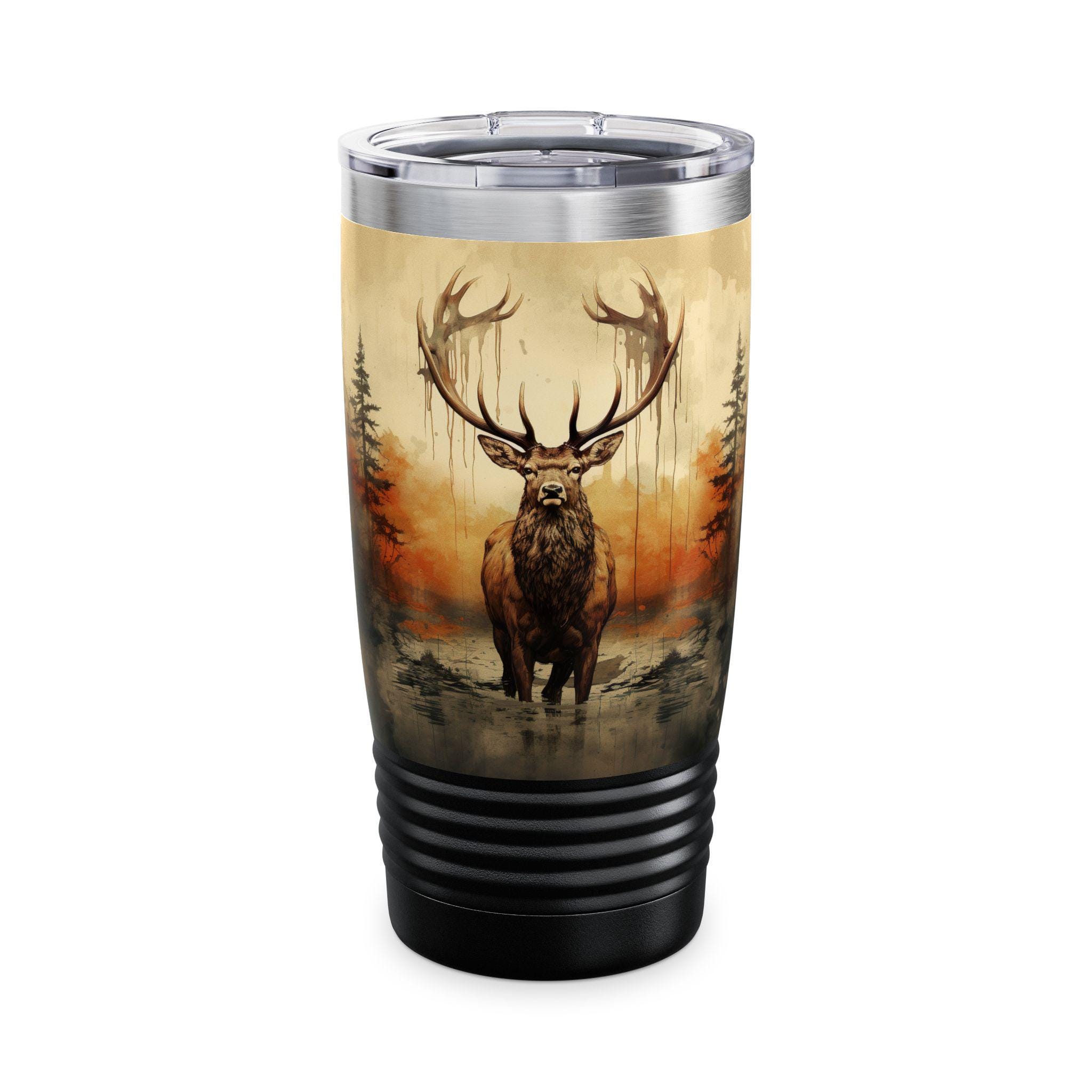 This 20oz ringneck tumbler brings the quiet thrill of a forest dawn into every sip. A majestic stag rises across the glossy print, antlers reaching like ridge lines at first light. It’s built for hands that hike: the ribbed base keeps the tumbler steady on rough surfaces, the narrow mouth and clear push-on lid make sipping simple on the trail, and the double-wall stainless steel holds coffee hot through a long camp setup or keeps water icy on a midday stalk. Bright, durable prints hold the wilderness scene true, so your gear looks lived-in rather than worn out. Choose from three colorways to match your pack or camp mug collection. Note: hand wash recommended to keep the varnished artwork vivid.