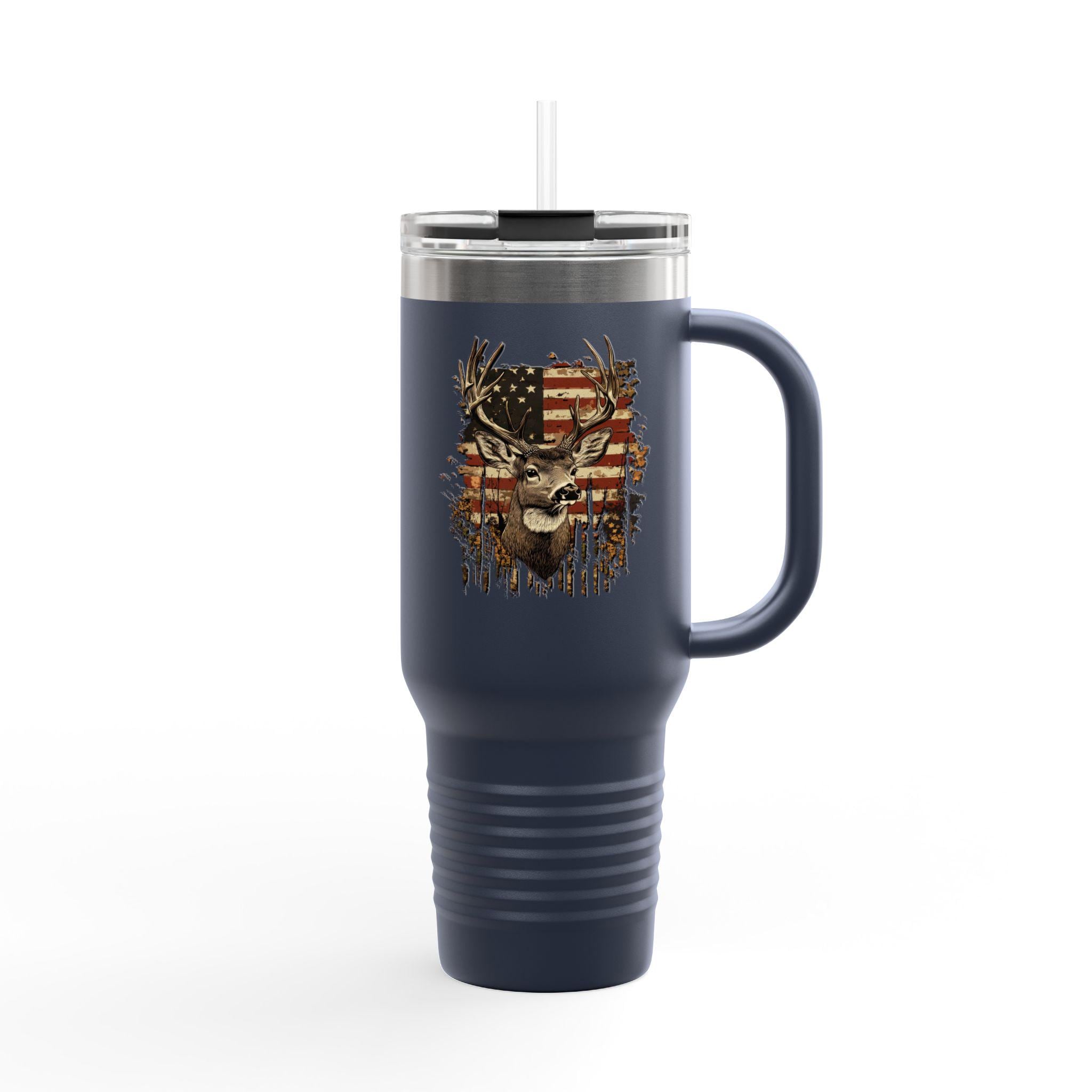This 40oz insulated travel mug brings rugged outdoor spirit to your daily routine. Crafted from durable stainless steel with a powder-coated finish, it holds large servings of coffee, iced tea, or infused water and keeps temperatures steady for hours. The ergonomic handle and included straw make long drives, work days, and trail breaks easy to manage, while the secure leak-resistant lid locks in spills. A bold DTF-printed graphic adds personality without sacrificing performance — built for people who move between the cabin, campsite, and commute and want their drinkware to work as hard as they do.
