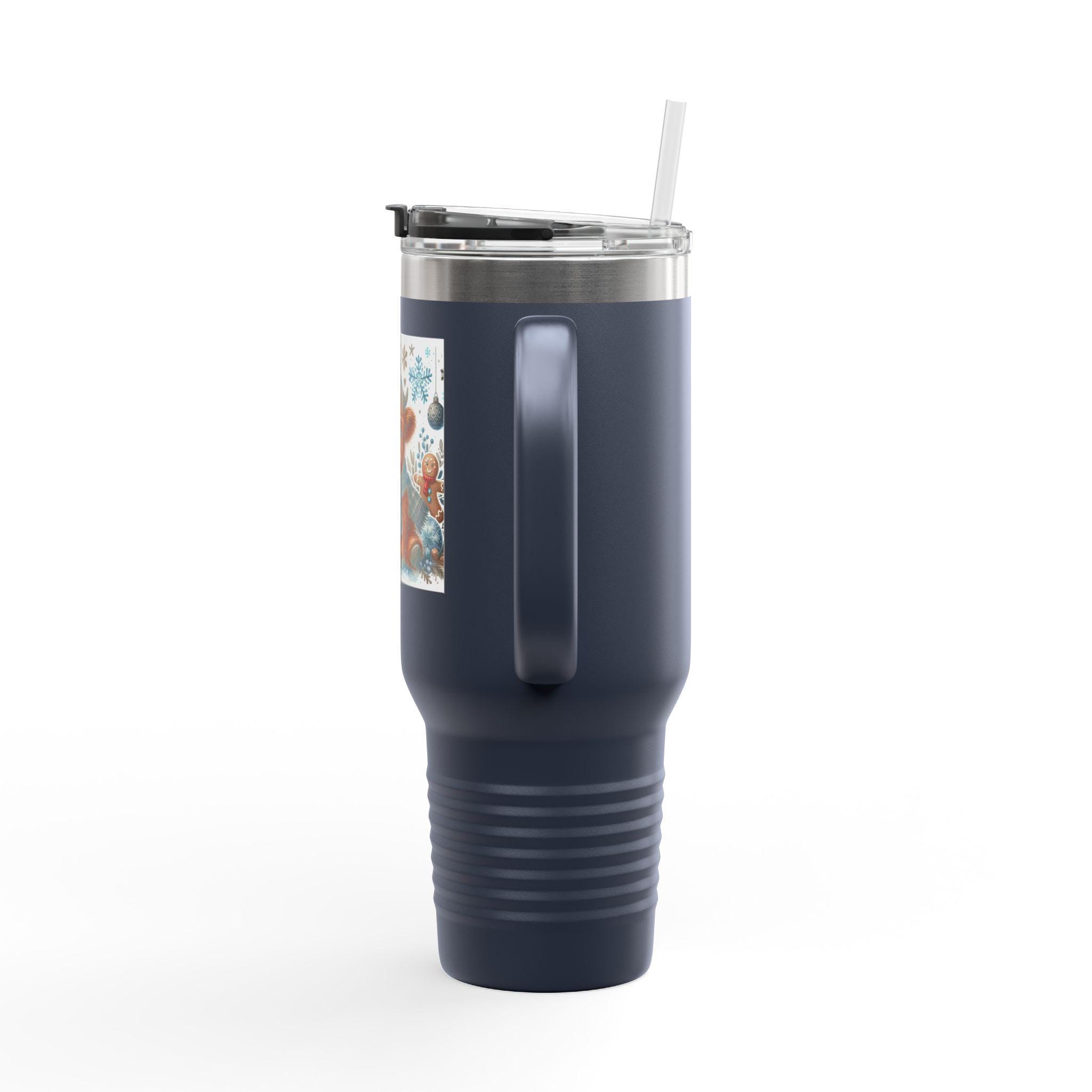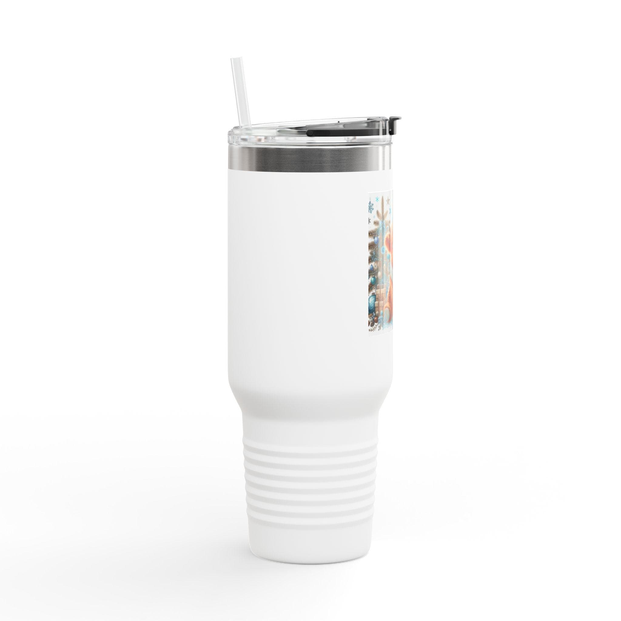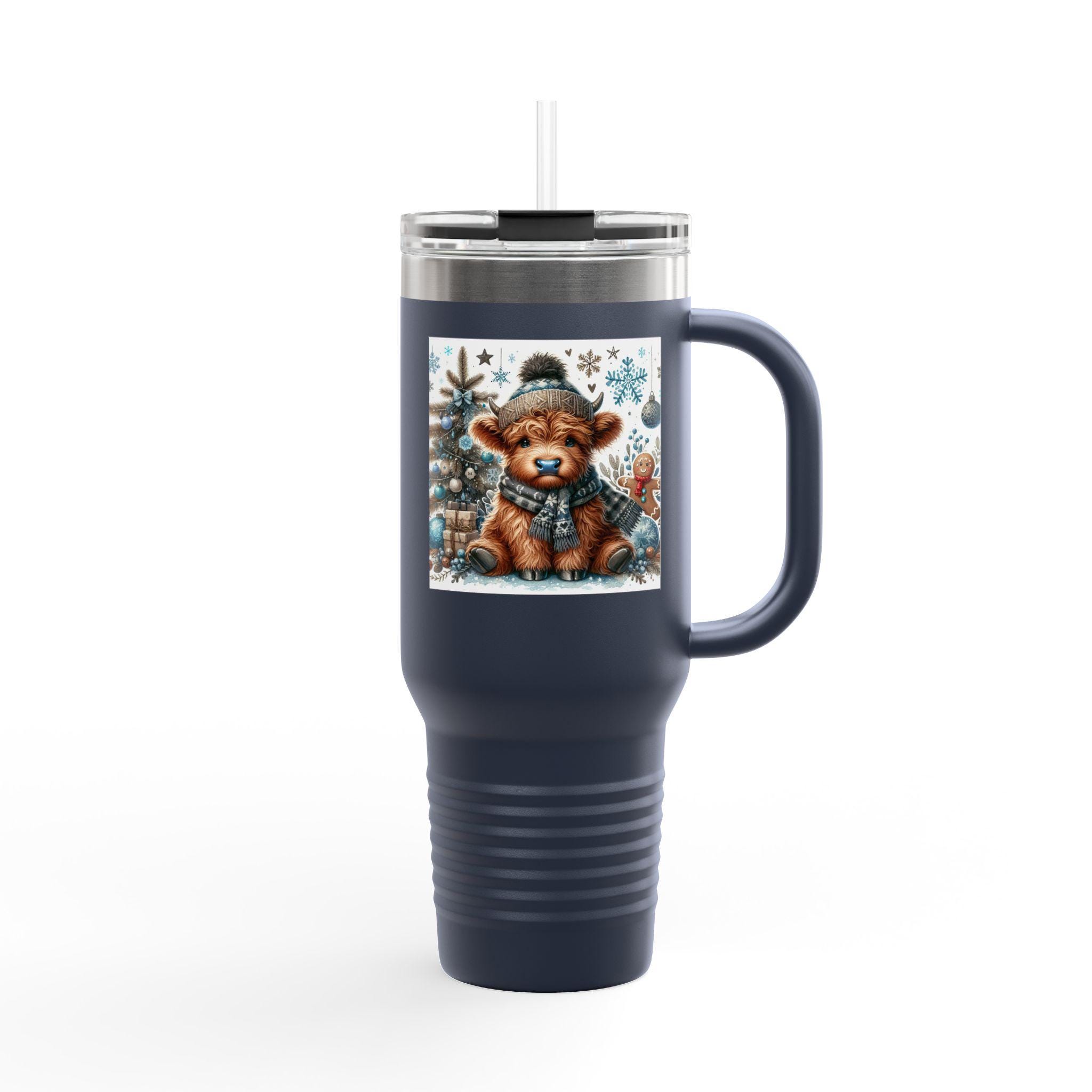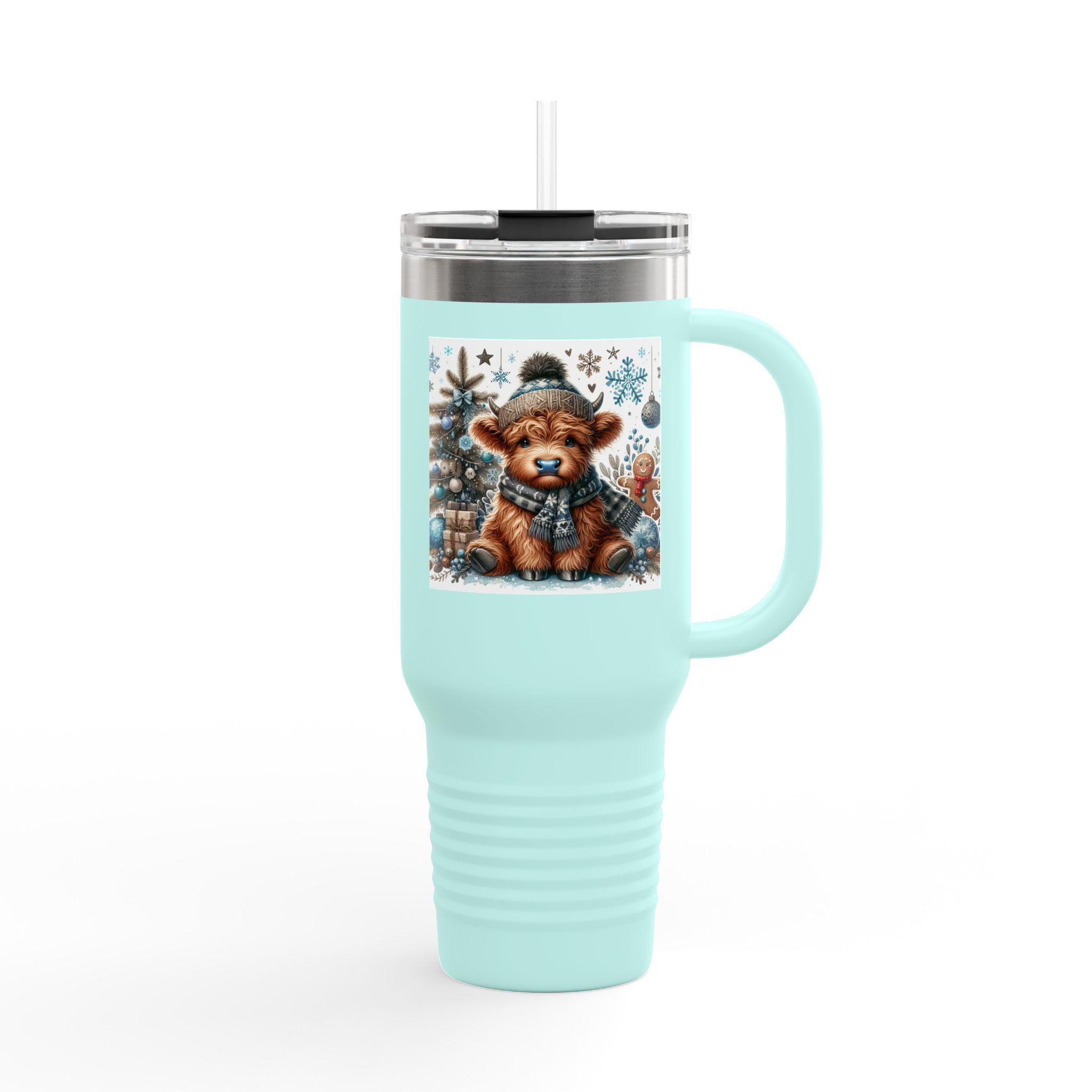 This 40oz insulated travel mug brings cozy charm to long drives, chilly hikes, and busy mornings. The powder-coated stainless steel body holds a generous amount so you can carry a full thermos of coffee, tea, or a cold refresher, while double-wall insulation preserves the temperature for hours. An ergonomic handle and leak-resistant lid with included straw make sipping on the move comfortable and spill-safe. The printed seasonal artwork adds a warm, whimsical touch—think soft mittens, frosty pines, and a smiling bear tucked into a winter scene—so the mug feels like a little companion on cold-weather outings. Lightweight enough to tote, rugged enough for the outdoors, and finished in a choice of colors, this tumbler lives in the cup holder, the campsite, and the desk mug drawer alike.