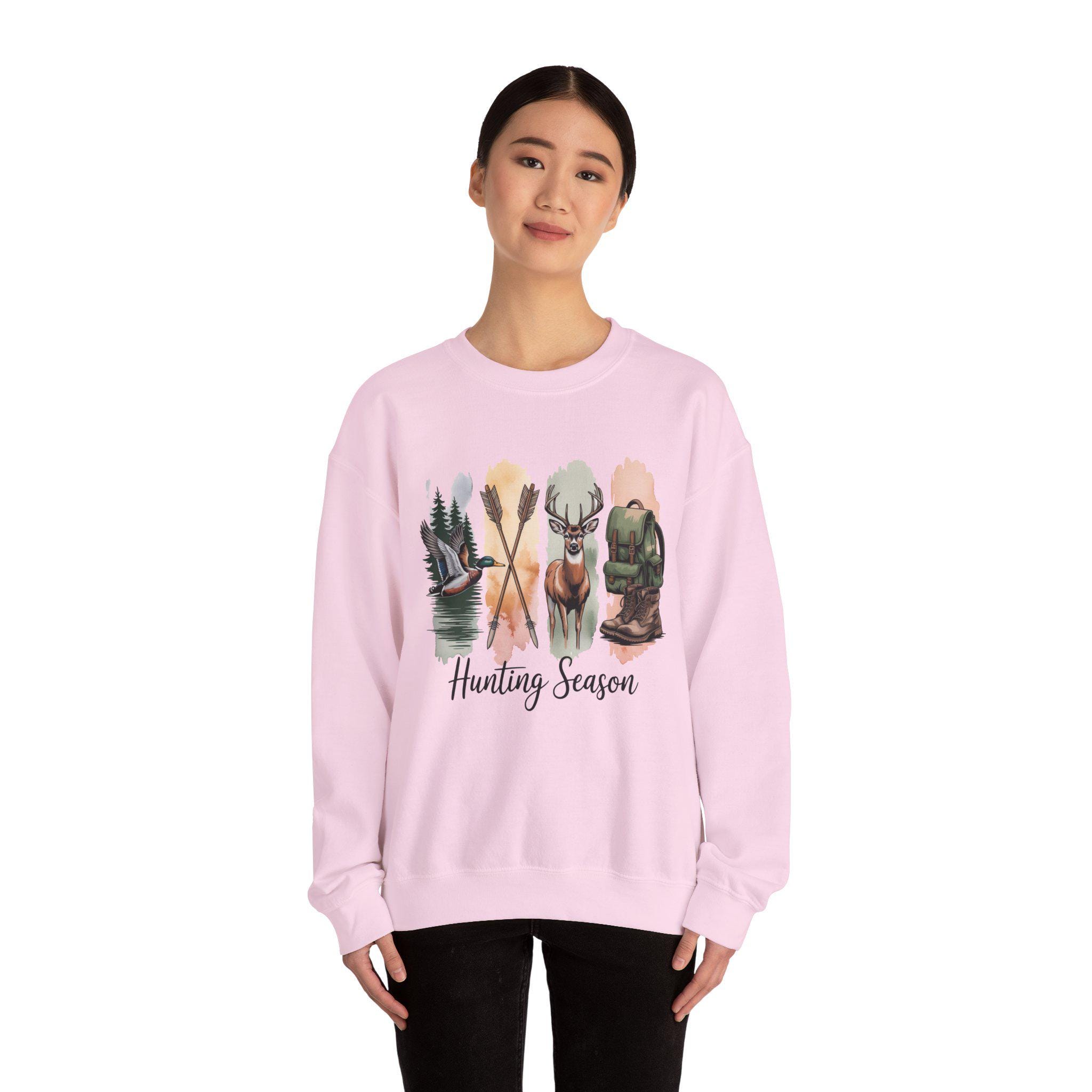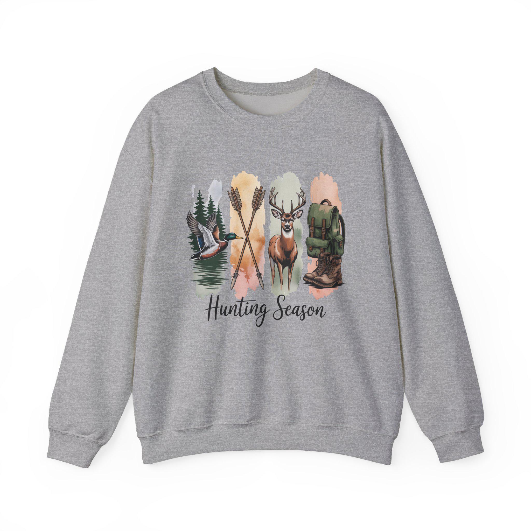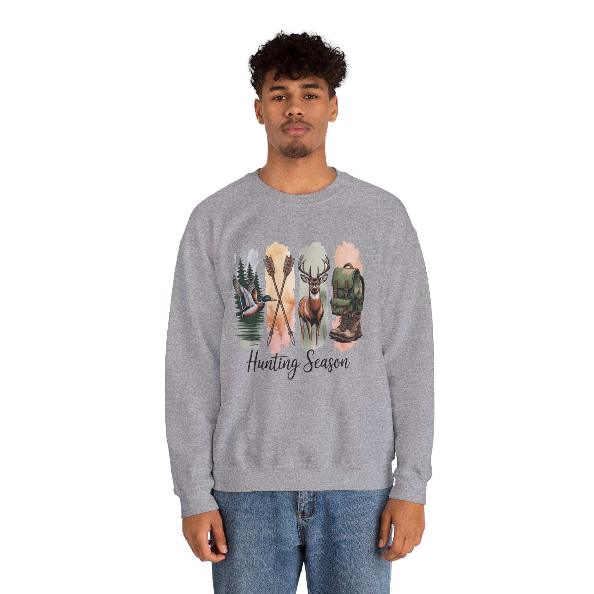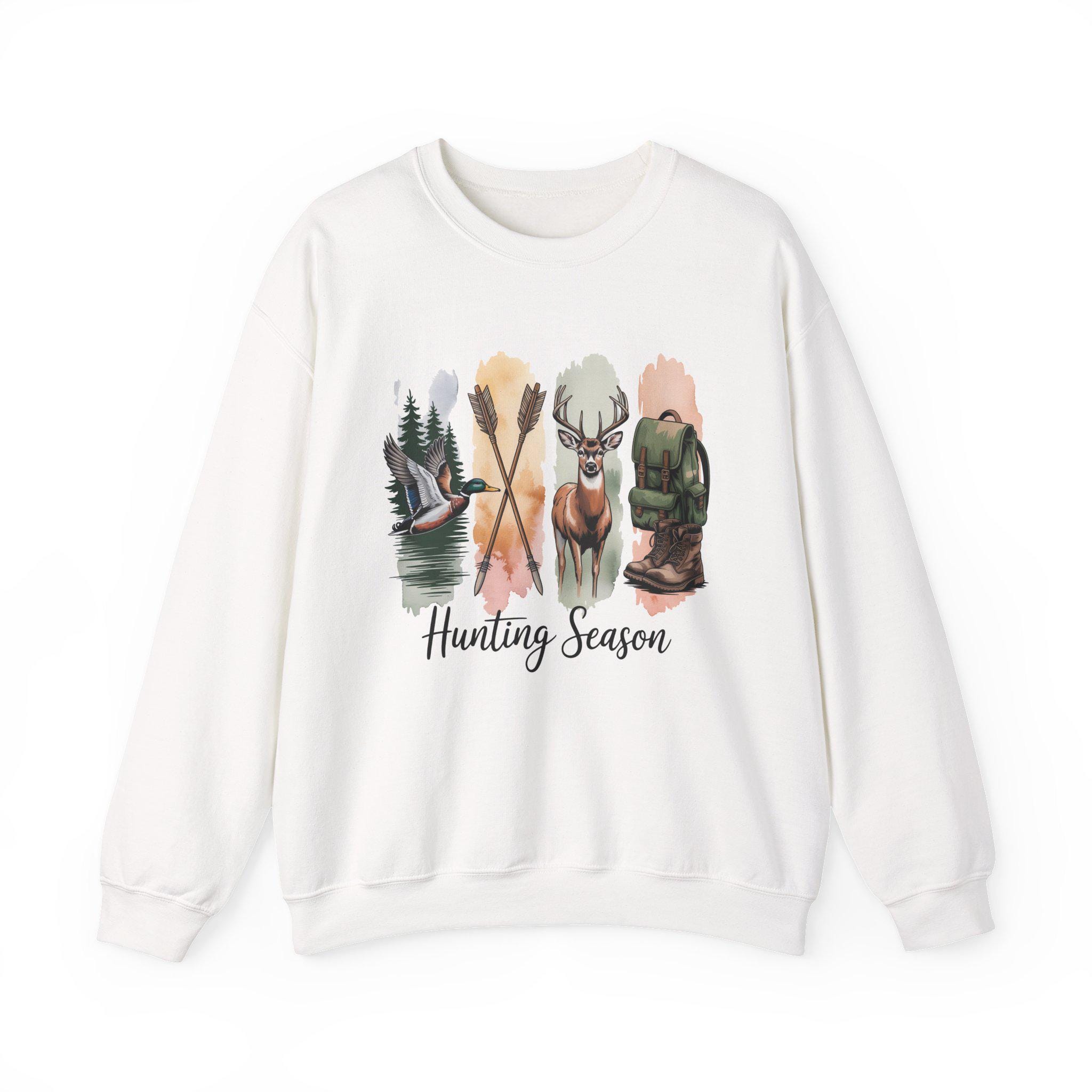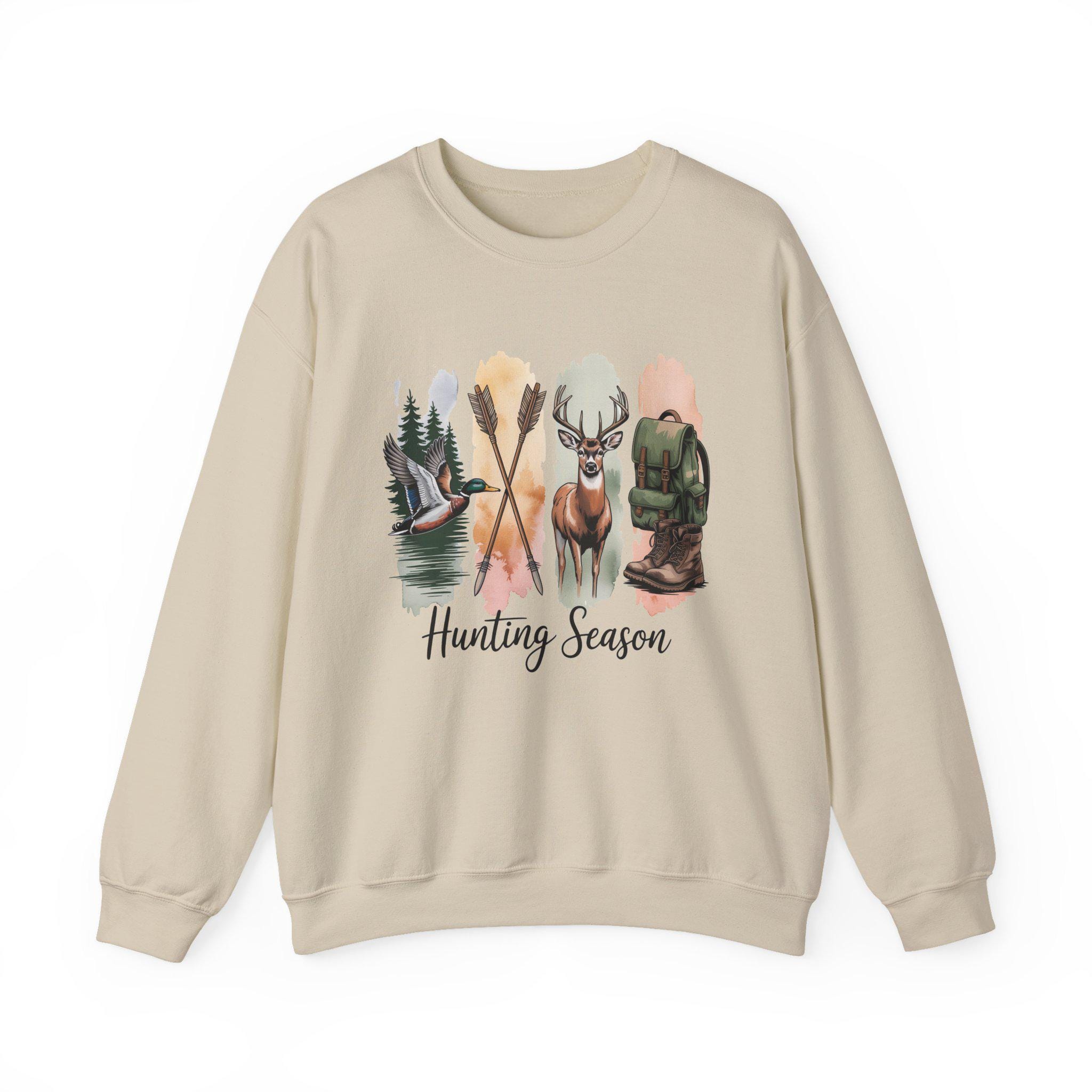 Crisp and comforting, this crewneck brings the quiet rush of a crisp morning in the woods right into your everyday rotation. Soft mid-weight fleece sits against the skin while a watercolor-inspired hunting motif — canoe on a glassy lake, crossed paddles, a buck’s proud silhouette, and a worn pack — unfurls across the chest. It reads like a memory: damp leaves underfoot, mist lifting at sunrise, the slow conversation between you and the landscape. Wear it on the drive to the trailhead, at the cabin after a long day, or layered for town runs when you want to carry that outdoor calm with you.