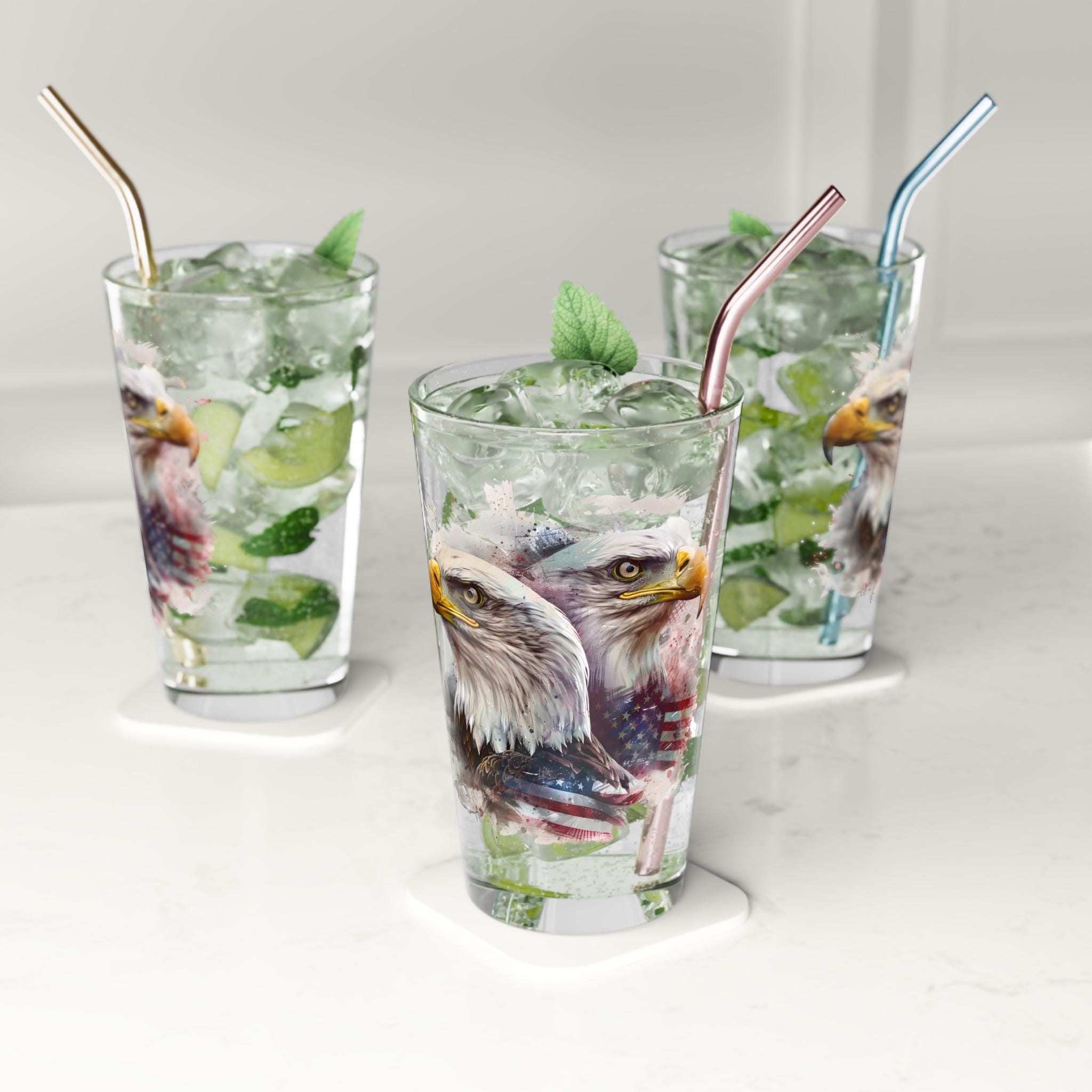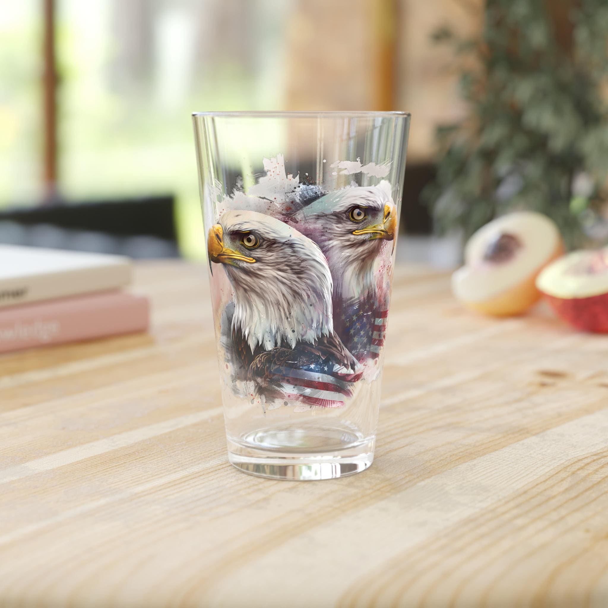 This 16oz pint glass brings quiet strength to your everyday drinks. A watercolor-style bald eagle design—layered with subtle stars and flag tones—wraps the glass with a proud, weathered look. It sits heavy and clear in the hand, great for beer, iced tea, or a fresh morning juice. The tempered glass feels solid yet refined; when you lift it, the eagle’s gaze anchors the moment and adds a touch of rustic Americana to kitchen shelves, backyard evenings, or lakeside gatherings. It pairs naturally with casual weekend cookouts and veteran or patriotic celebrations, and it’s the sort of glass someone reaches for when they want a familiar, grounded vibe.