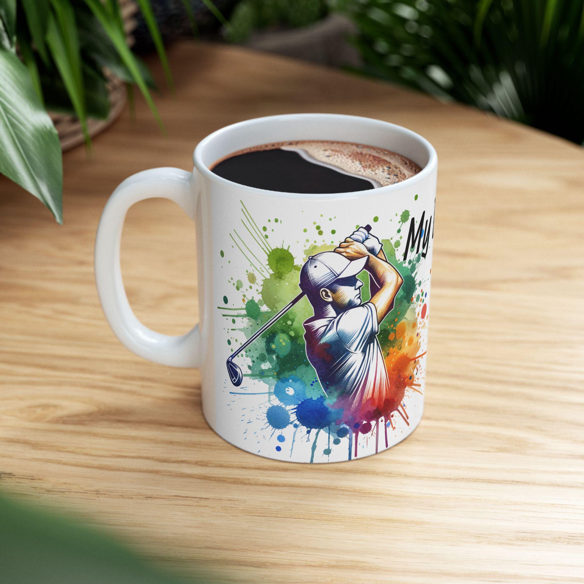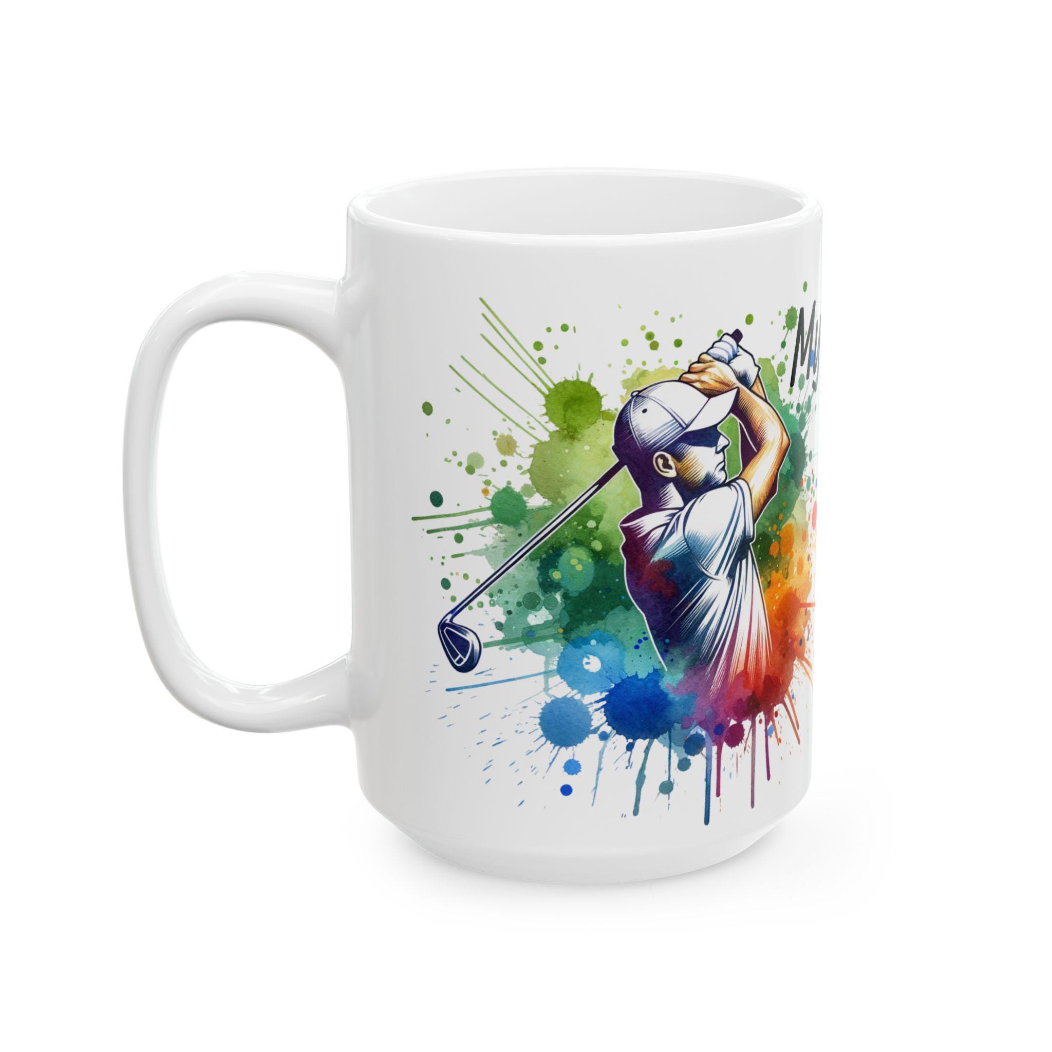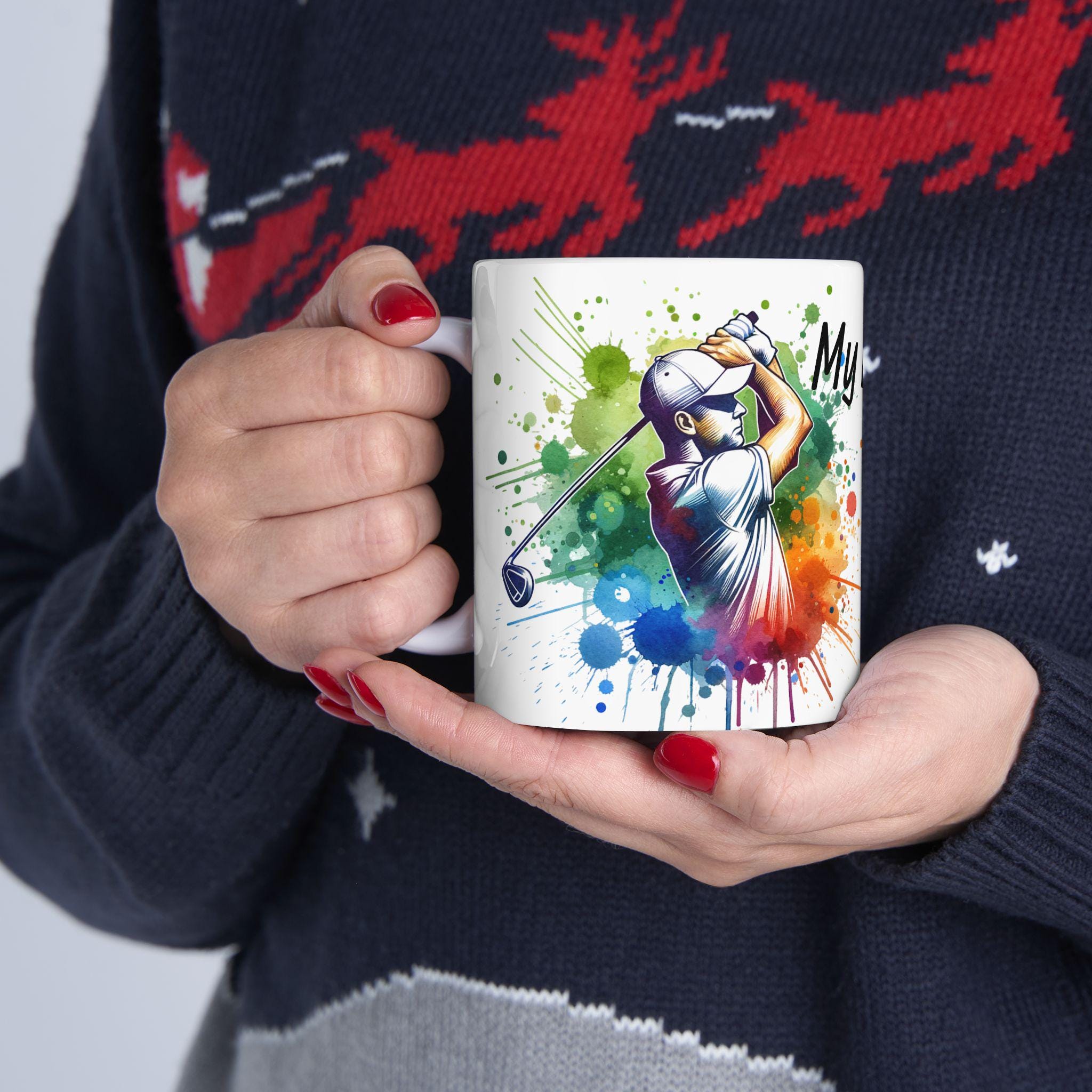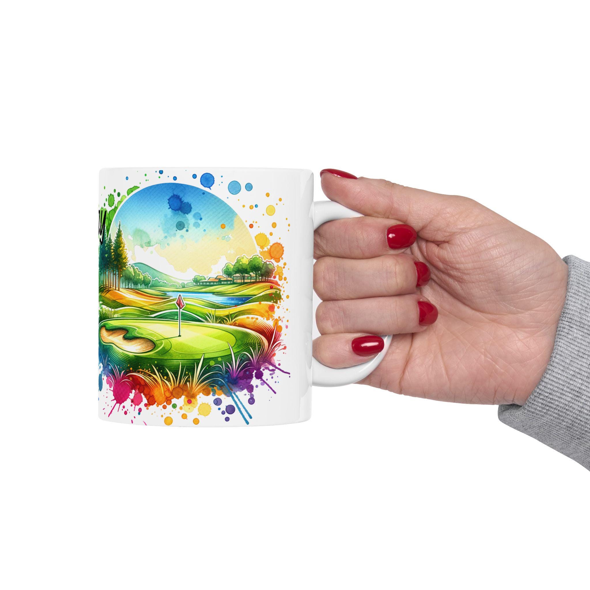 Wake up with a splash of color and a clear invitation to play. This ceramic mug wraps a vibrant golf scene — swinging player, sunlit fairway, and paint-splatter accents — around a clean white canvas. It brings the breezy energy of a morning round into quiet kitchen moments, fueling pre-game rituals or slow weekend coffee breaks. The glossy finish makes the artwork pop, while the comfortable C-handle and two size options adapt to whoever’s holding it: early-bird golfers, weekend warriors, or anyone who lives for that perfect drive down the fairway. Durable, safe, and bright, it’s the kind of everyday piece that sparks a smile and a little nostalgia for green grass and open skies.
