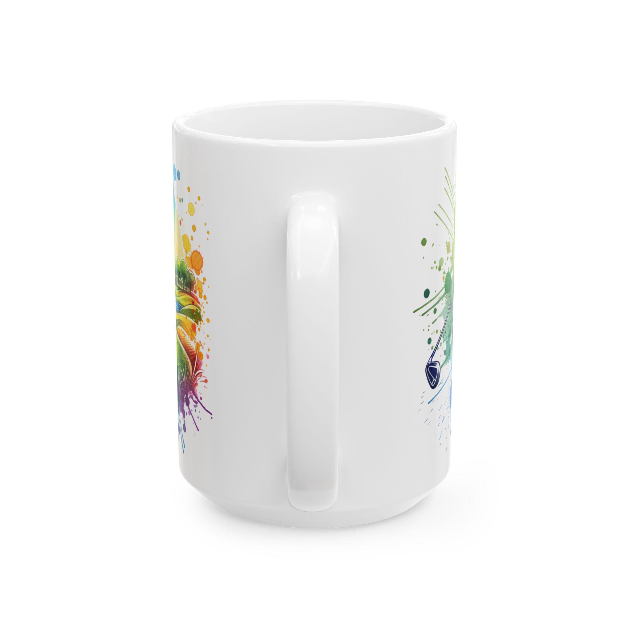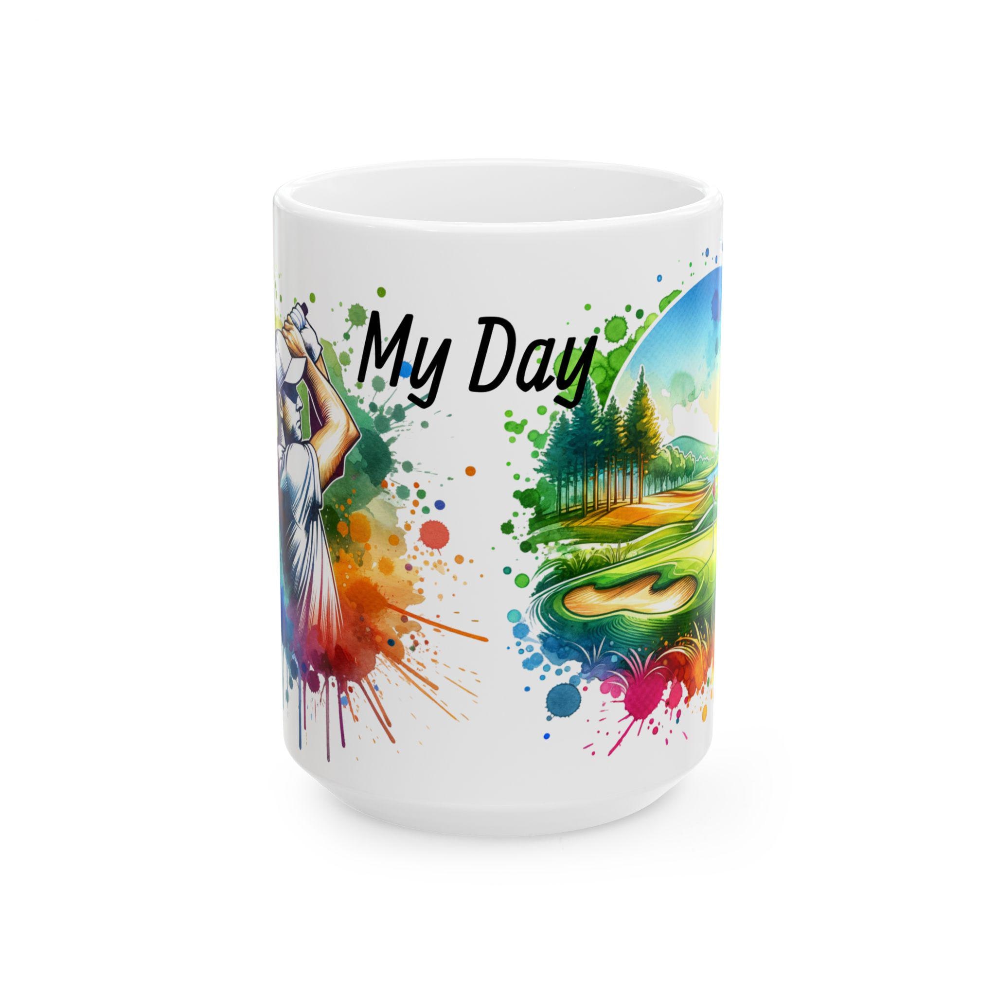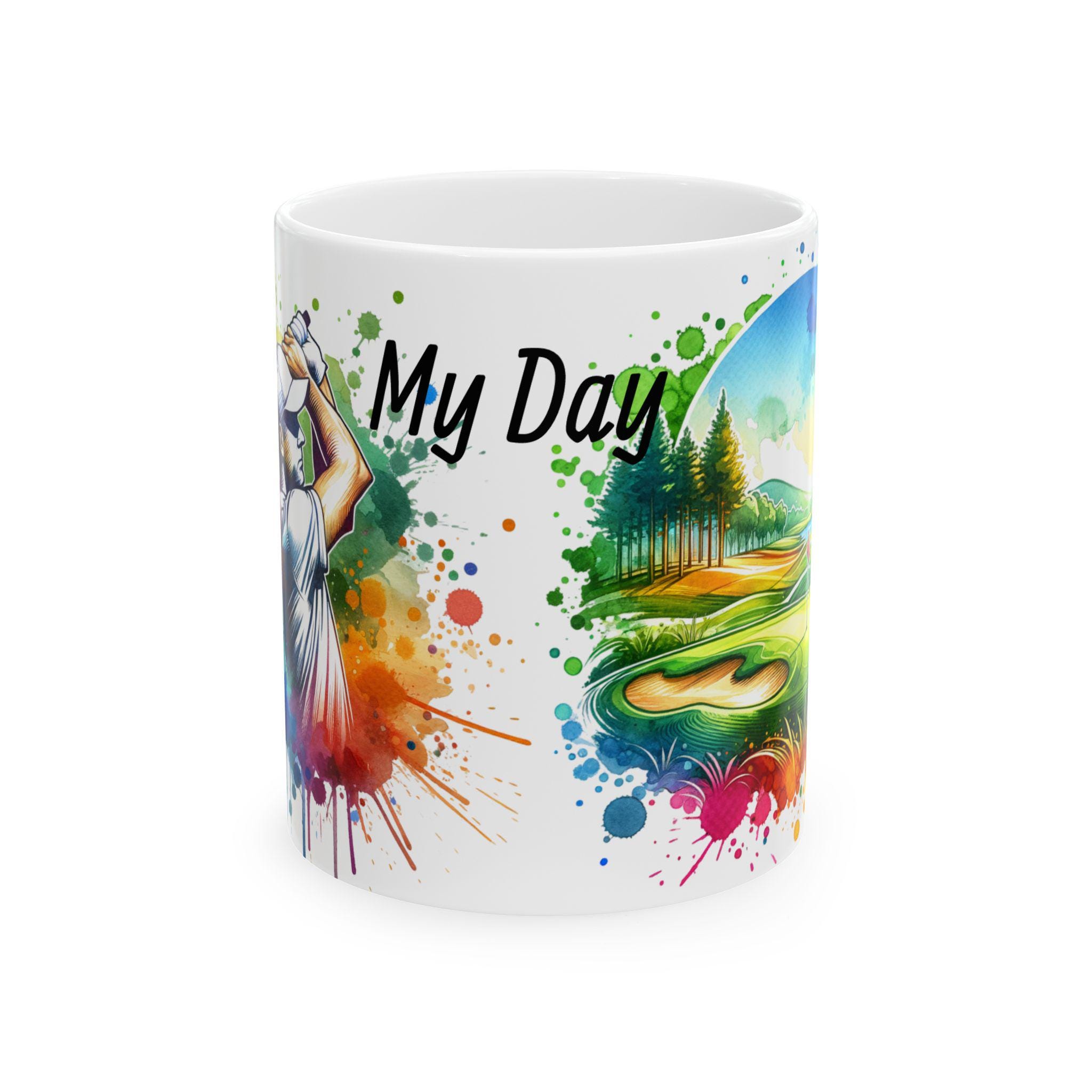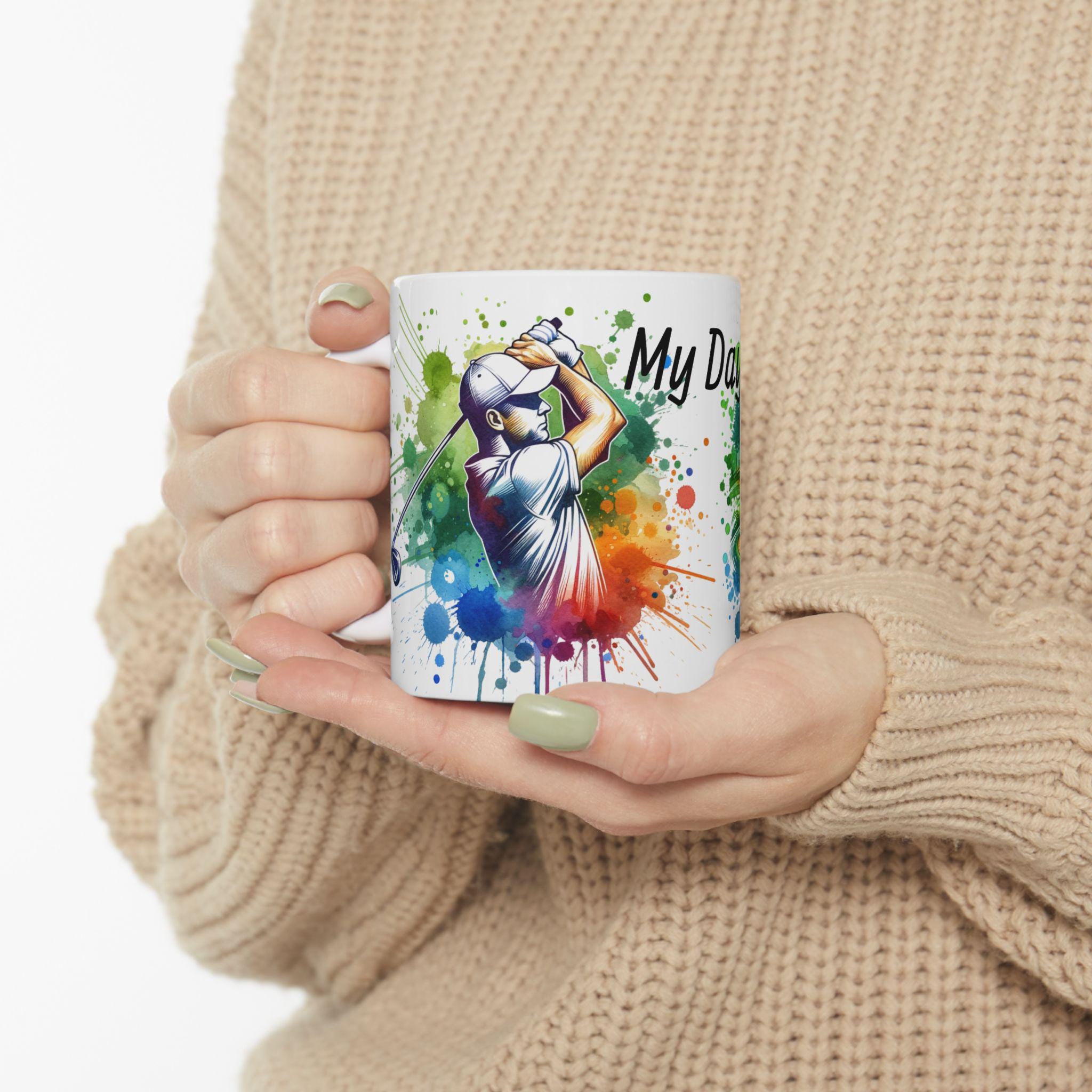 Wake up with a splash of color and a clear invitation to play. This ceramic mug wraps a vibrant golf scene — swinging player, sunlit fairway, and paint-splatter accents — around a clean white canvas. It brings the breezy energy of a morning round into quiet kitchen moments, fueling pre-game rituals or slow weekend coffee breaks. The glossy finish makes the artwork pop, while the comfortable C-handle and two size options adapt to whoever’s holding it: early-bird golfers, weekend warriors, or anyone who lives for that perfect drive down the fairway. Durable, safe, and bright, it’s the kind of everyday piece that sparks a smile and a little nostalgia for green grass and open skies.