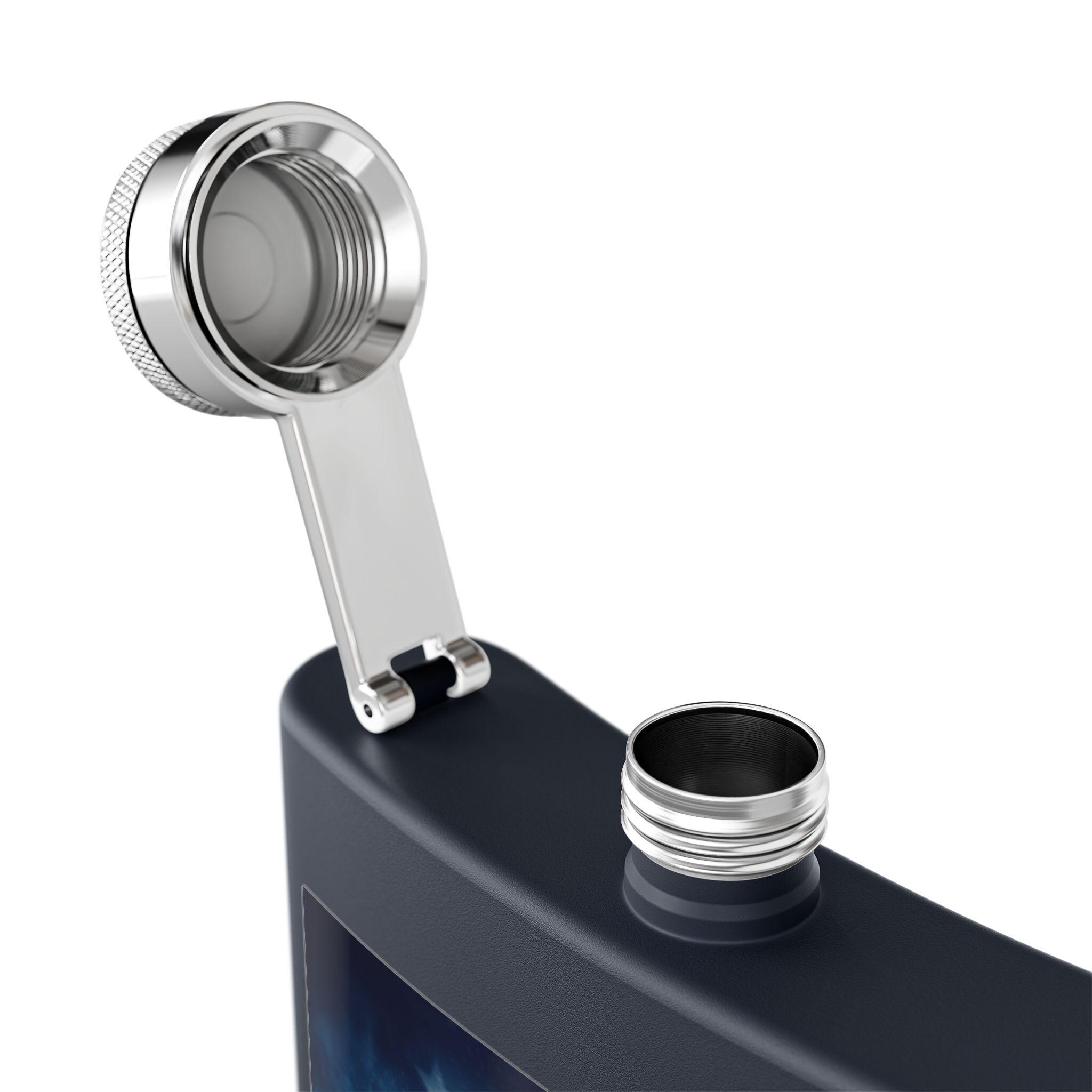 This 6oz stainless steel flask carries a bold athletic spirit — a compact companion for fans who live for game-day energy. The powder-coated exterior holds a vivid UV DTF print that captures a dynamic football image against a faded American-flag backdrop. It feels sturdy in your hand and opens quickly with a leak-resistant threaded lid that stays attached while you pour. Double-wall insulation keeps contents at the right temperature for longer, and the slender 6oz profile slips into a jacket pocket, glove compartment, or gear bag without weighing you down. Hand-wash care keeps the print and finish looking sharp season after season.