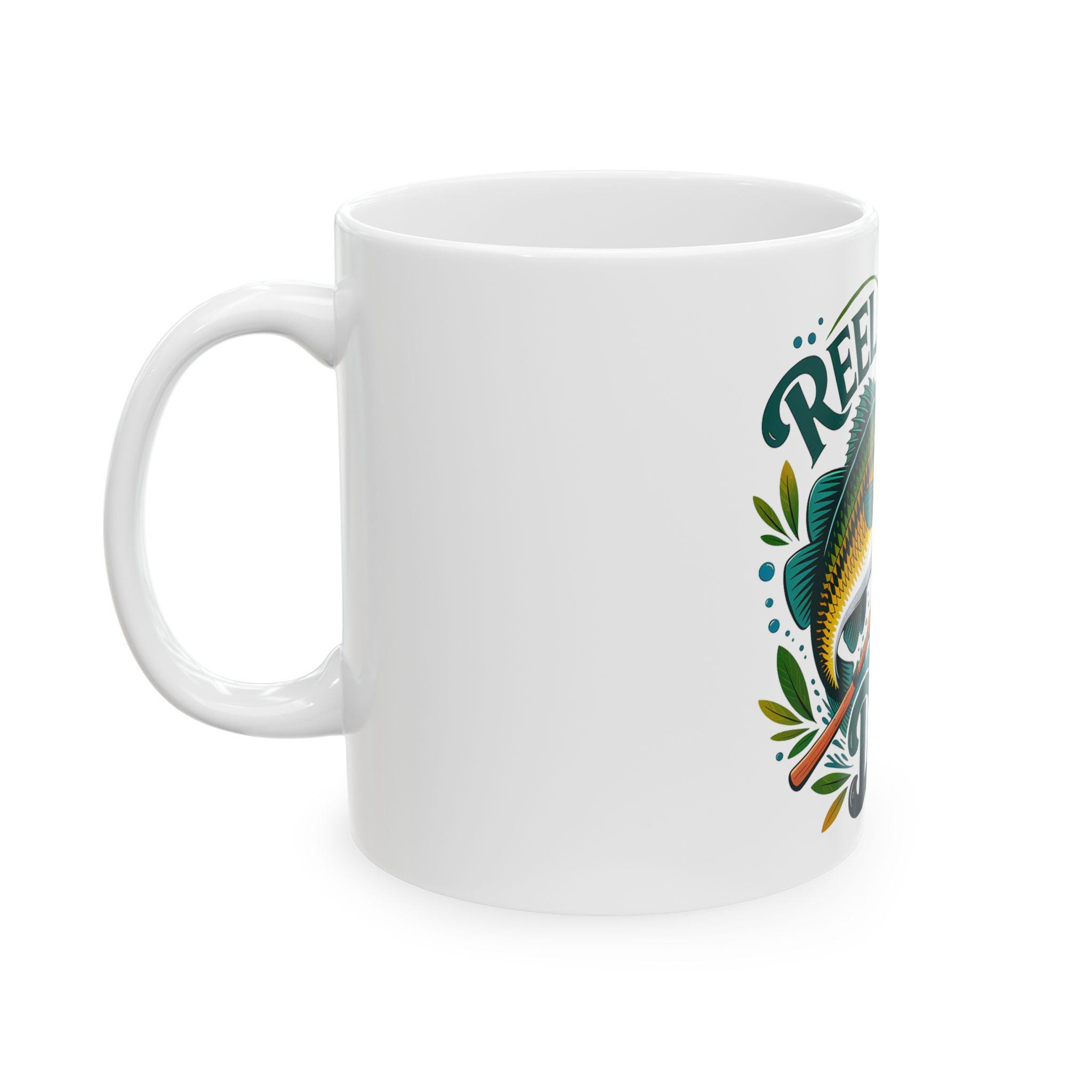 Early morning light, the gentle tug at the end of the line, and the quiet satisfaction of a day spent on the water — this ceramic mug brings that feeling to your countertop. The bright bass illustration wraps around the glossy white surface, catching light between sips of strong coffee or late-afternoon tea. It sits comfortably in a C-handle, ready for the familiar routine: plotting the next trip, swapping stories about the one that got away, or gifting a small reminder of time well spent on the lake. Built to withstand daily use, it’s a practical piece that still feels like part of a weekend ritual. Slip it into the hands of someone who measures memories in casts and quiet mornings — it’s an everyday companion for anglers and outdoor lovers who like their gear to look as good as it performs.