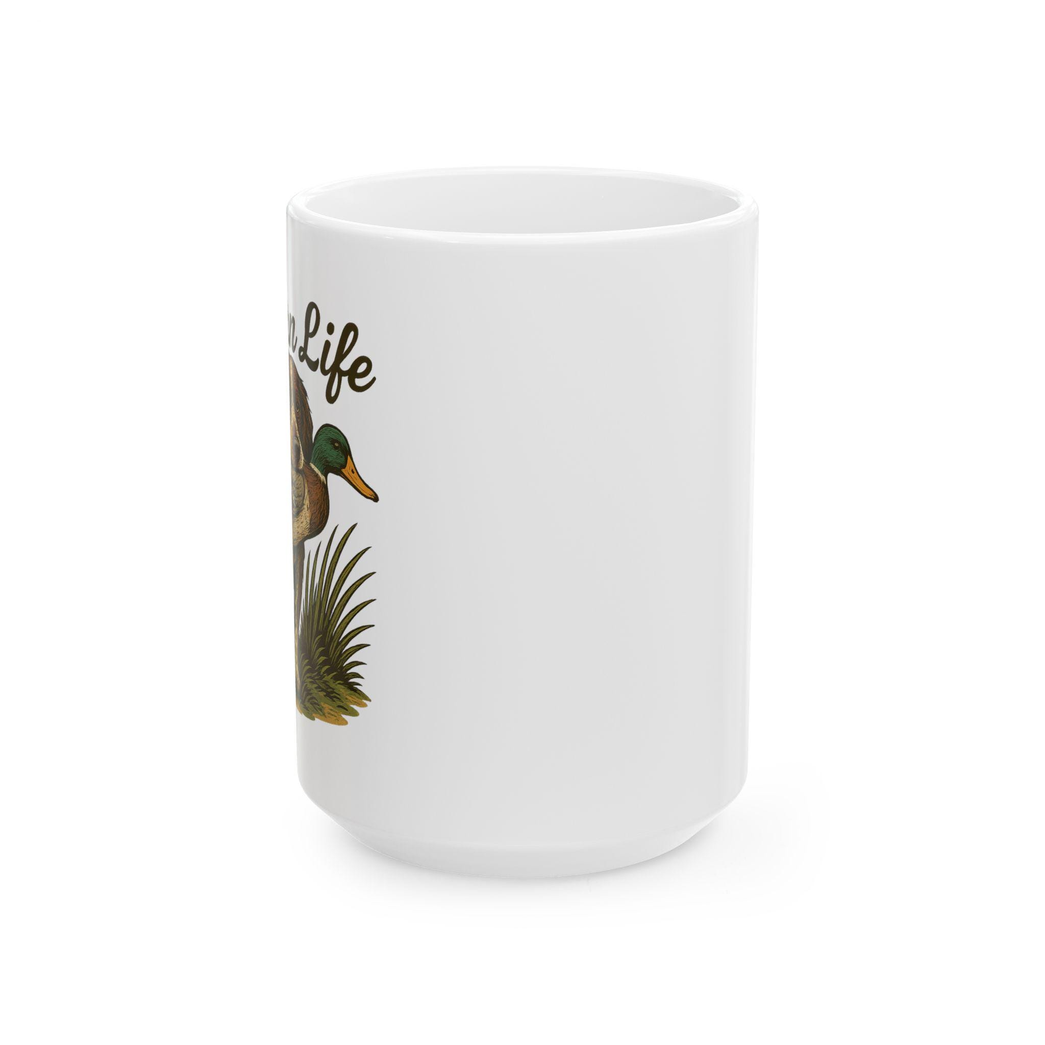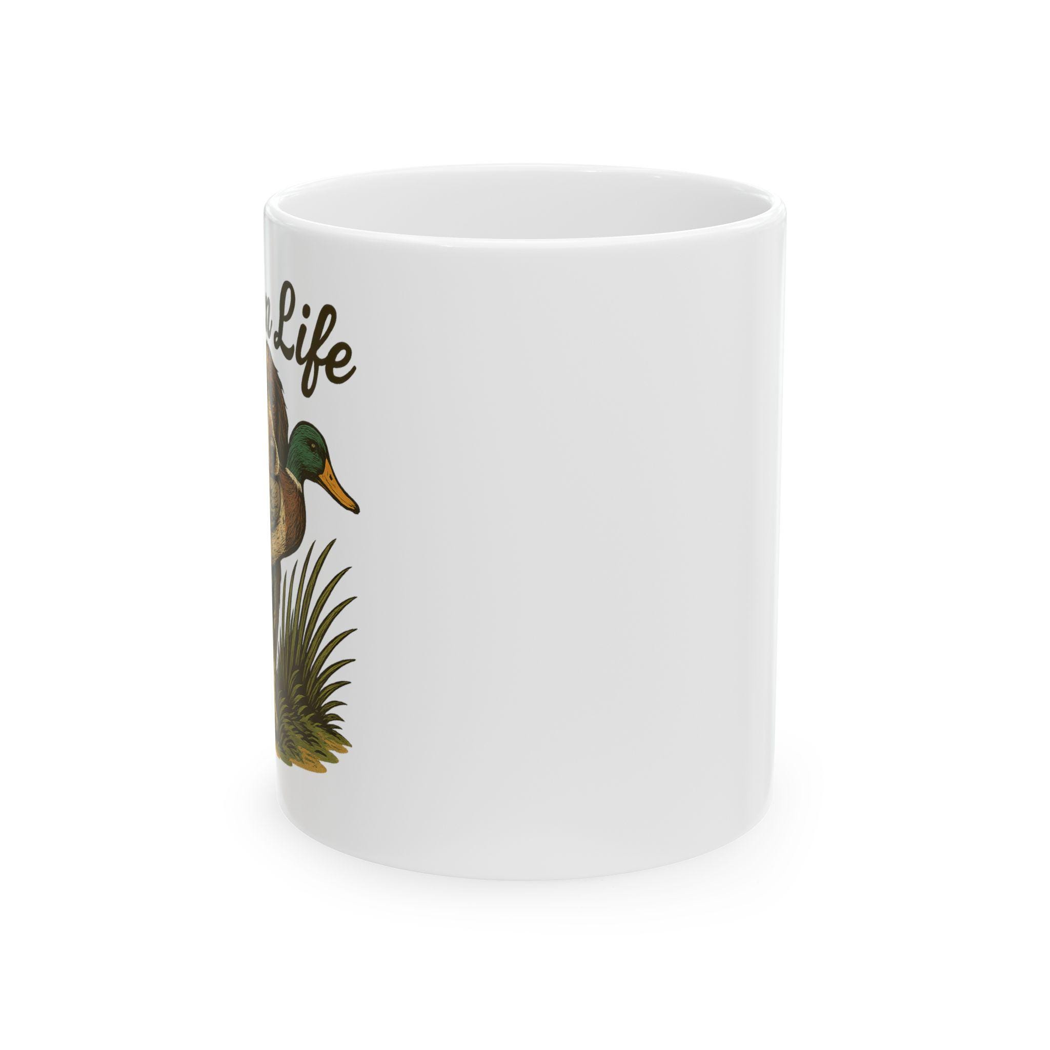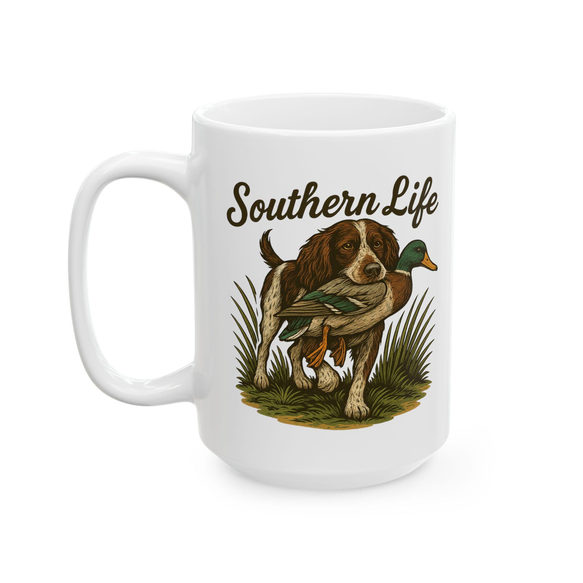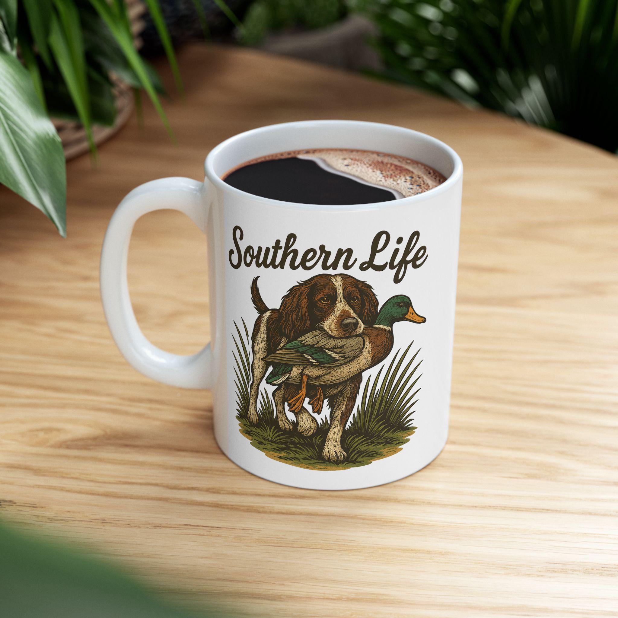 Sunrise on the duck marsh, the retriever at your feet, and a hot cup steaming in your hands. This ceramic mug brings that scene to your morning routine — rustic, honest, and a little bit wild. The artwork captures a hunting retriever and a mallard in crisp, vibrant color, so every sip feels like a quiet moment before the hunt or a warm conversation at the cabin. Comfortable to hold and easy to care for, it slips seamlessly into early mornings, weekend coffee runs to the blind, or slow afternoons swapping stories with other hunters. It speaks to people who know the rhythm of the land and appreciate objects that wear well with use.
