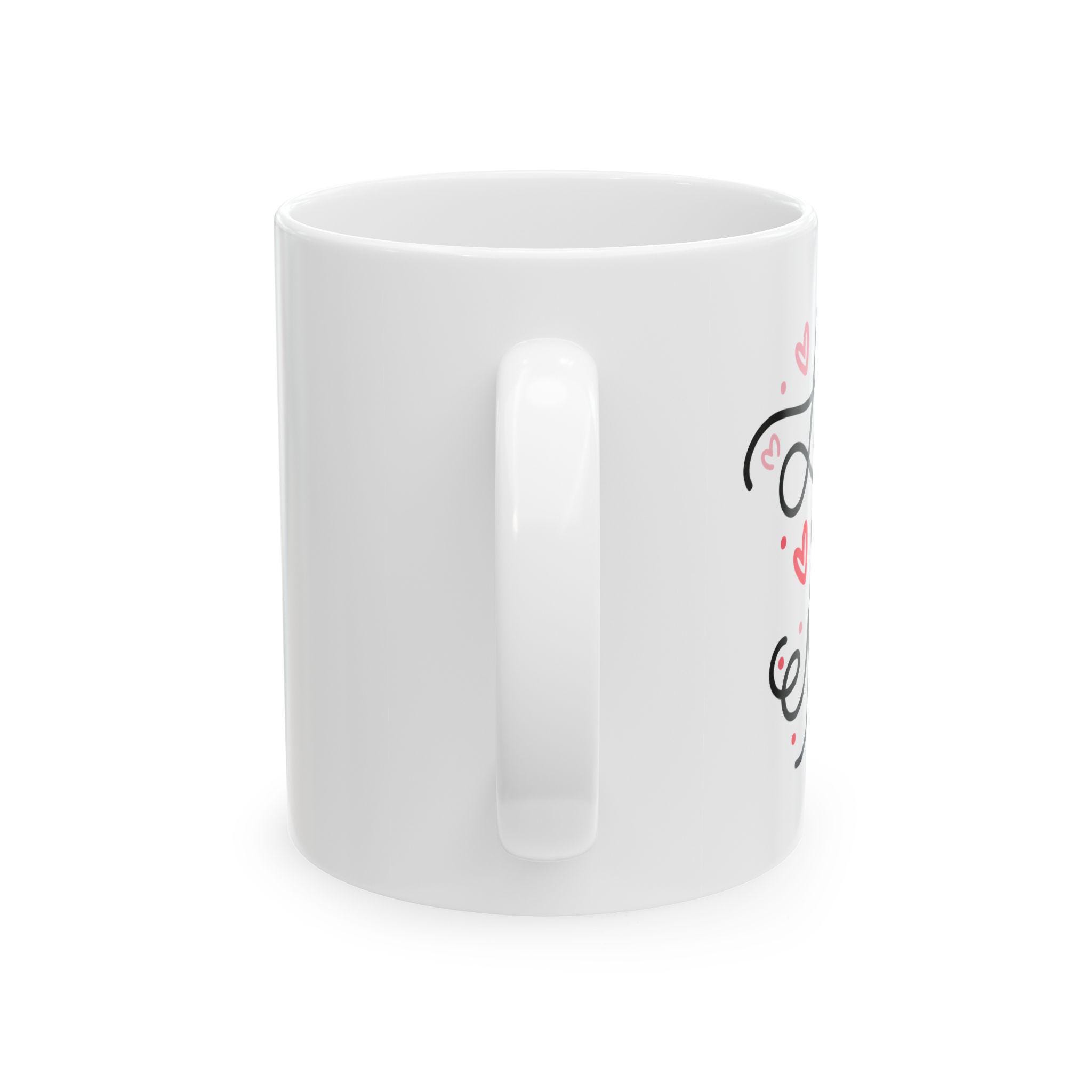 Warm mornings and quiet evenings get a gentle nudge with this hand-lettered Valentine mug. Soft, looping script and tiny hearts feel like a whispered note from someone who knows you well. It’s the kind of mug that turns a slow coffee ritual into a small ceremony—steam rising, the glossy surface catching the light, and the message settling in with each sip. Keep it on your nightstand for bedtime tea, bring it to a shared breakfast, or set it by the sink where you’ll see it between tasks. It speaks the simple language of affection without fanfare and fits naturally into days made of ordinary, meaningful moments.