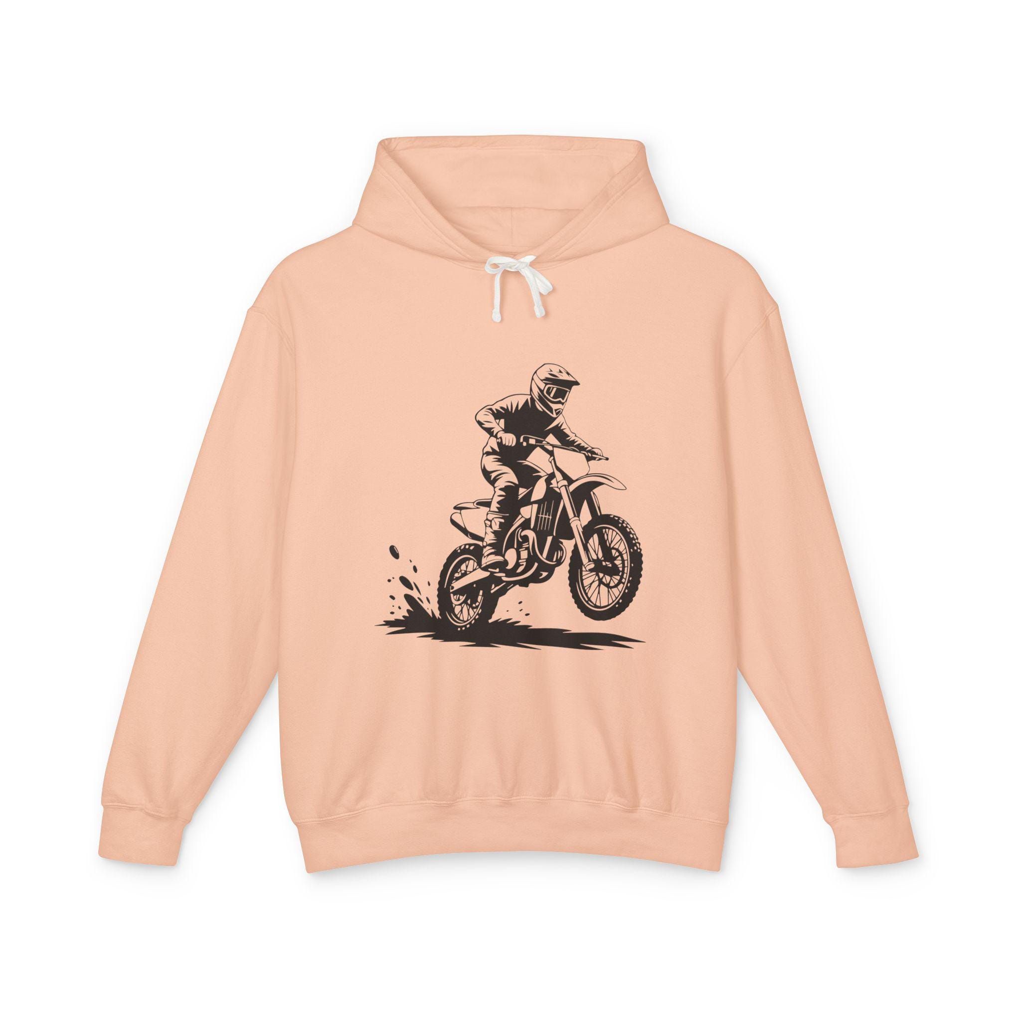 This lightweight hooded sweatshirt feels like an easy Sunday ride. The front shows a gritty dirt-bike sketch mid-splash, and the back wears a bold helmet emblem with the phrase “TWIST THE THROTTLE” — a nod to the rush of open trails and long afternoons chasing lines. The soft, breathable cotton keeps things light when the sun sinks and the temperature drops, while the relaxed cut lets you layer a tee or flannel beneath. Wear it after a ride, around the shop, or on a coffee run — it blends rugged moto attitude with everyday comfort.
