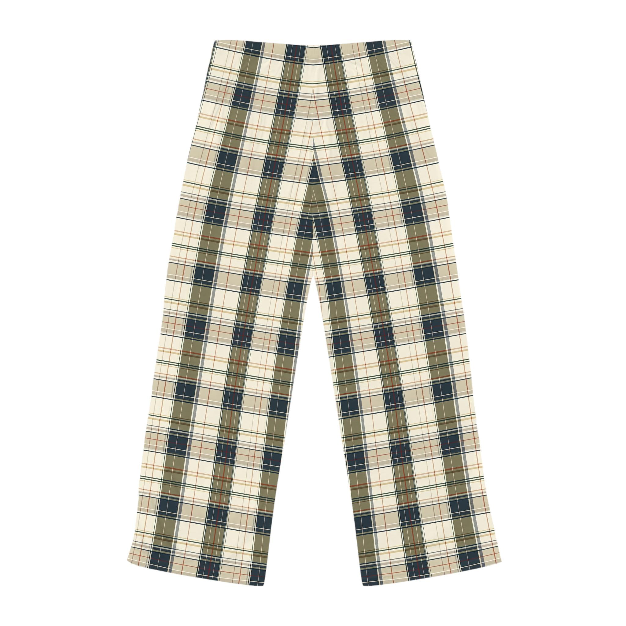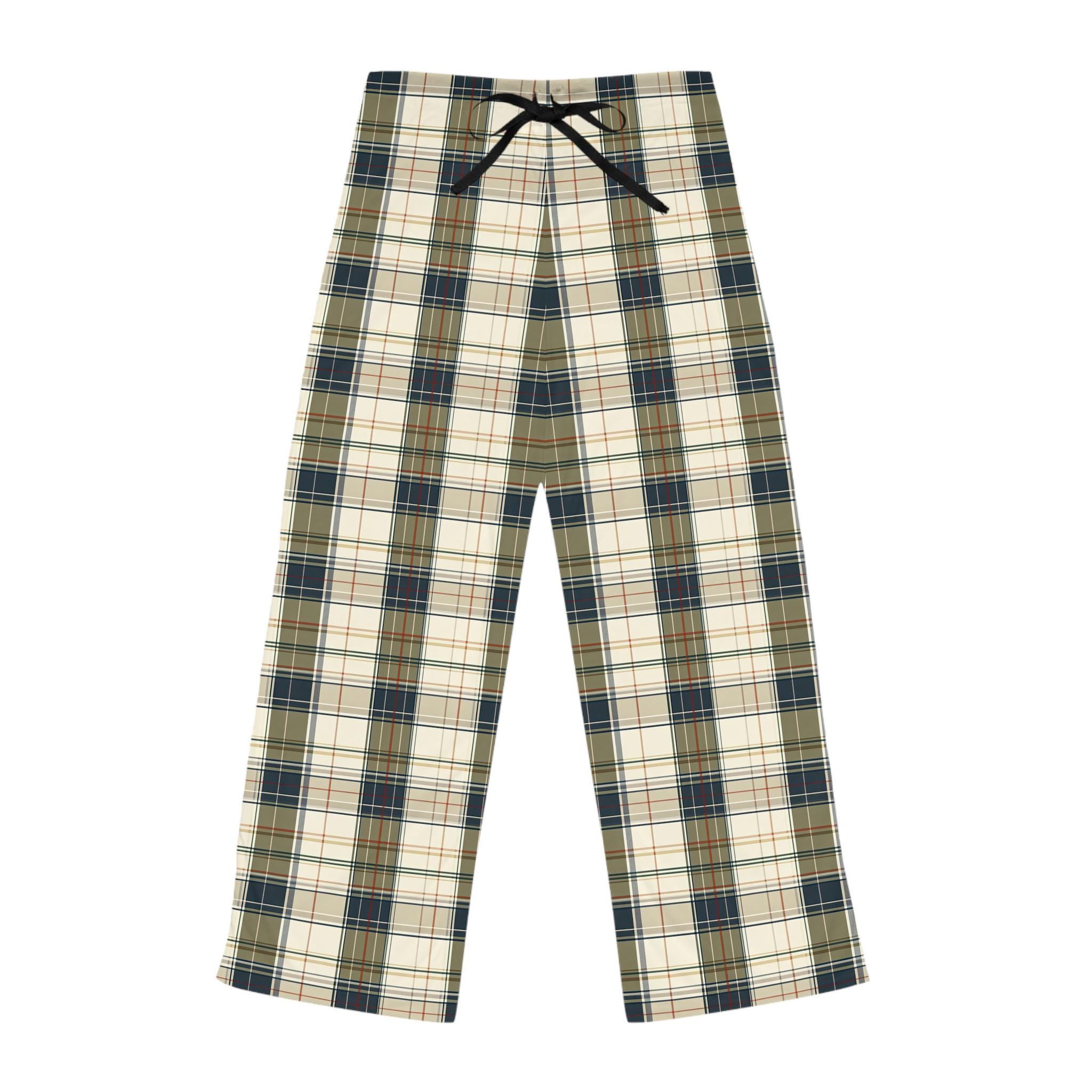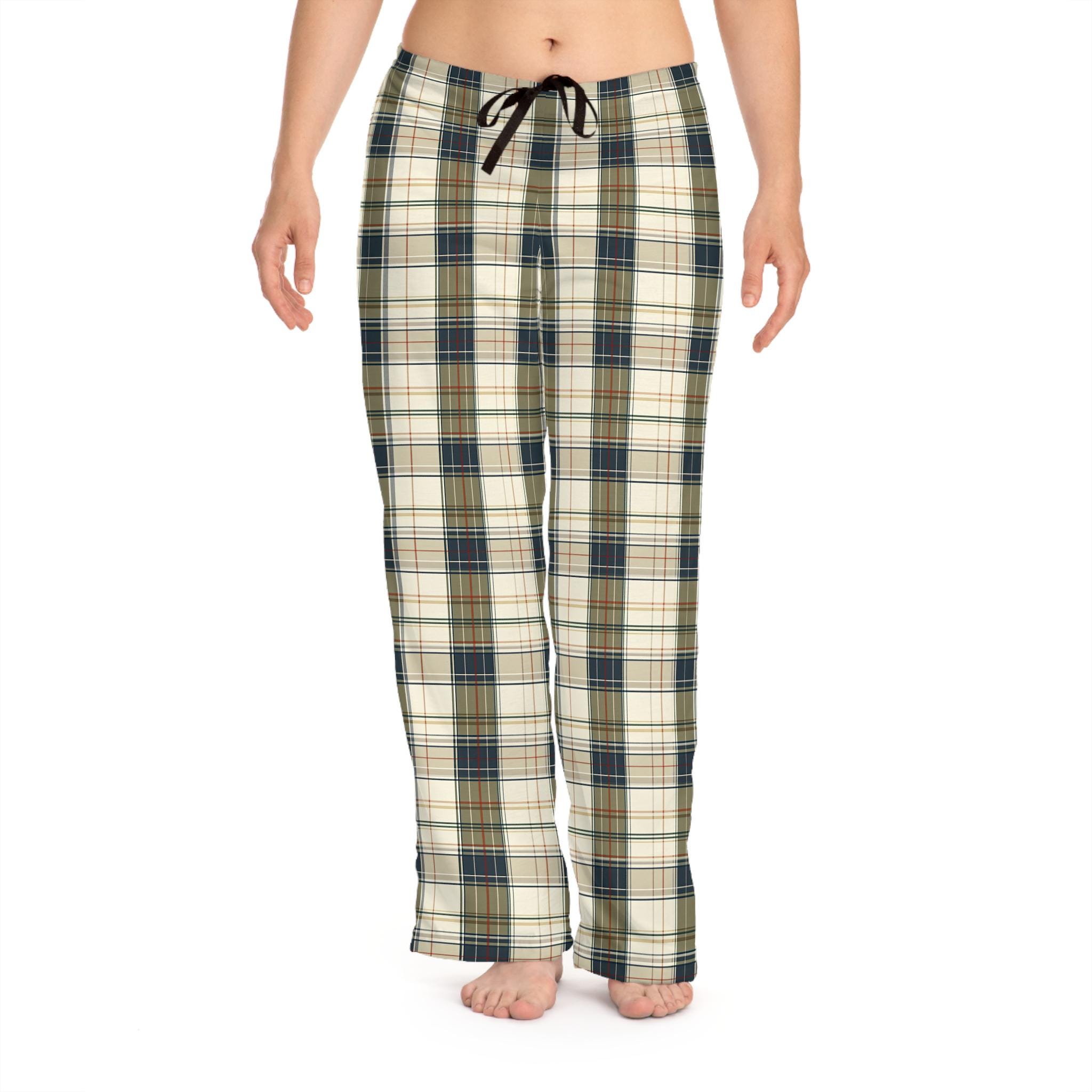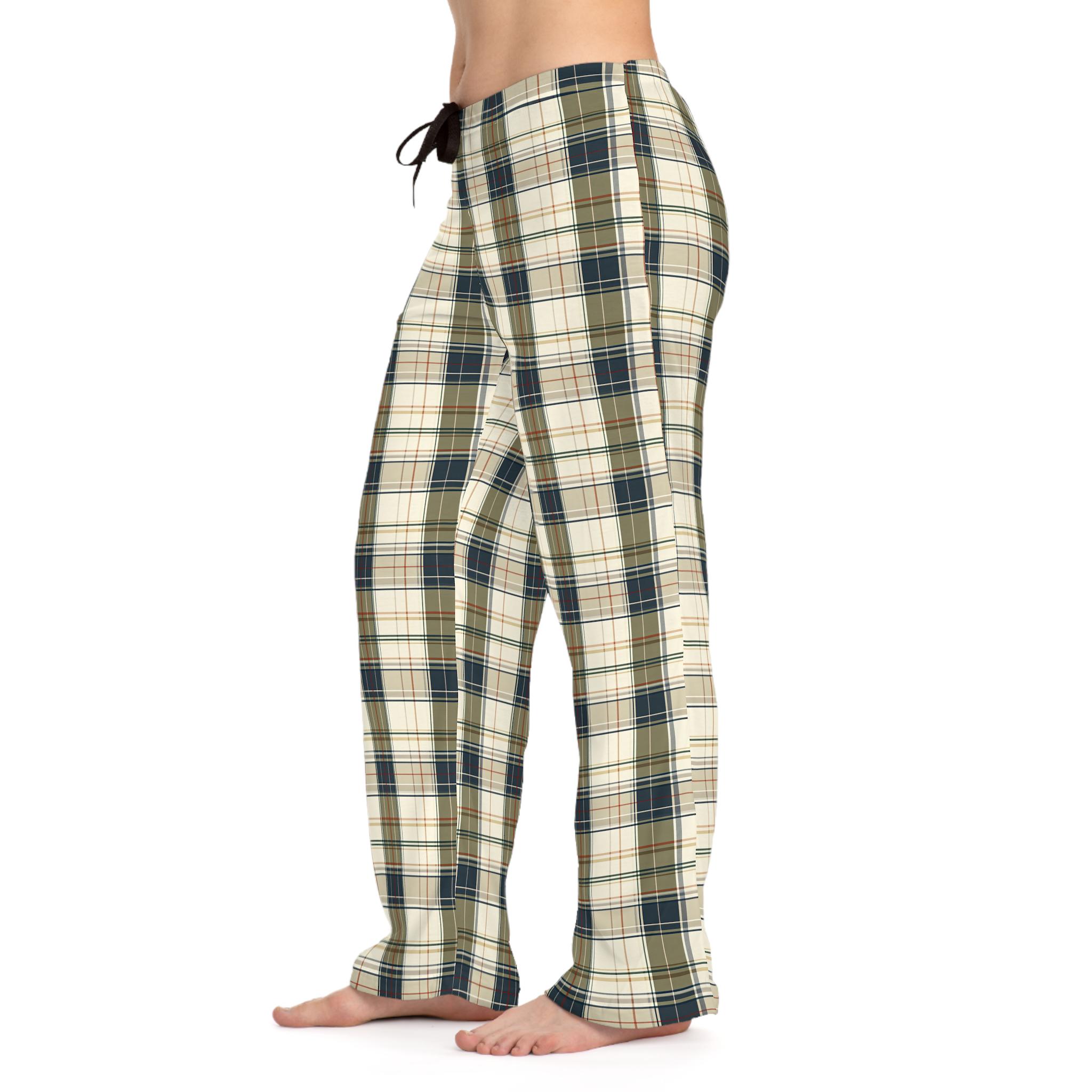 Slide into slow mornings and cozy evenings with these plaid pajama pants made to feel like a warm, familiar embrace. The soft, lightweight polyester drapes easily and moves with you — whether you’re pouring coffee at the kitchen counter, curled up with a book, or padding across hardwood floors on a rainy day. The muted cream, olive, and tan checks read timeless and homey, adding a quietly styled touch to your loungewear rotation. A back elastic and flat black drawstring let you tune the fit without fuss, while durable double-needle stitching keeps them feeling lived-in and reliable wash after wash. These pants celebrate gentle comfort and everyday ease for people who love slow rituals and quietly curated mornings.